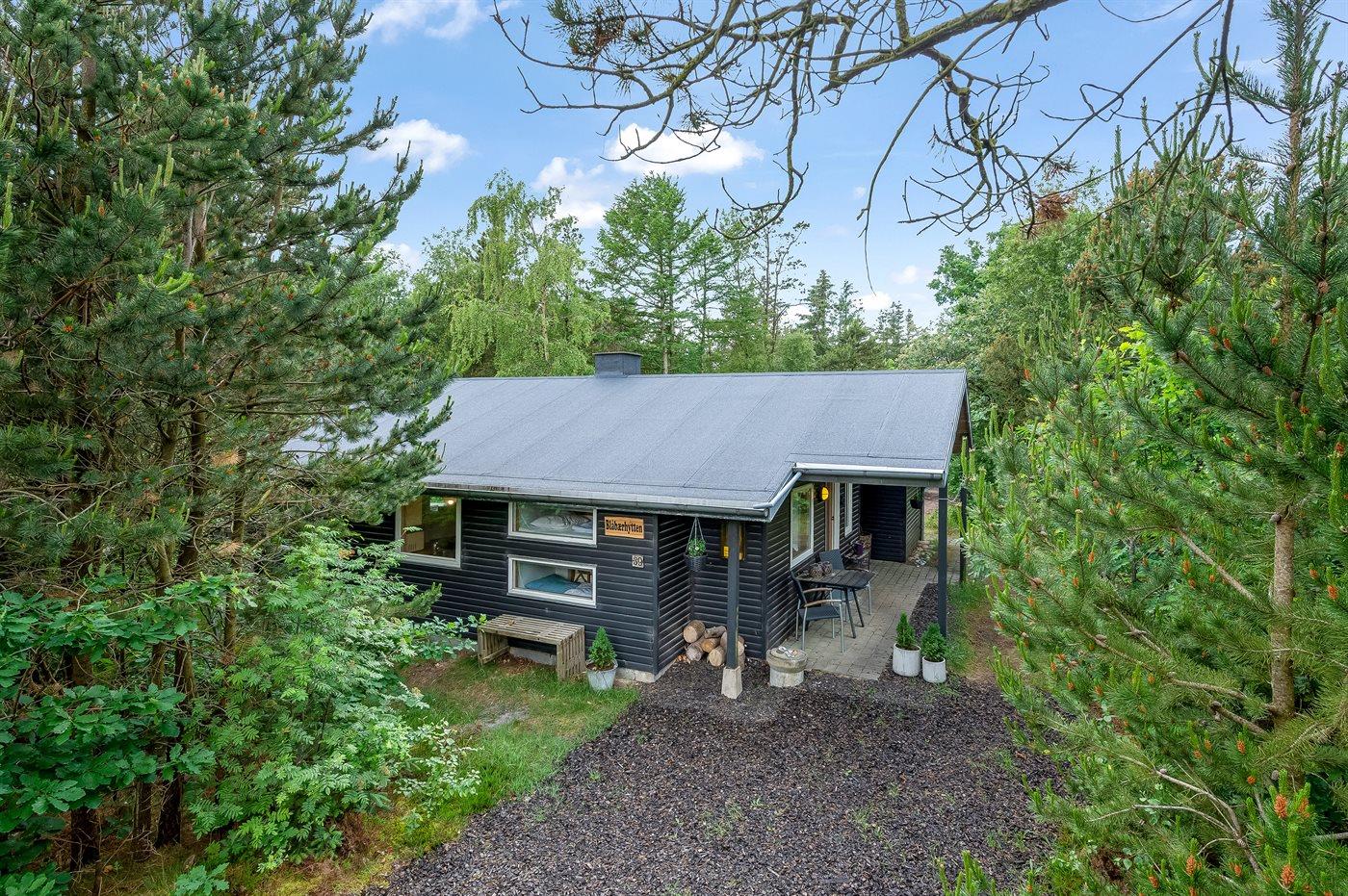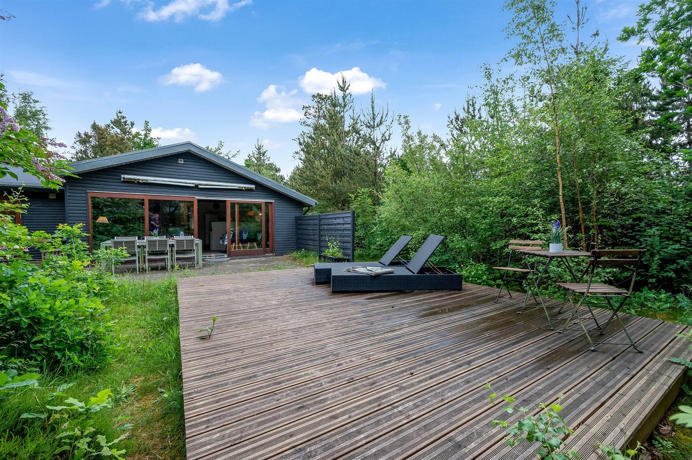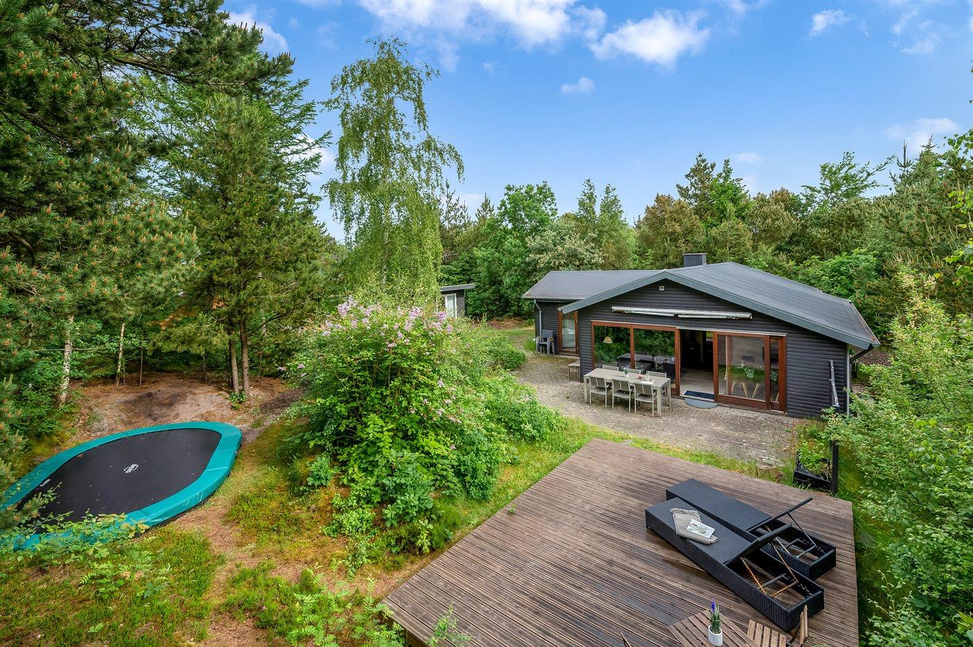 På en pragtfuld, let-kuperet ”skovgrund” kun 300 meter fra Hemmet Strand og Ringkøbing Fjord ligger dette smagfuldt og hyggeligt indrettede sommerhus.
