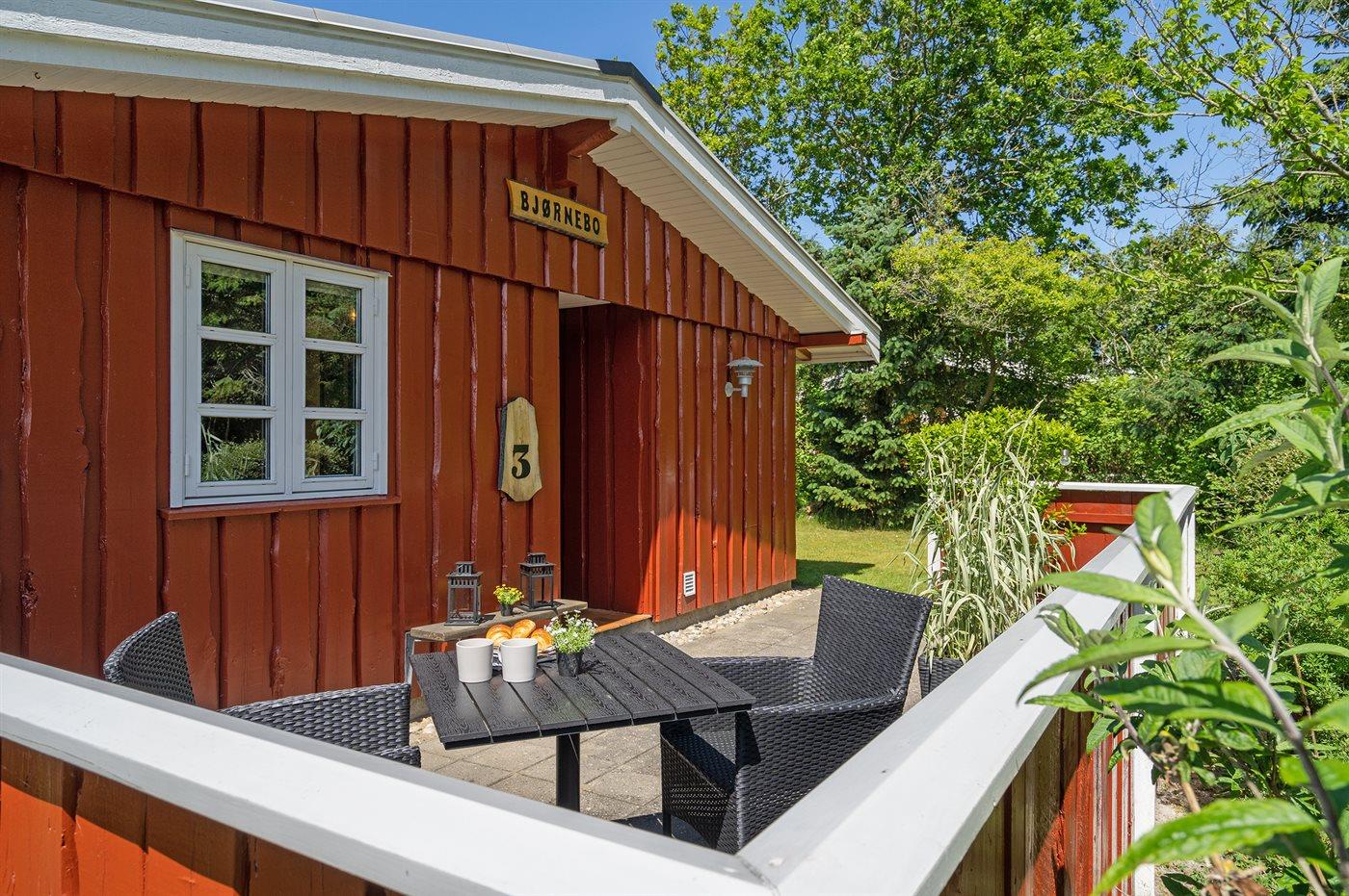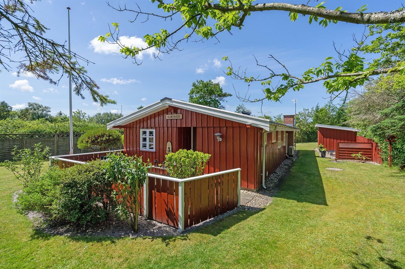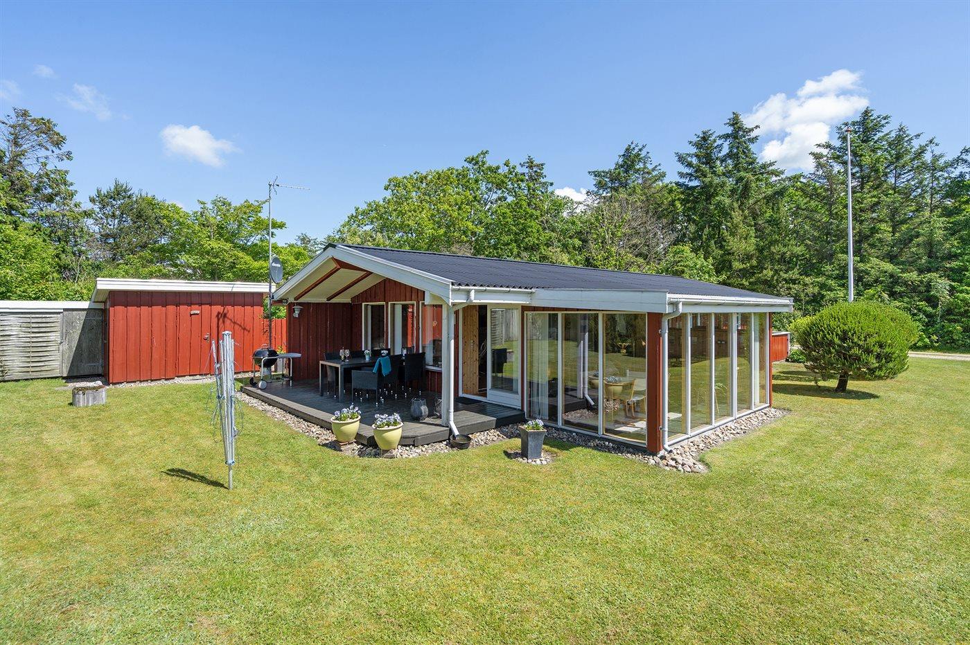 Ferieboligen er beliggende på en 951 m² stor naturgrund. Der er 22000 m til havet. Der er 400 m til fjorden. Nærmeste forretning er beliggende i en afstand af 4500 m. Til ferieboligen hører 32 m² terrasseareal. Desuden er der 12 m² overdækket terrasse. Heraf i alt 19 m² lukket terrasse. Ligeledes er der adgang til udestue. Der ligger en legeplads i en afstand af 200 m. Parkering ved ferieboligen.
