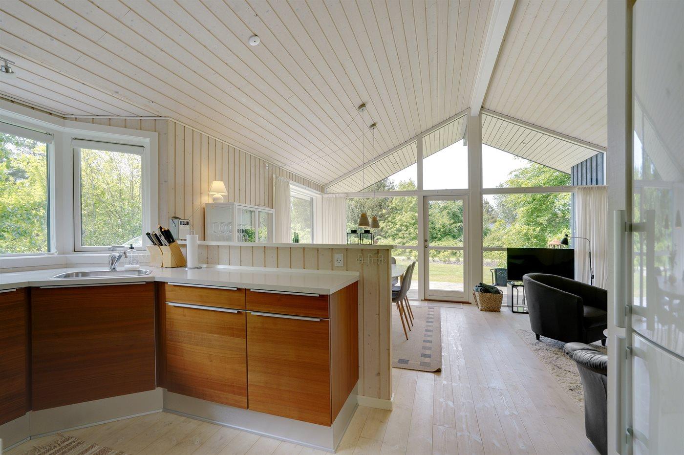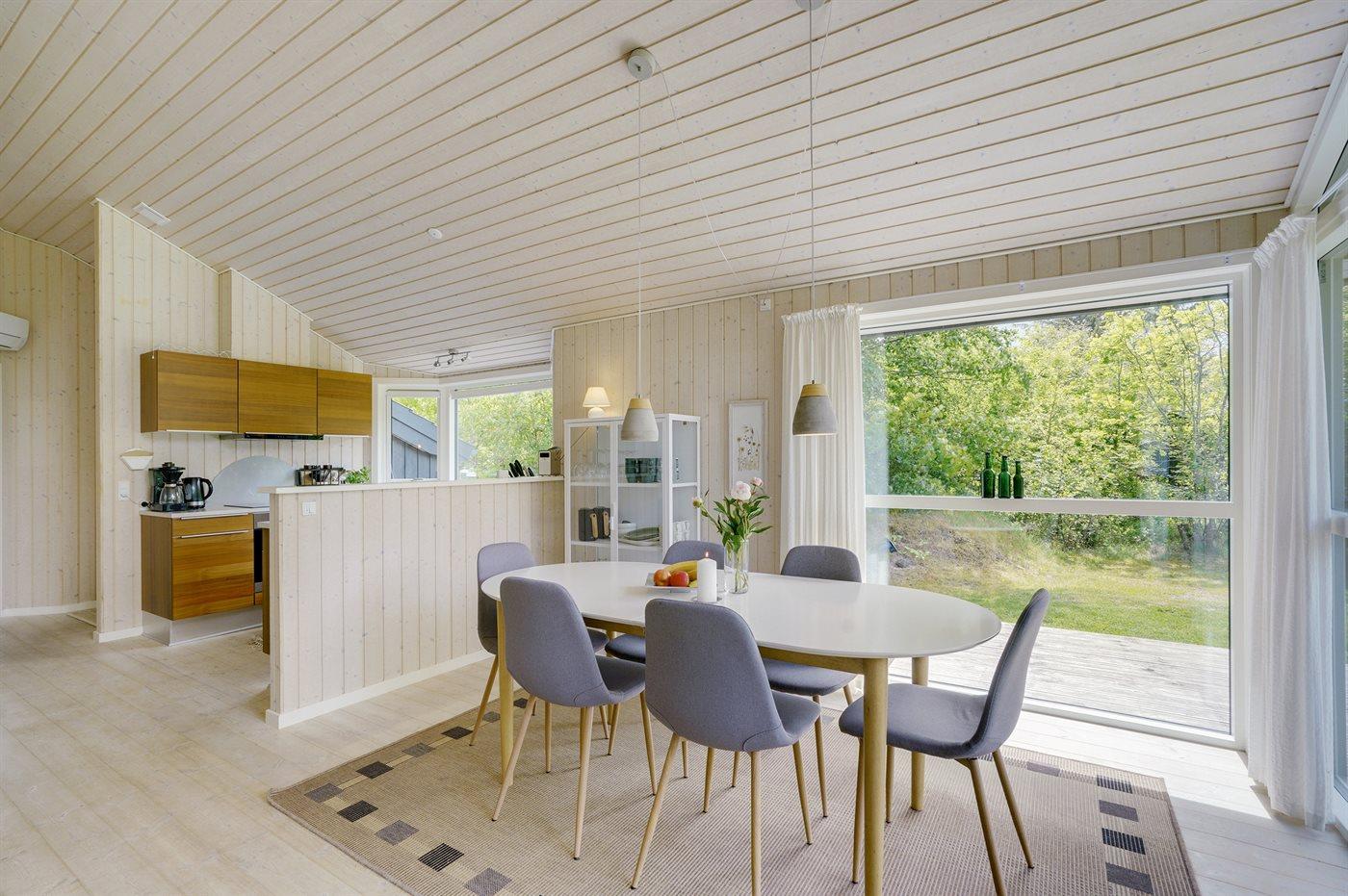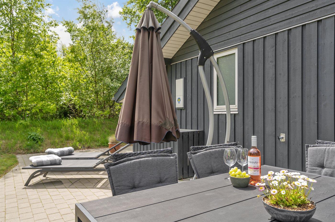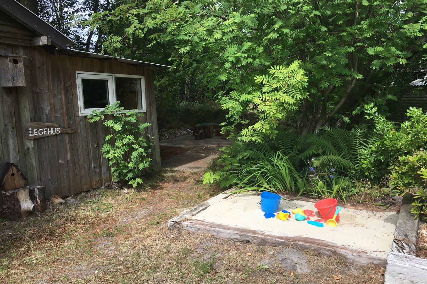 Ferieboligen er beliggende på en 1900 m² stor naturgrund. Der er 22000 m til havet. Der er 300 m til fjorden. Nærmeste forretning er beliggende i en afstand af 2000 m. Til ferieboligen hører 40 m² terrasseareal. Desuden er der 10 m² overdækket terrasse. Sandkasse. Legehus. Grill til rådighed. Der er installeret stik til opladning af elbil. Type 2 stik. Med 11 kW ladeeffekt. Parkering ved ferieboligen.