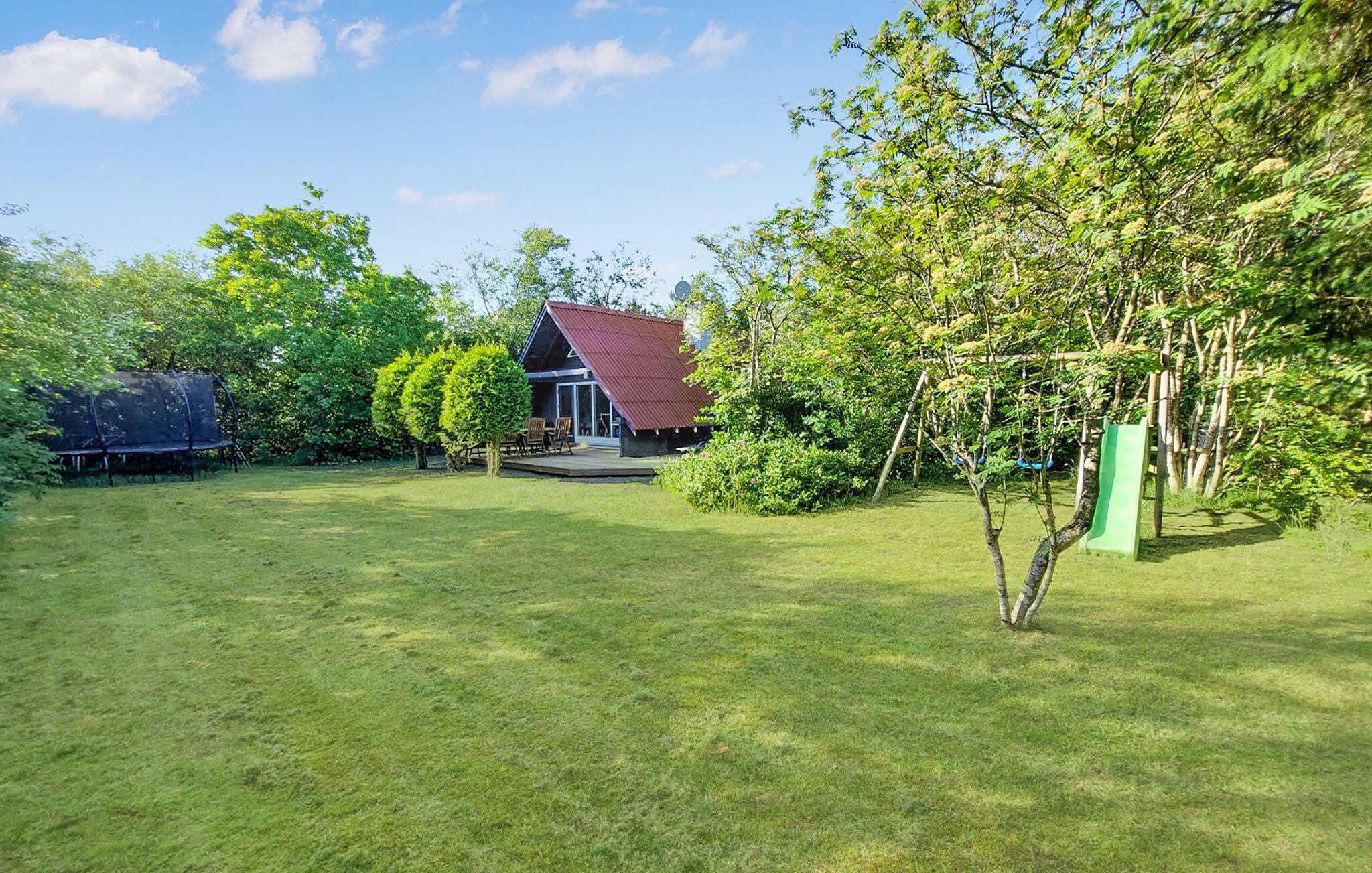 I haven er der gode rammer til at løbe og lege, og en lille sti fører fra grunden og hen til en legeplads. Sæt jer til rette med en god bog i solen på terrassen. Hvis vejret holder hele dagen, kan I fyre op i grillen og gøre klar til en skøn aftenmiddag i solen.