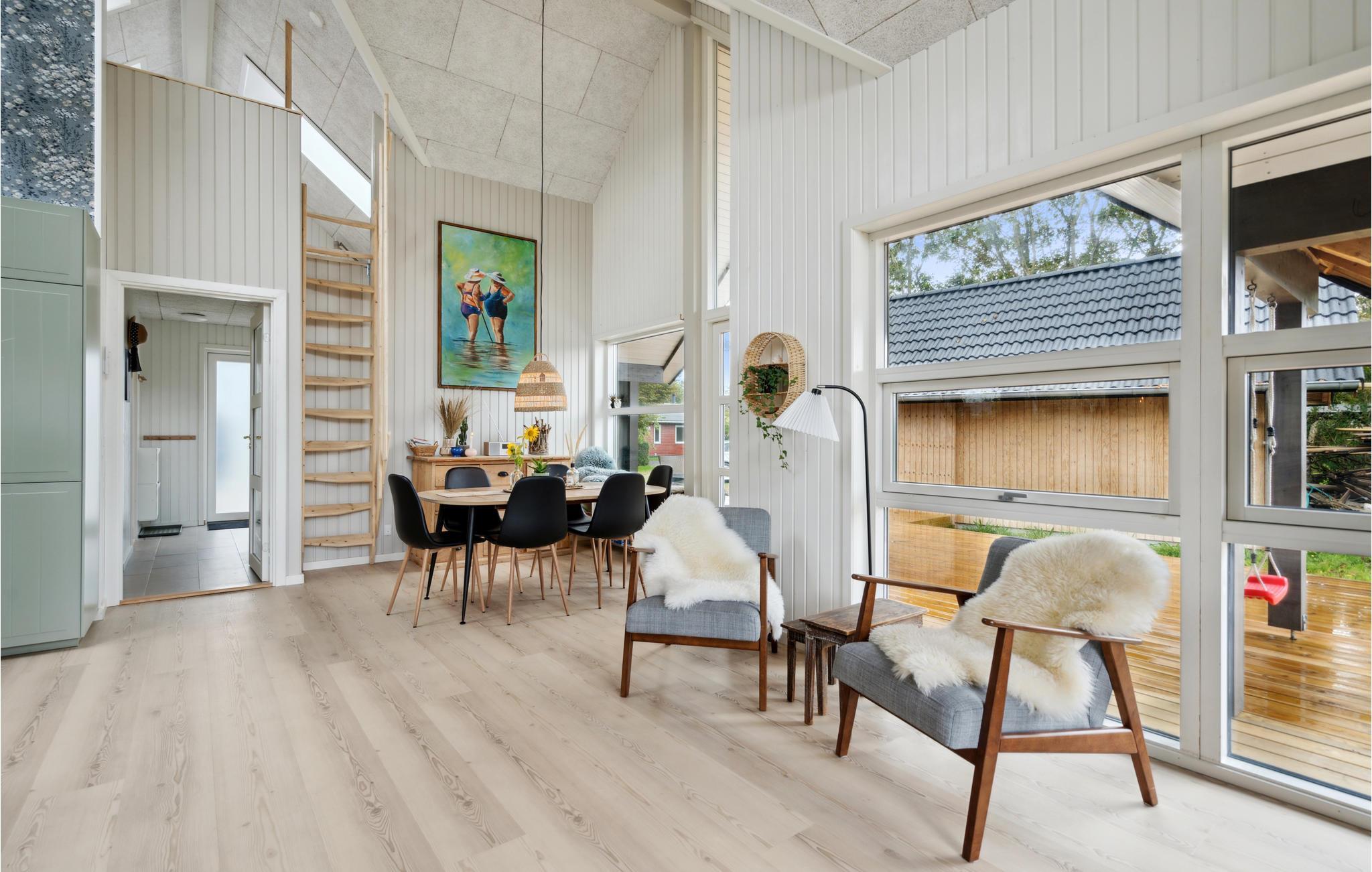 Dette yderst komfortable hus har en fremragende beliggenhed i Hemmet Strand, så her er der lagt op til en herlig familieferie ved havet. Nyd den vidunderlige udsigt over klitlandskabet, fra I står op om morgenen. Nyd atmosfæren i de åbne, hyggelige lokaler, tilbered lækre feriemåltider sammen og dæk op til en middag rundt om det lange spisebord efter et spil bordtennis eller airhockey. Når dagen er til ende kan I sætte jer til rette i sofaen og hygge jer med en god film. Den stille knitren fra flammerne i brændeovnen bidrager med ekstra stemning.