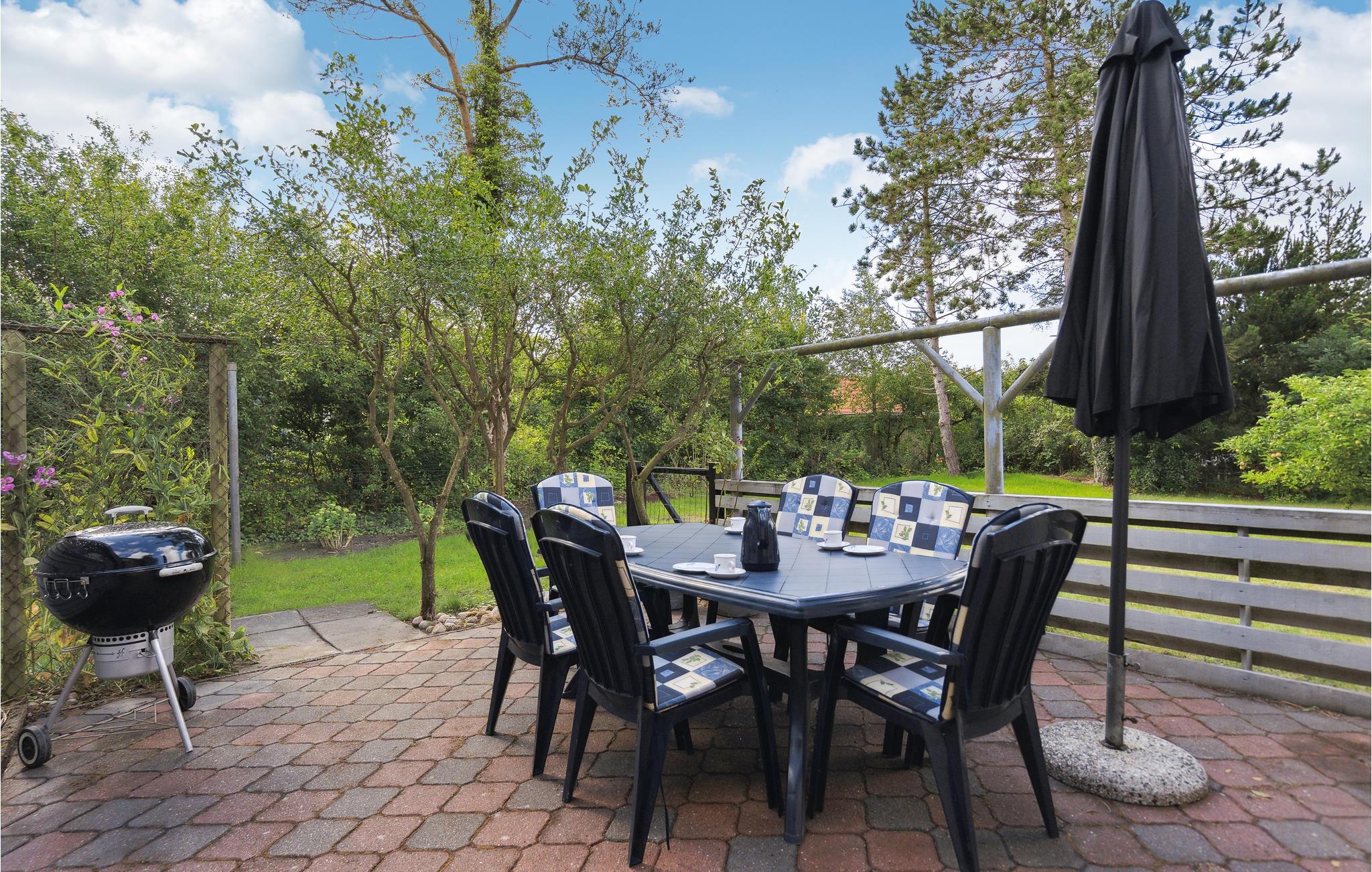 Kun få hundrede meter fra Ringkøbing Fjord byder dette smukt beliggende feriehus jer velkommen til Hemmet Strand. Det er smagfuldt og kærligt indrettet i retrostil, som indbyder til en afslappet og hyggelig ferie. Tilbring skønne timer i spiseområdet i stuen eller i udestuen med udsigt over det grønne. På kølige dage kan I slå benene op i sofaerne nær brændeovnen og dyste i kortspil eller læse en god bog. Her venter uforglemmelig familietid med kagesmovs og forfriskninger. På solrige dage kan I slå jer ned på terrassen med en kop kaffe og nyde idyllen. Børnene finder masser af plads at lege på i haven med flere gamle træer og hyggekroge. Den nærmeste legeplads kan nås til fods, og det samme kan fjorden, som indbyder til badesjov og hyggelige gåture.