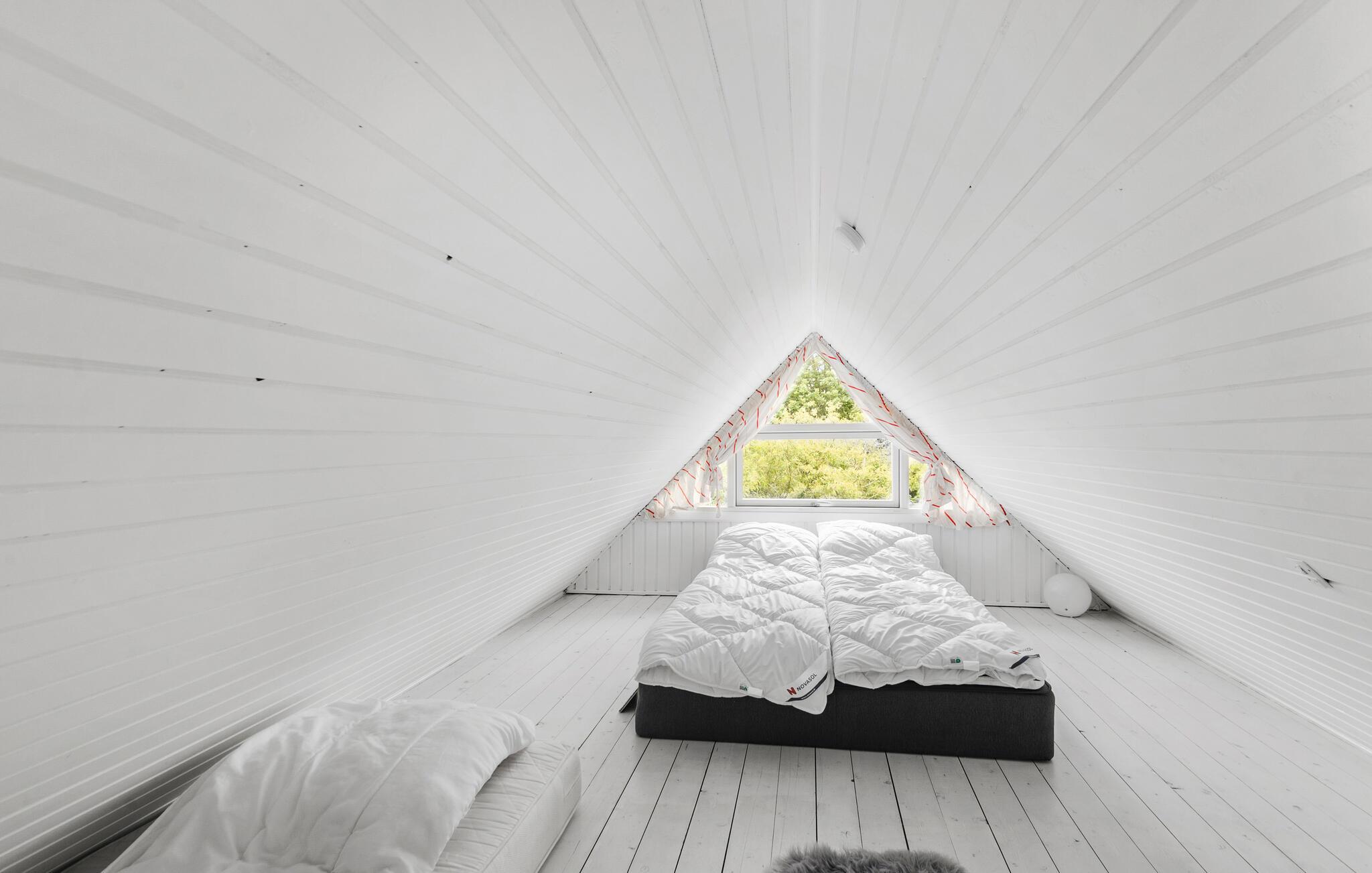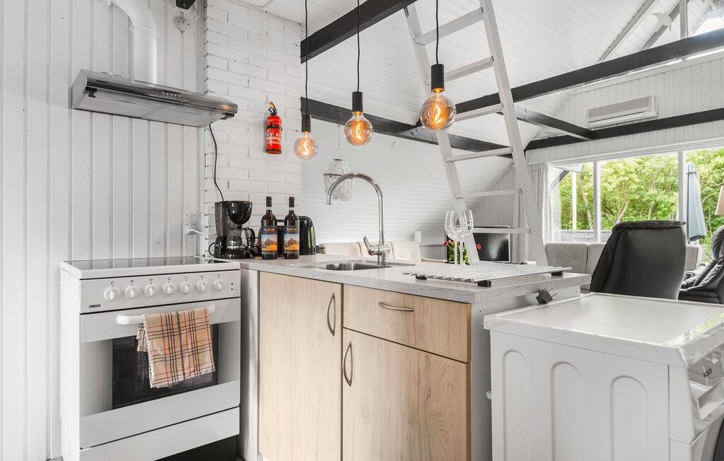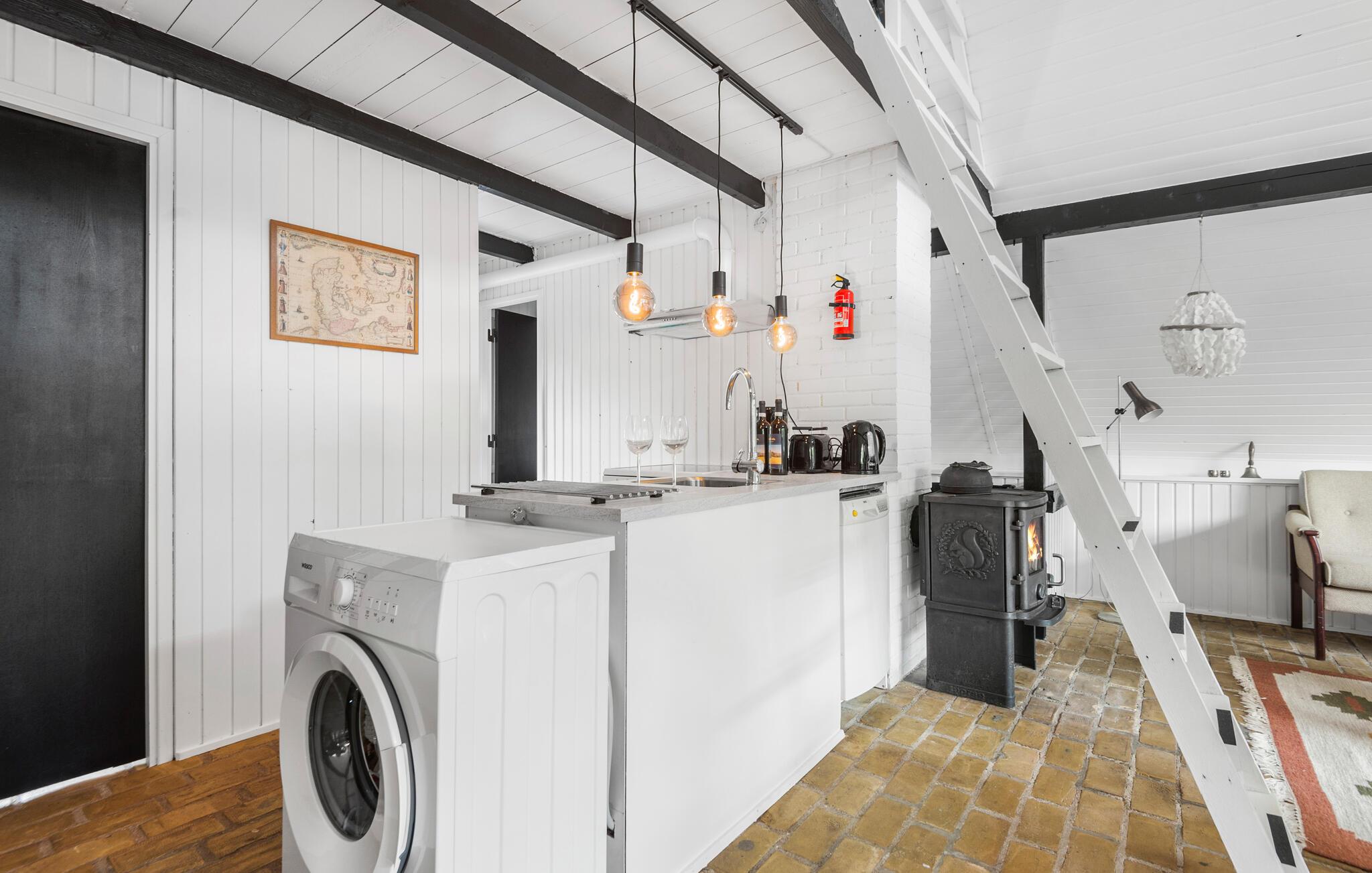 Tag familien under armen og rejs til Vestjylland, hvor I finder dette feriehus i skønne omgivelser tæt på fjorden og mellem Bork og Skaven Strand. Huset er indrettet over to etager, og stuen er fordelt over to plan, da hemsen kan nås via en stige fra stuen. Det emmer af hygge med et samspil mellem de lyse træpaneler og mørke træbjælker, de rustikke stengulve og med brændeovnen, der giver varme og stemning, hvis vejret skulle vise tænder. Køkkenet er veludstyret, så tag jer blot god tid til madlavningen, inden I lader aftenen gå på hæld med brætspil, snacks og en god film til lyden af den knitrende ild.