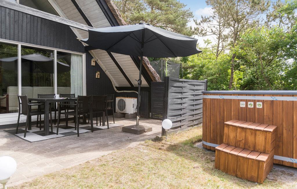 Gør jer klar til en dejlig ferie tæt på Ringkøbing Fjord i dette stråtagshus med vildmarksbad.