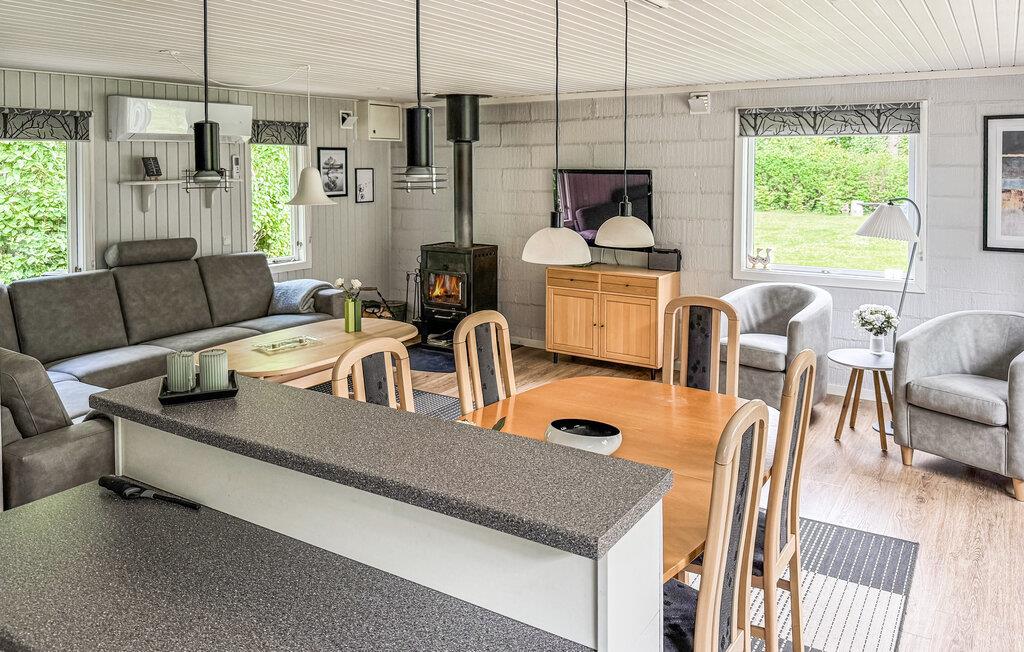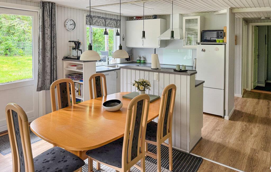 Glæd jer til en afslappende pause i dette indbydende sommerhus nær Ringkøbing Fjord. Den idylliske beliggenhed og familievenlige faciliteter gør det til det ideelle sted for fælles oplevelser og ren afslapning. Begynd dagene med en solid morgenmad, som I kan tilberede i det lille åbne køkken. Indtag dagens måltider ved det hyggelige spisebord, i vinterhaven med udsigt til den smukke have eller på terrassen. Mens børnene allerede er ved at opdage gyngen og sandkassen i haven, kan I slappe af i sofahjørnet og nyde den hyggelige varme fra brændeovnen.