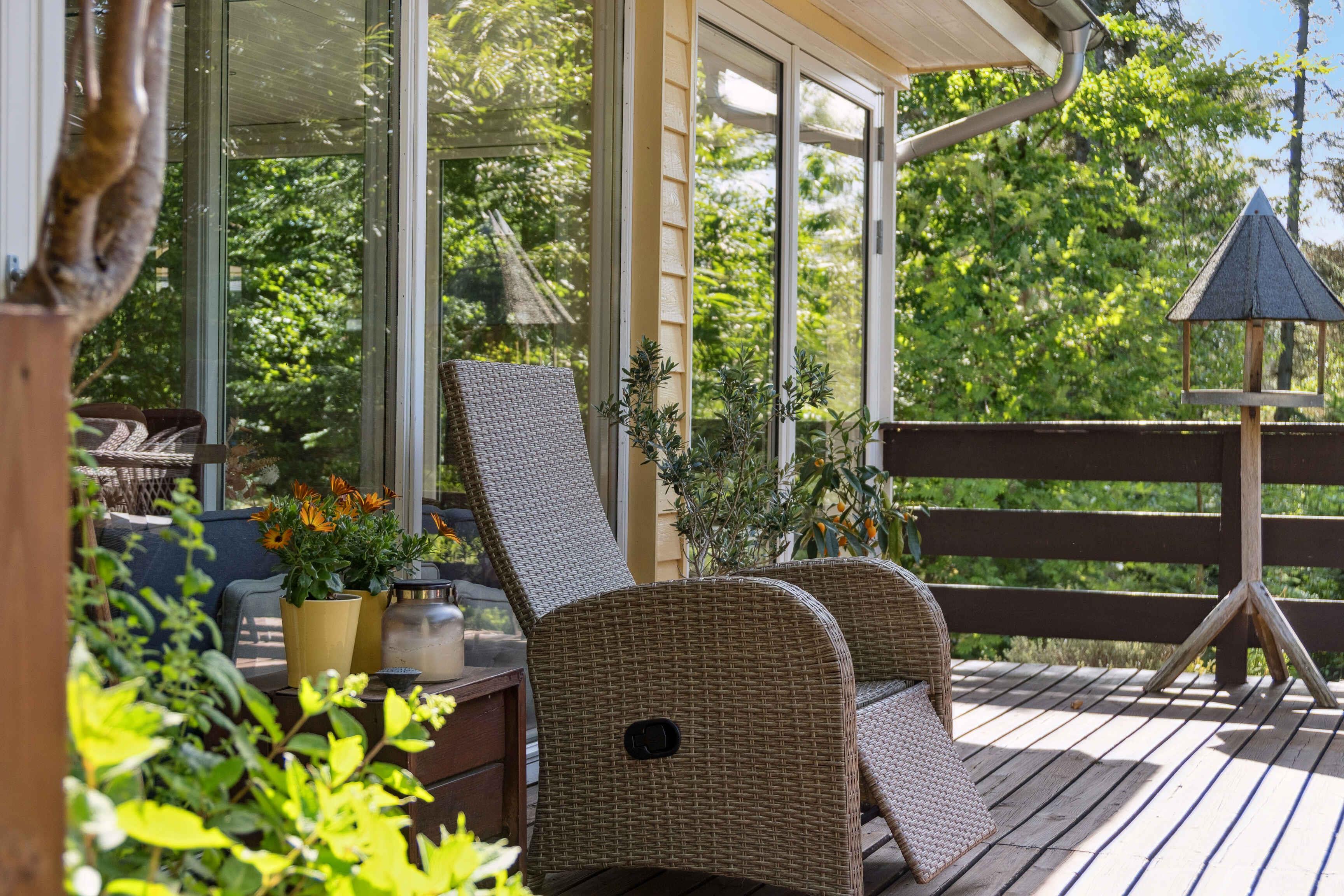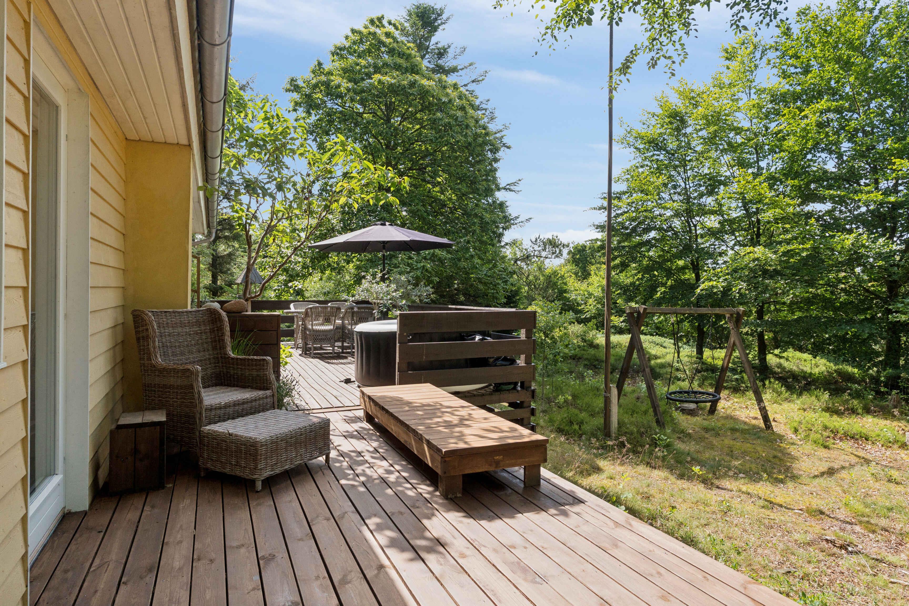 Gennemrenoveret feriehus med solrige terrasser og smuk naturudsigt ved Hemmet.