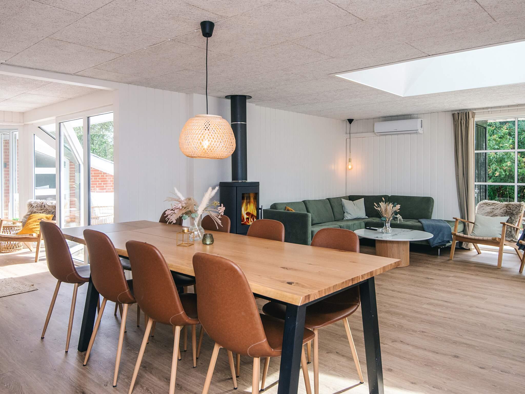 Huset ligger på en stor naturgrund, der giver dig god plads til at nyde udelivet. Flere terrasser omslutter ejendommen, perfekt til solrig morgenmad, dovne eftermiddage eller hyggelige aftener under åben himmel. Indenfor er stuen hjertet i familielivet. Her skaber brændeovnens skær en varm og imødekommende atmosfære, der let flyder ind i spiseplads og køkken. Fra en del af stuen har du endda direkte udsigt ind i poolrummet, så du kan holde øje med de badende, mens du nyder din egen nedetid.