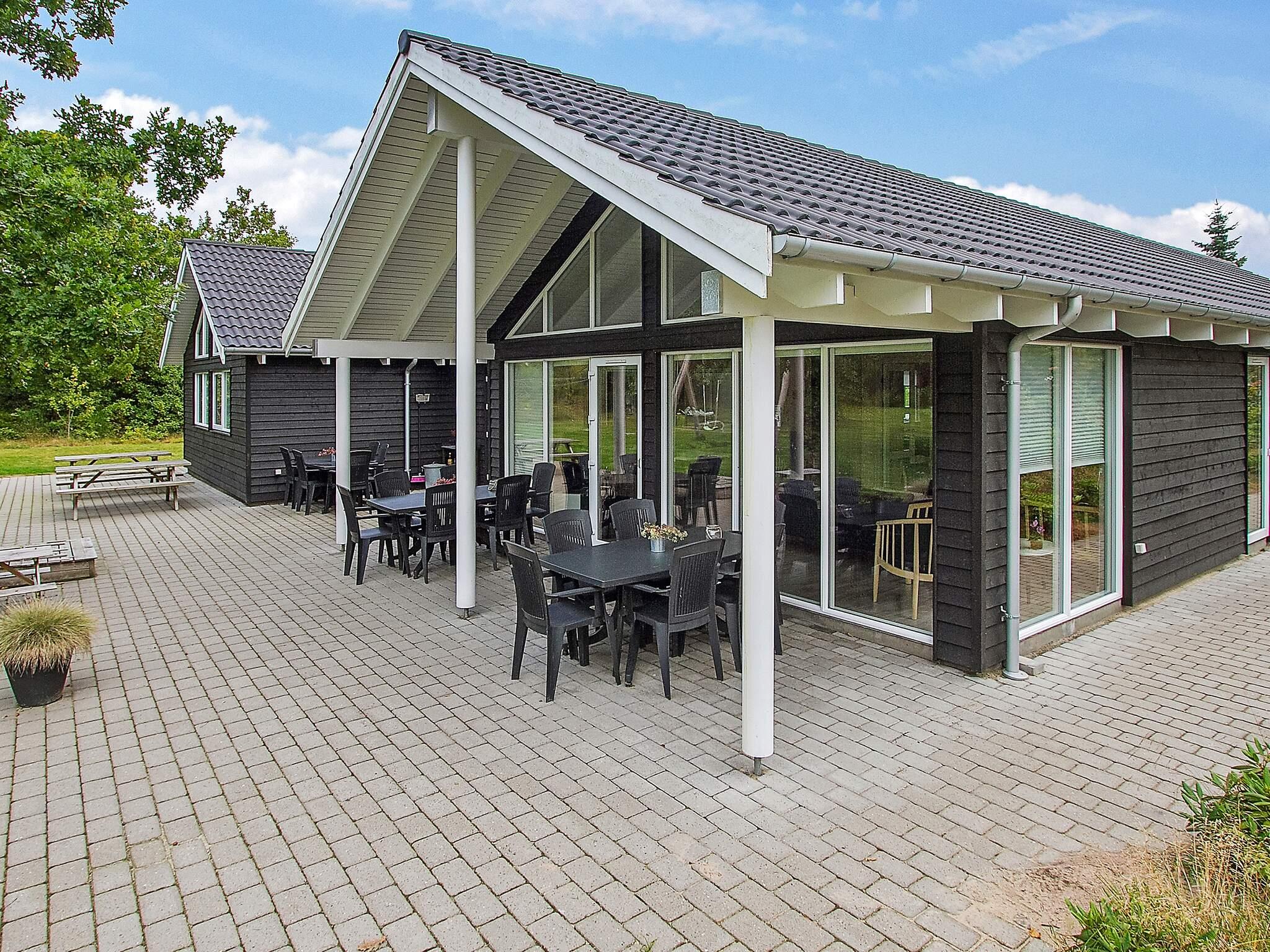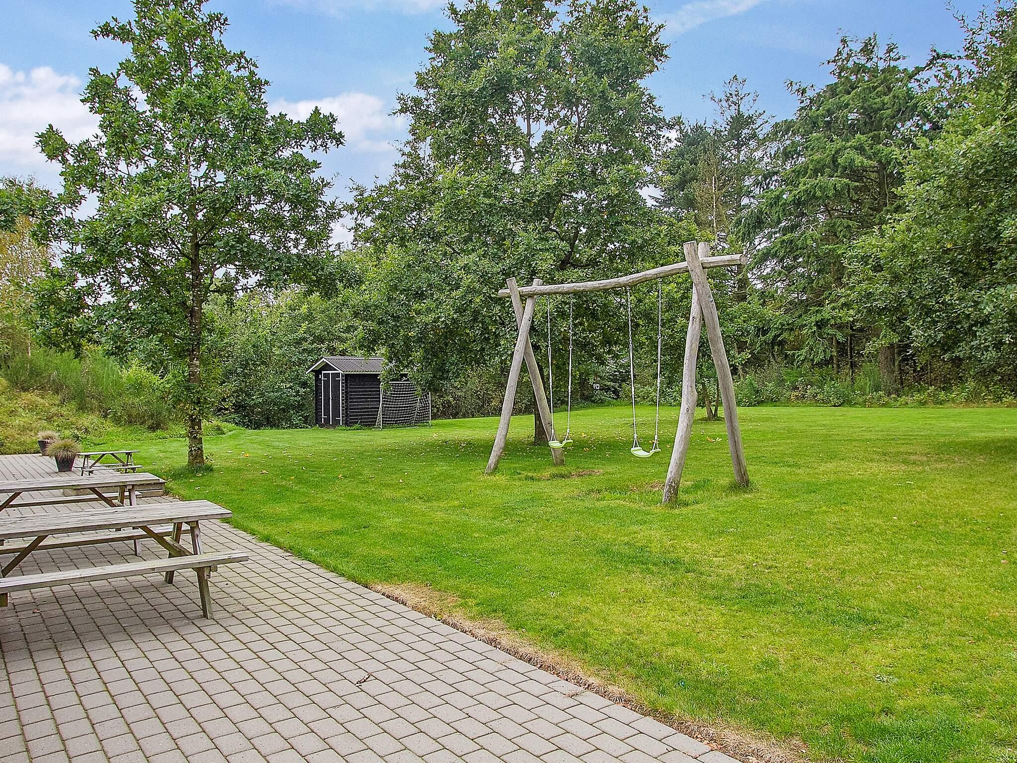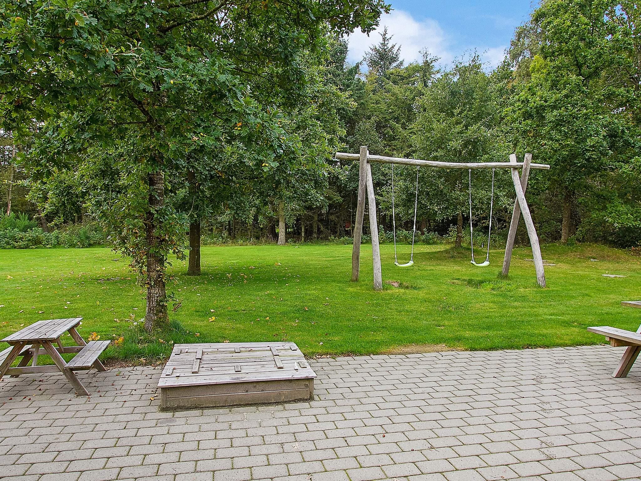 Udendørs er der sandkasse og gynger til de mindste. Stor, åben solterrasse og overdækket terrasse.