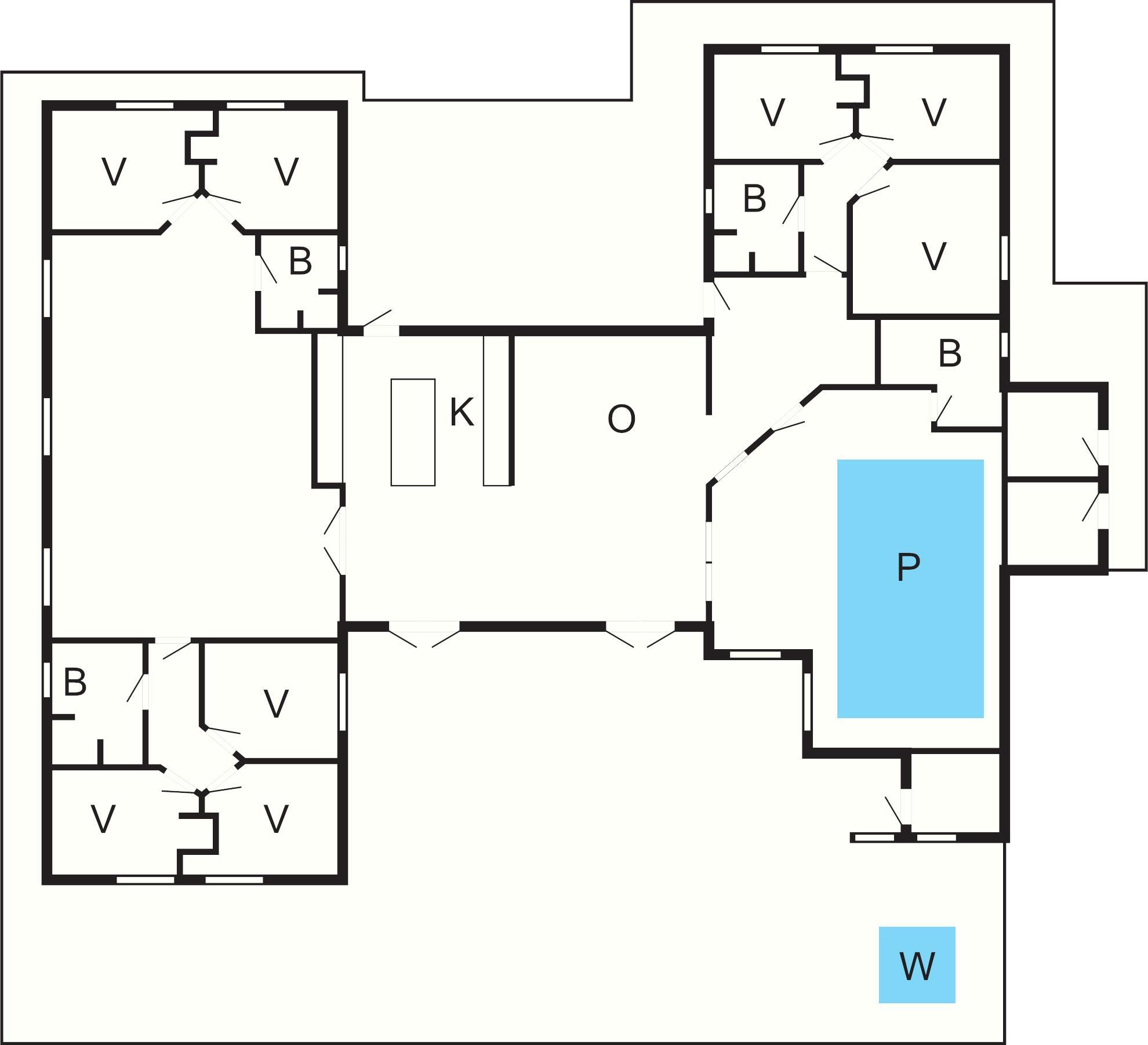Dette feriehus er skabt til jer, der ønsker et sted med charme, plads og kvalitet – et sted, hvor dagene glider langsommere, hvor naturens nærvær kan mærkes, og hvor I får tid til hinanden. Det er rammen om en ferie, I vil se tilbage på med glæde.Velkommen til et feriehus, hvor plads, komfort og naturskønne omgivelser går op i en højere enhed. Her kan I trække jer tilbage fra hverdagens tempo og nyde et sted, der er skabt til nærvær, afslapning og uforglemmelige øjeblikke. Huset er ideelt til store familier eller vennegrupper og rummer hele 20 gæster fordelt på 8 smagfuldt indrettede soveværelser, 2 hyggelige hemse og 4 moderne badeværelser, så alle har deres eget lille fristed. Bemærk venligst, at ungdomsgrupper ikke er tilladt i dette feriehus.
