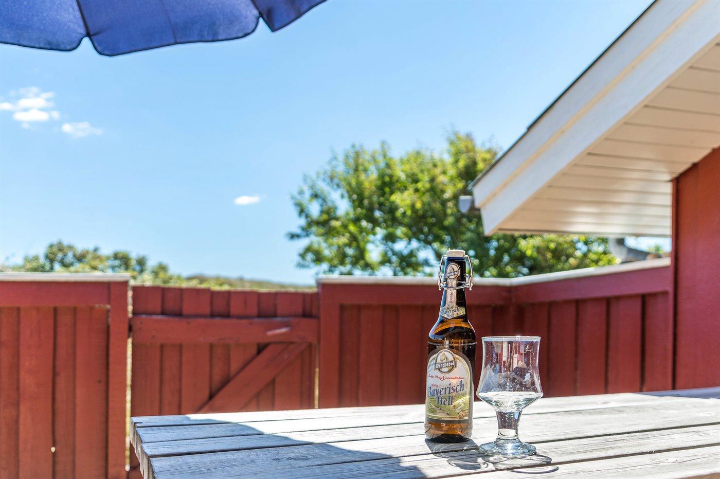 Hyggeligt sommerhus i Henne med sauna, brændeovn og stor terrasse nær stranden.
