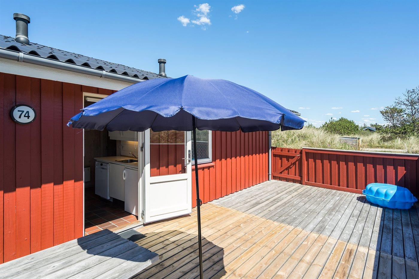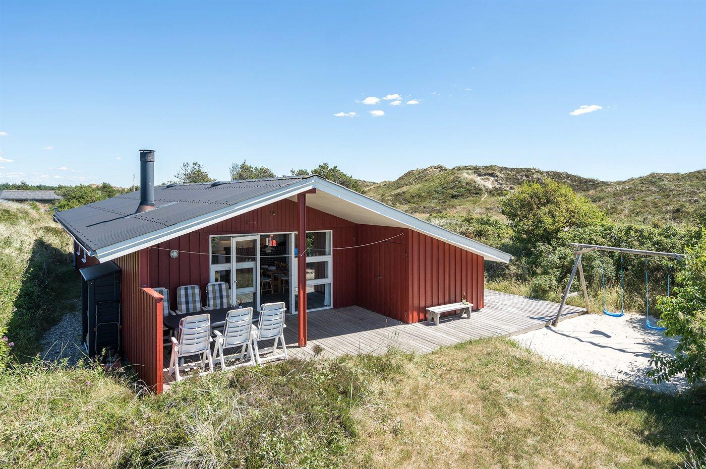 Ferieboligen er beliggende på en 1549 m² stor klitgrund. Der er 800 m til havet. Nærmeste forretning er beliggende i en afstand af 1800 m. Til ferieboligen hører 62 m² terrasseareal. Desuden er der 15 m² overdækket terrasse. Heraf i alt 32 m² lukket terrasse. Der er redskabsrum. Gynge. Sandkasse. Parkering ved ferieboligen.