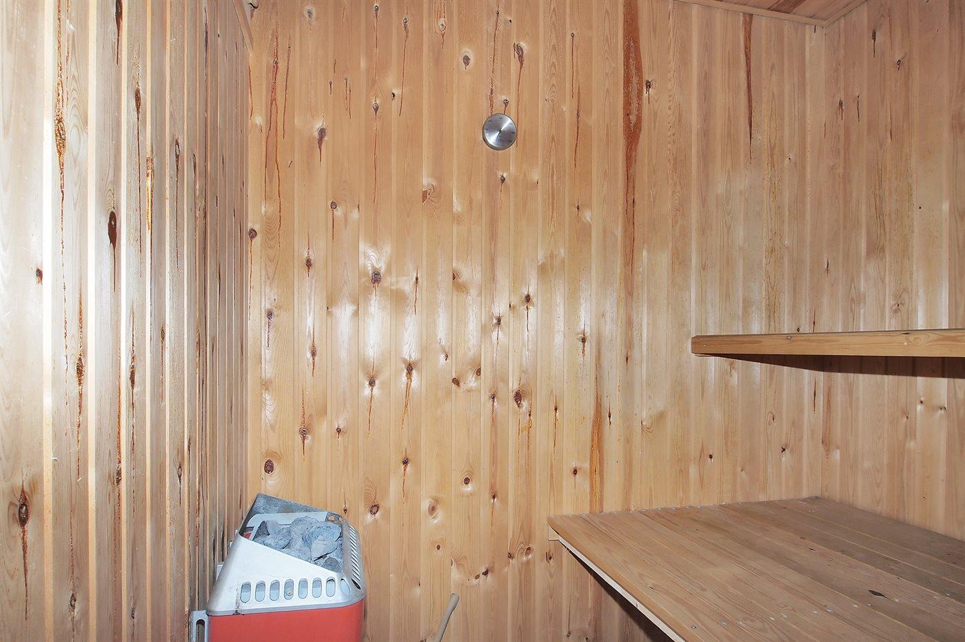 Der er 1 badeværelse med bruser og 1 toilet.. Der er gulvvarme på 1 badeværelse. I saunaen er der mulighed for afslapning.