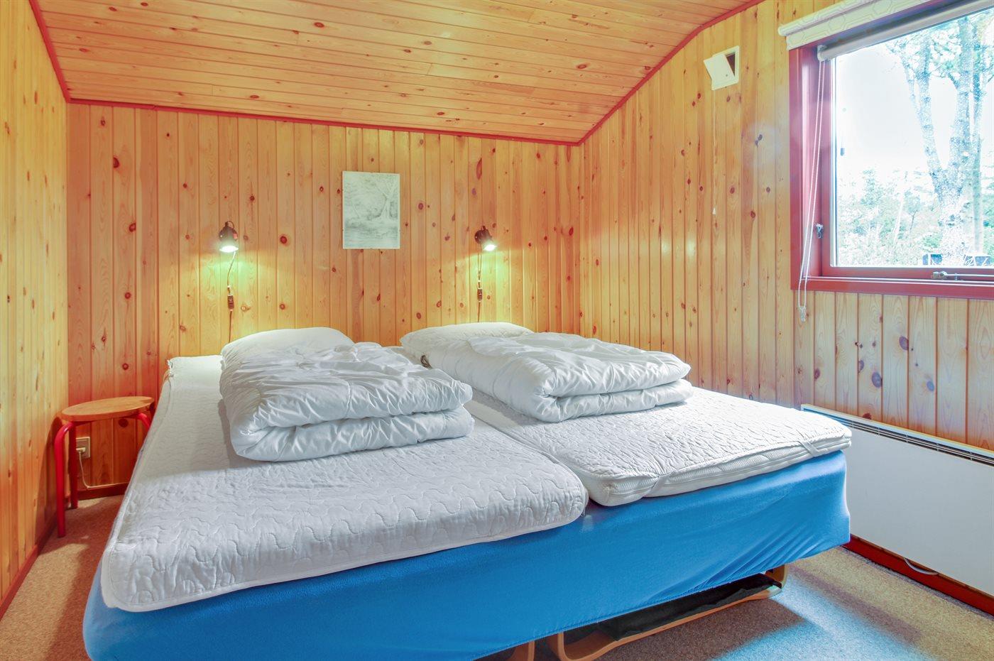 Der er i alt 3 soveværelser. Sovepladserne fordeler sig på: 4 sovepladser i dobbeltsenge. 2 sovepladser i enkeltsenge.