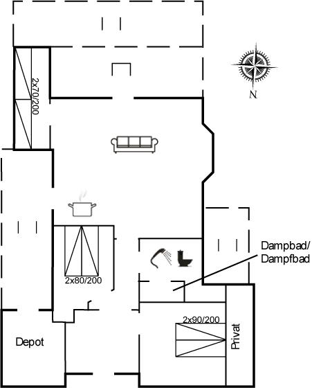 Der er 1 badeværelse med bruseniche og 1 toilet.. Der er gulvvarme på 1 badeværelse. Dampkabine.