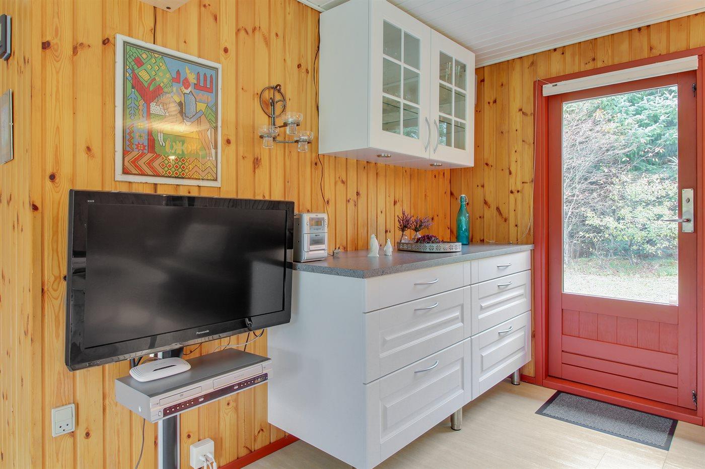 I ferieboligen er der 1 TV. DVD-afspiller. Video. Stereoanlæg. CD-afspiller. Der er mindst 4 danske kanaler. 1-3 svenske kanaler. 1-3 norske kanaler. Mindst 4 tyske kanaler. Der er trådløst internet til rådighed.