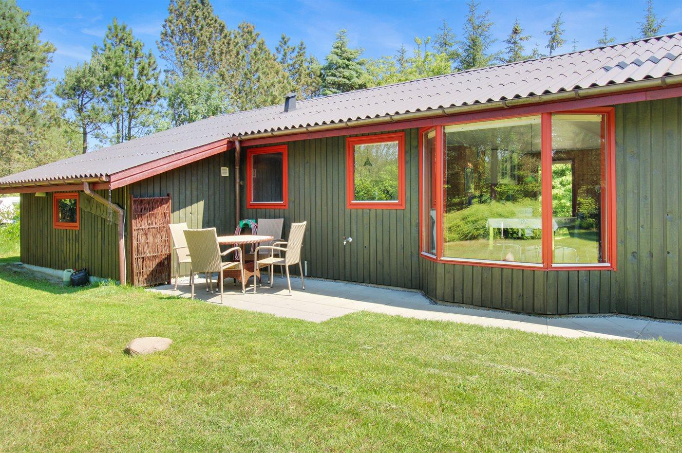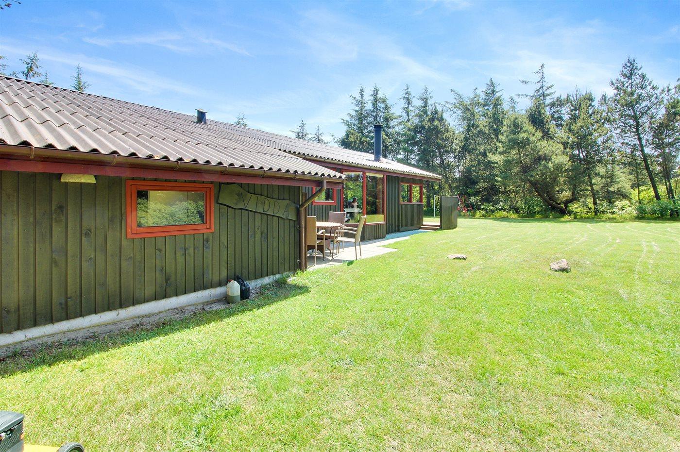 Ferieboligen er beliggende på en 2580 m² stor naturgrund. Der er 2300 m til havet. Nærmeste forretning er beliggende i en afstand af 1900 m. Til ferieboligen hører 30 m² terrasseareal. Desuden er der 15 m² overdækket terrasse. Der er redskabsrum. Gynge. Sandkasse. Bålsted. Grill til rådighed. Parkering ved ferieboligen.