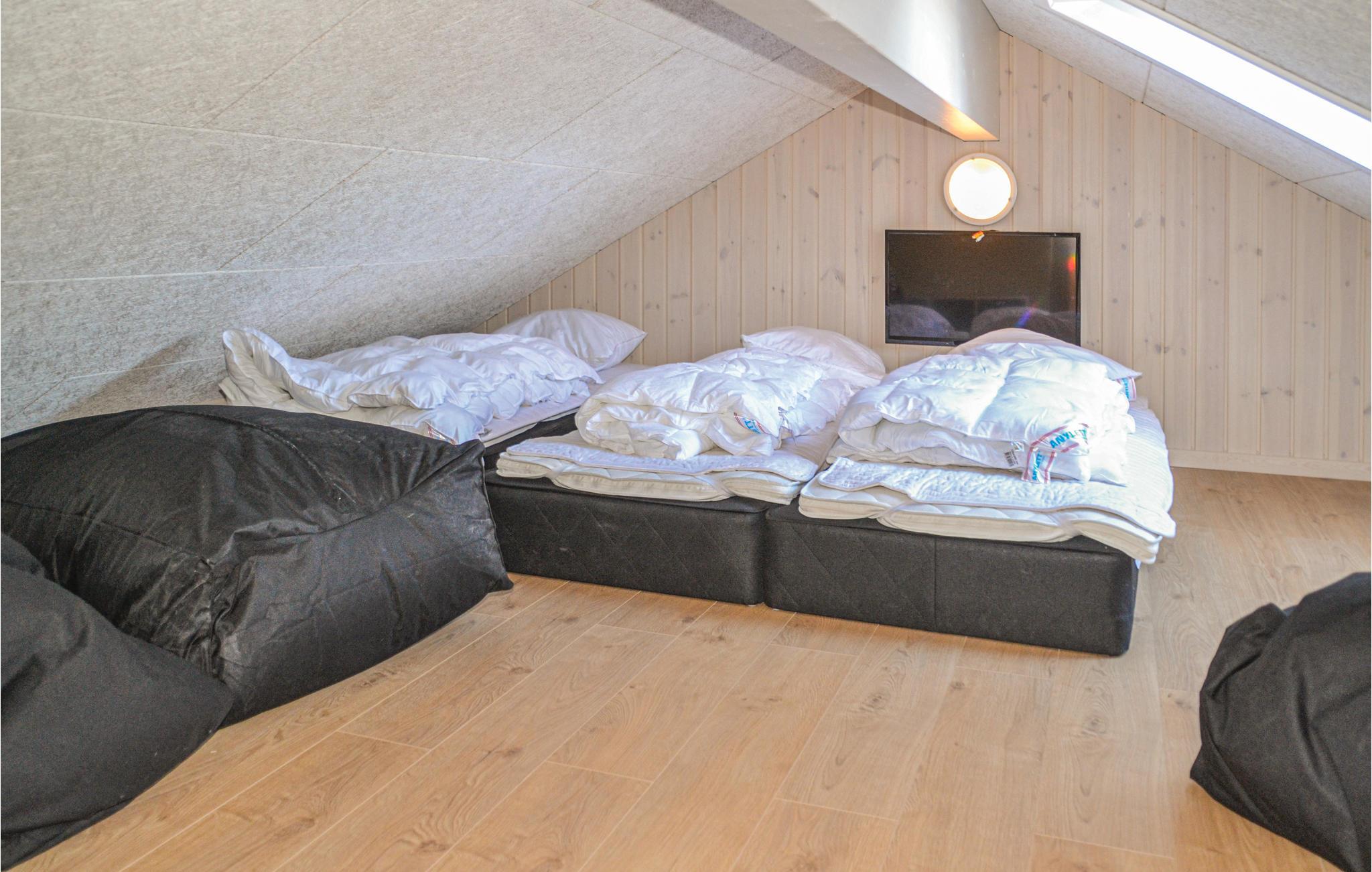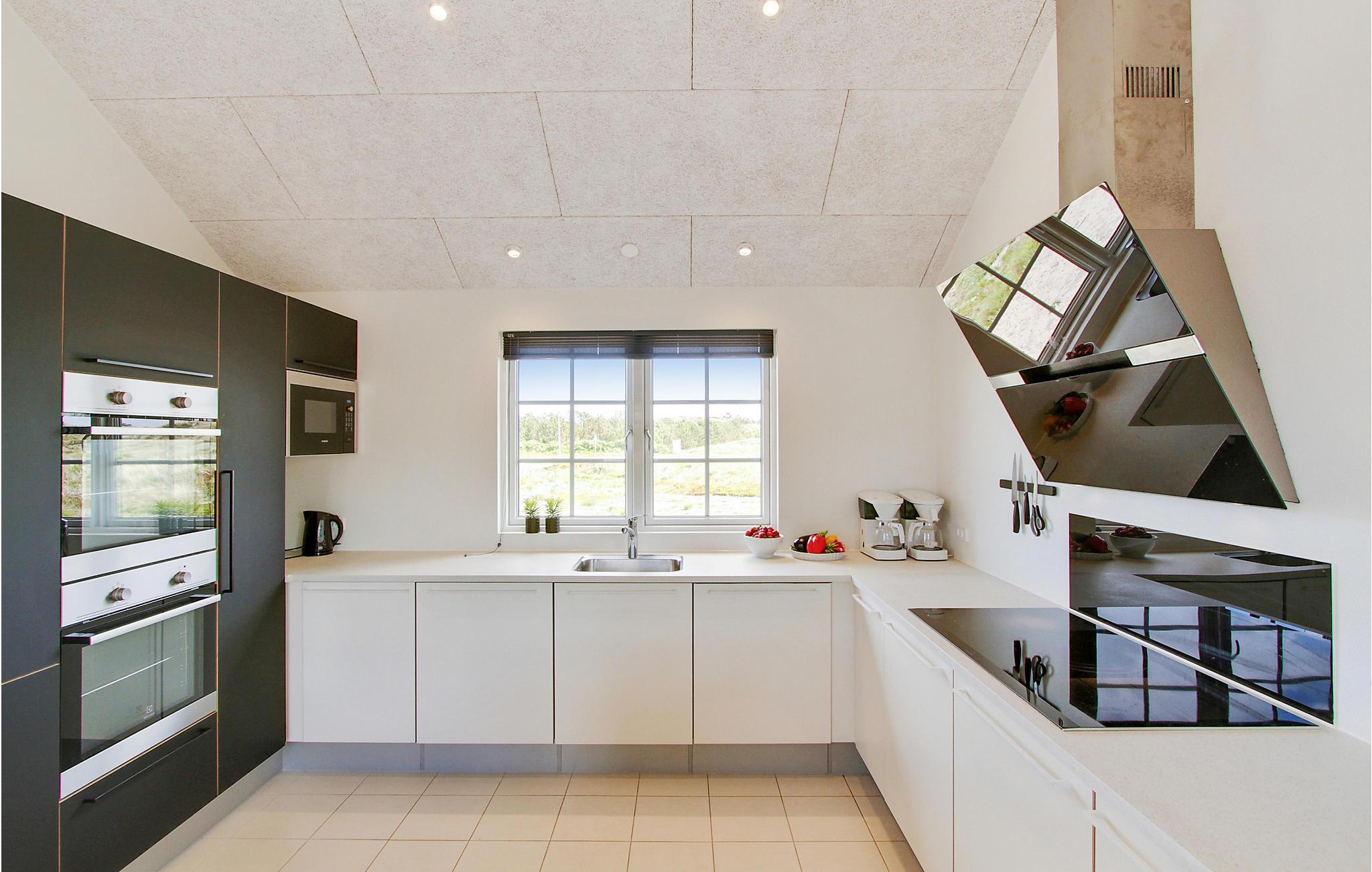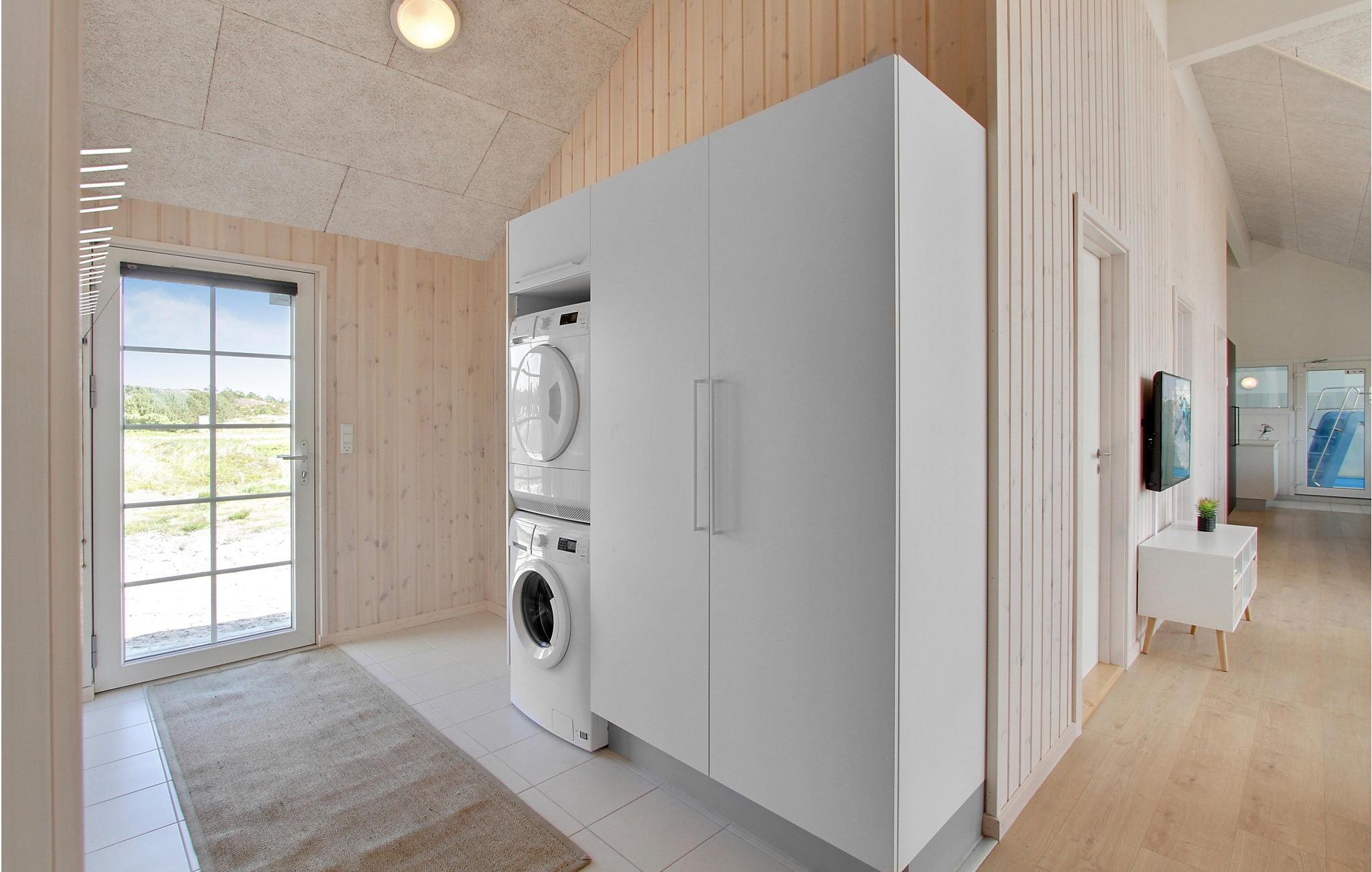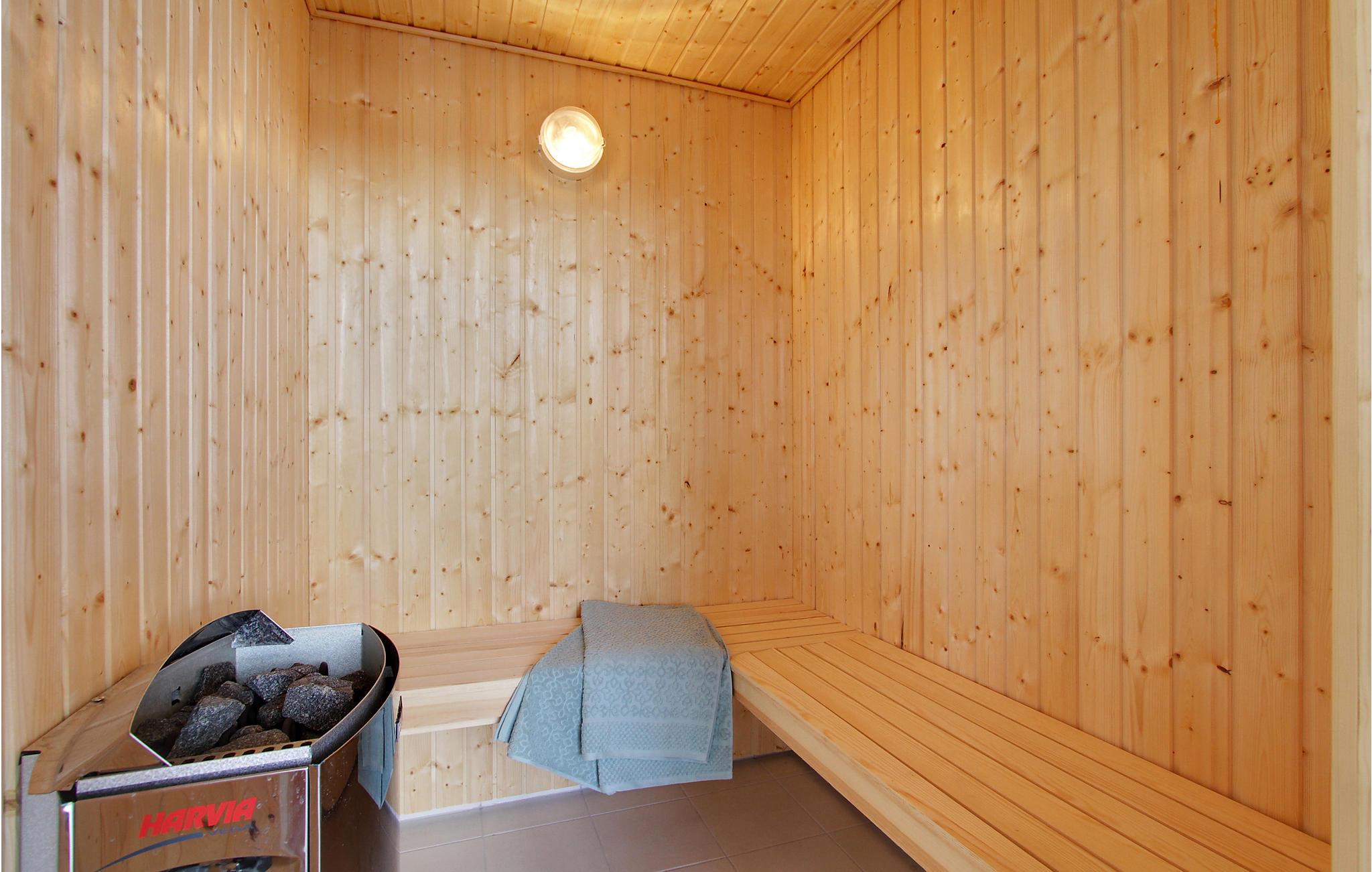 I feriebyen Henne Strand, ligger dette pragtfulde swimmingpoolhus på en kuperet naturgrund. Huset er med sine mange aktivitetsmuligheder den perfekte ramme for en succesfuld ferie året rundt. Feriehuset byder på al tænkelig komfort og luksus, og er bygget op omkring to soveafdelinger med hvert sit badeværelse, som gør det meget velegnet til flere familier, der ønsker at holde ferie sammen. Børnene vil ofte foretrække at sove på den store hems, hvor der er indrettet fire sovepladser. Huset er udstyret med lydisolerede lofter, hvilket gør det meget behageligt at opholde sig i. I husets poolafdeling er der swimmingpool med vandrutsjebane og modstrømsanlæg til svømmetræning. Endvidere er der et seks personers spabad samt sauna og et badeværelse. I det store aktivitetsrum kan I spille både billard/bordtennis, dart, bordfodbold og Playstation4. I baren er der rig mulighed for at mikse spændende drinks, eller servere kolde øl og sodavand fra barens køleskab. Køkkenet er særdeles velindrettet og udstyret med en ekstra stor kogeplade, to opvaskemaskiner samt to køle-/fryseskabe, så der uden problemer kan være mange kokke og køkkenskrivere om den fælles madlavning. Terrassen er sydvendt og helt privat. På den delvis overdækkkede terrasse står en grill til tilberedning af lækre feriemåltider.