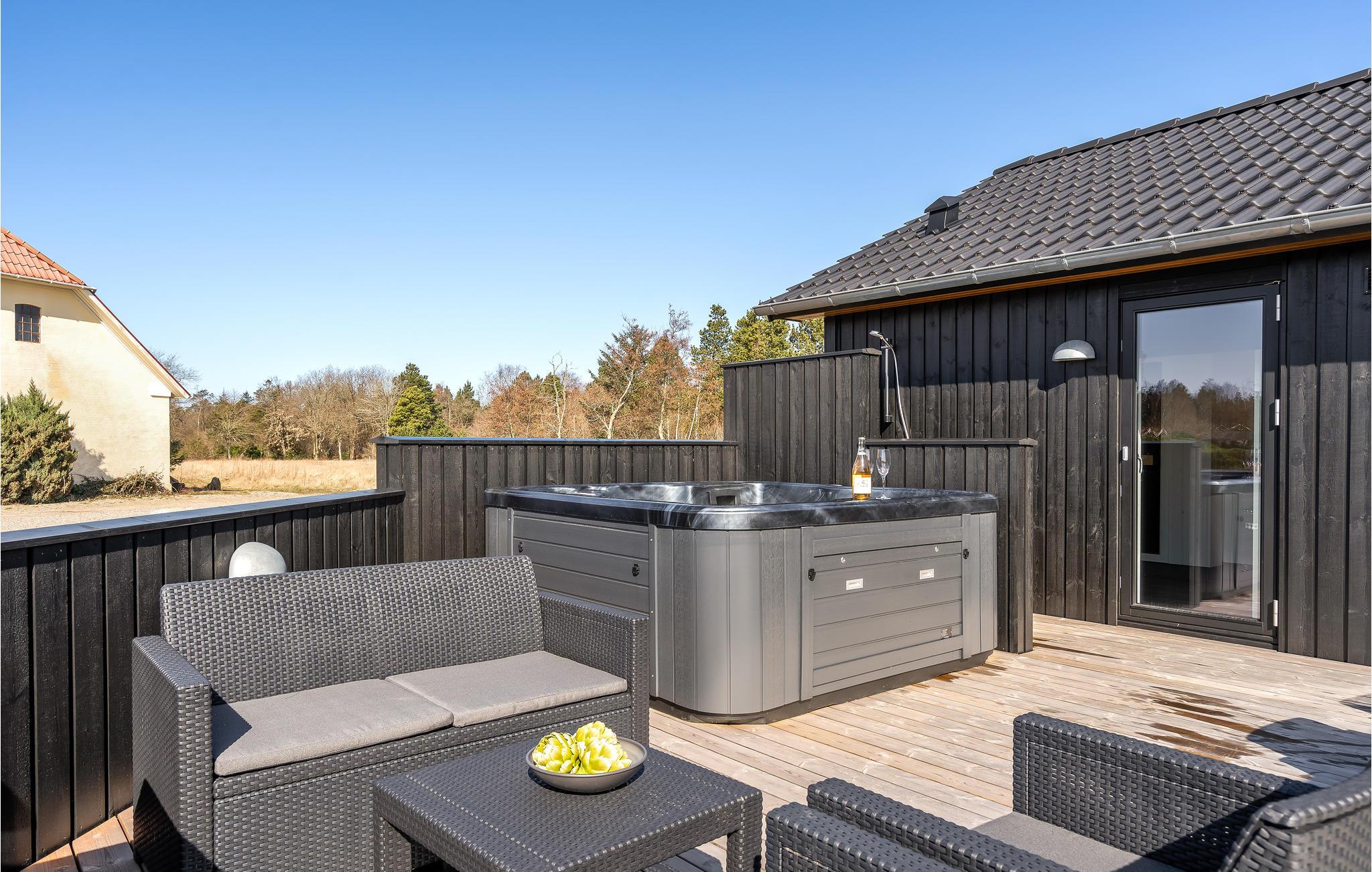 Glæd jer til at slappe af i det udendørs boblebad, som står på terrasse, hvor I også kan samles om en herlig grillmiddag. Børnene får også nogle skønne dage, for der er både gyngestativ og meget andet, de kan kaste sig over på ejendommen.