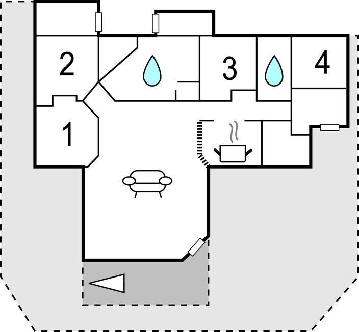 Herfra er der adgang til den delvist overdækkede, sydvestvendte terrasse, hvor I kan nyde solen i mange timer, mens børnene leger i haven. Og måske I skal forkæle jer selv med en lækker aftentur i det udendørs spabad?
