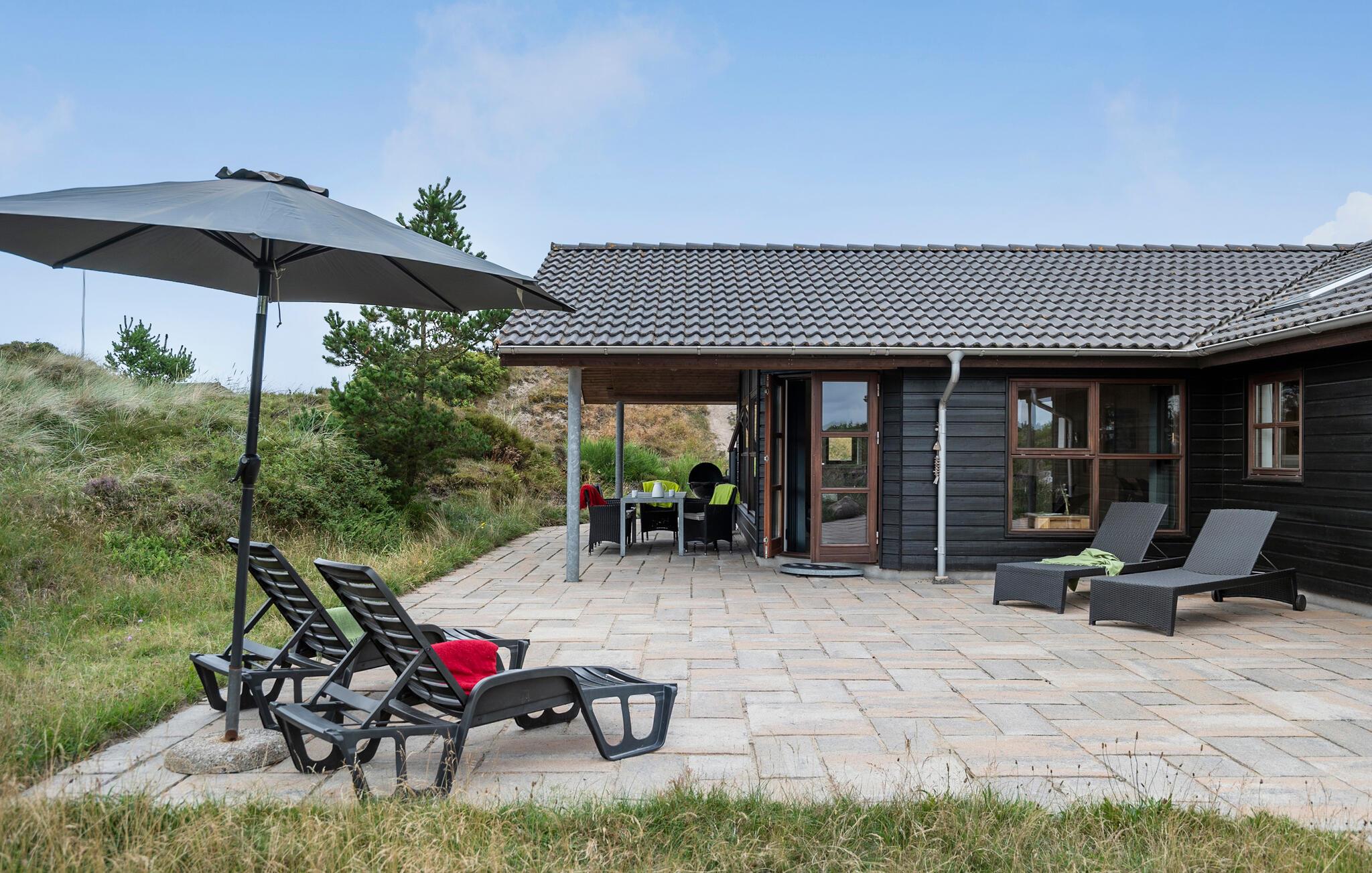 Nyd en komfortabel familieferie i et moderne hus med sauna, spabad og smuk udsigt til klitterne ved Henne Strand.