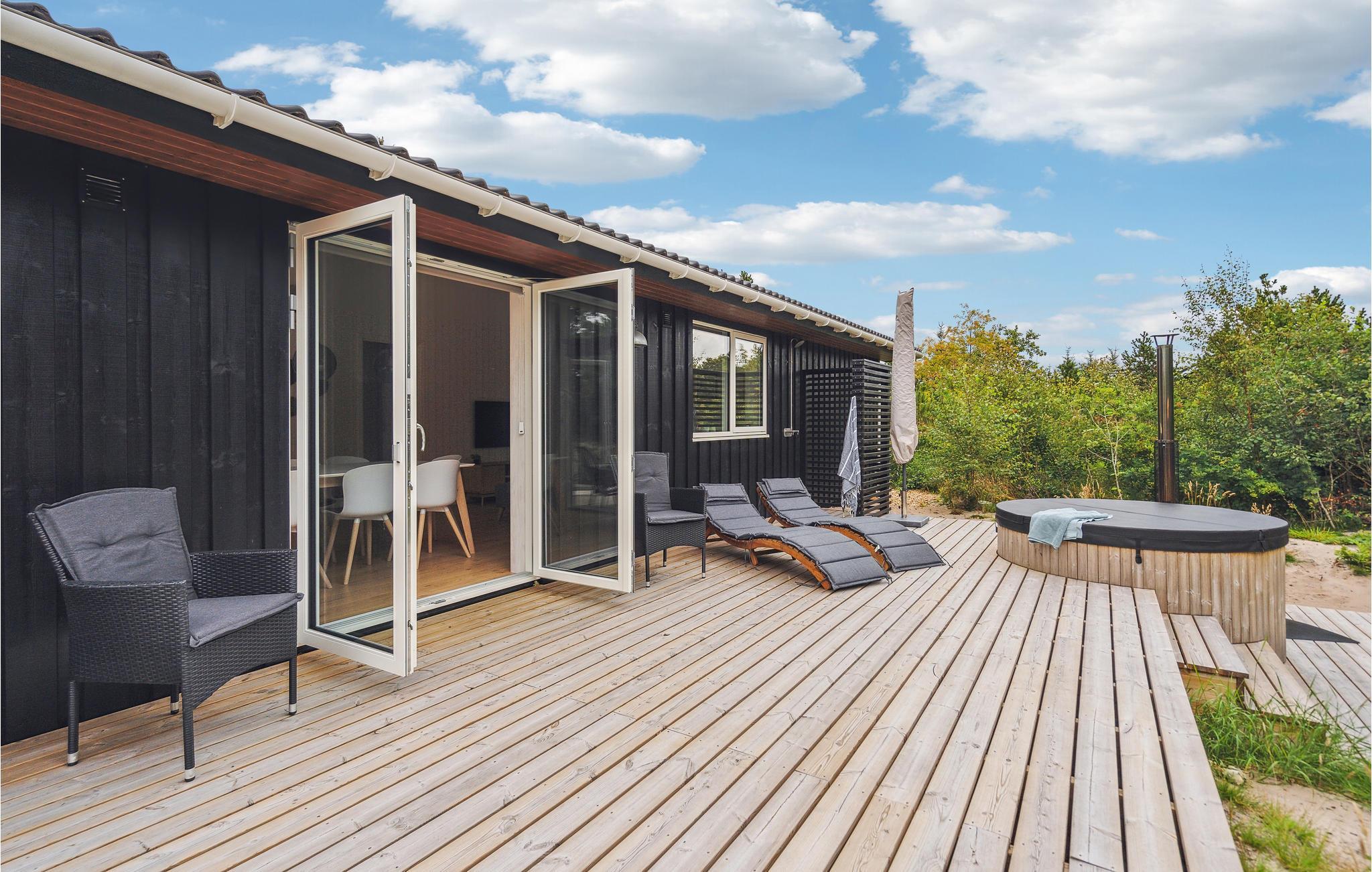 Drømmer I om en ferie med høj komfort, wellness og nem adgang til naturen? Så er dette skønne feriehus med spabad, sauna og vildmarksbad helt perfekt.
