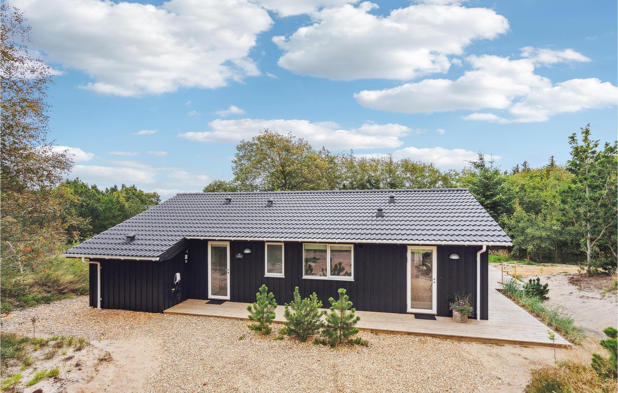 Få kilometer fra Vesterhavet ligger dette skønne, lyse feriehus i grønne rammer. Her venter der høj komfort og lækre faciliteter, så feriestemningen indfinder sig hurtigt. Sæt jer til rette med en god bog i opholdsstuen eller nyd udsigten til fuglelivet med en kop kaffe. Når I skal spise, kan I dække op ved spisebordet og senere kan I spille brætspil med børnene i sofahjørnet.