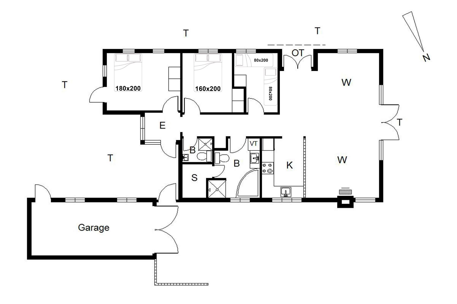 Sengestørrelse: 1 dobbeltseng 180 x 200 + 1 dobbeltseng 160 x 200 cm + 2 enkeltsenge 80 x 200 cm.