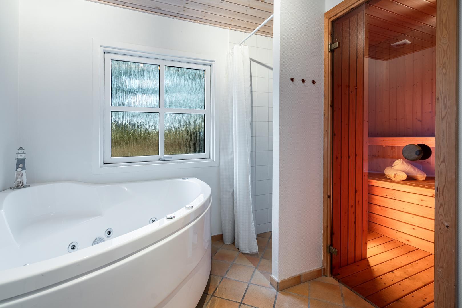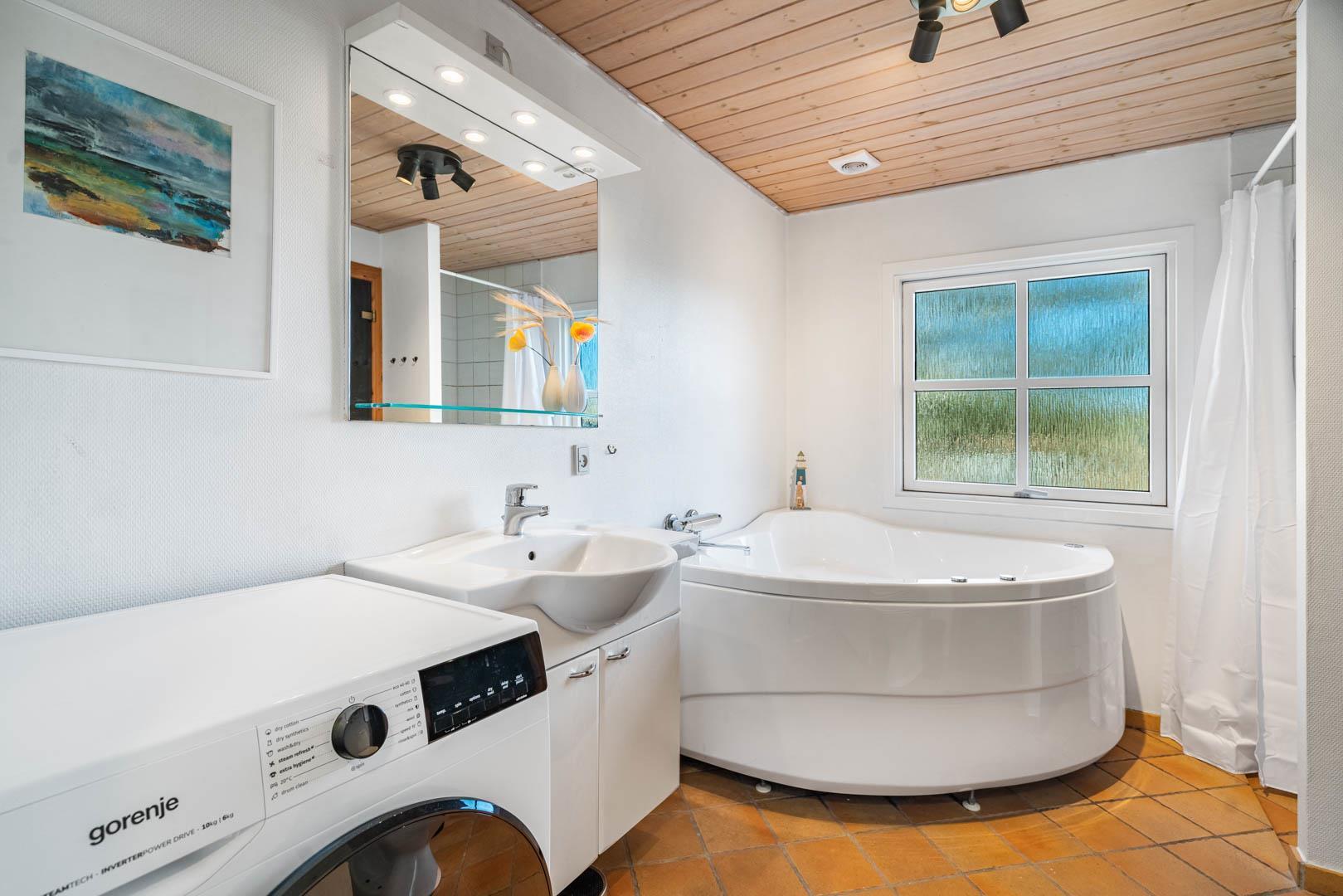 Huset råder over to lyse badeværelser med bruseniche, hvoraf det ene er udstyret med sauna og en 2-personers spa – ideelt til afslapning efter en dag i den smukke natur. Overalt i huset er der flotte trægulve, og det er et IKKE-RYGERHUS.