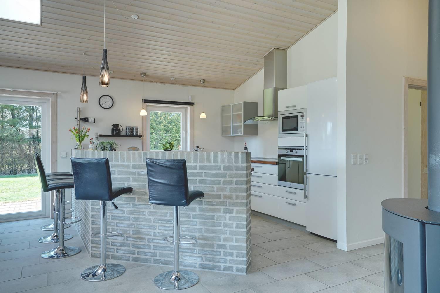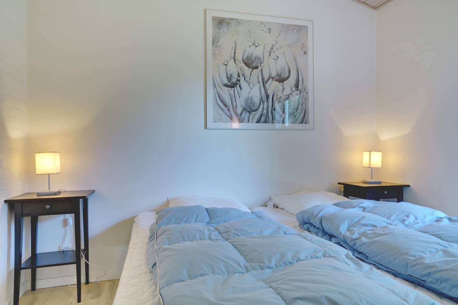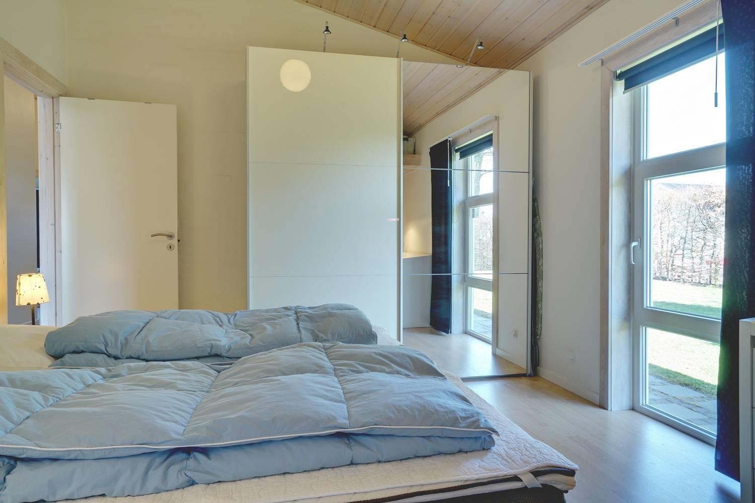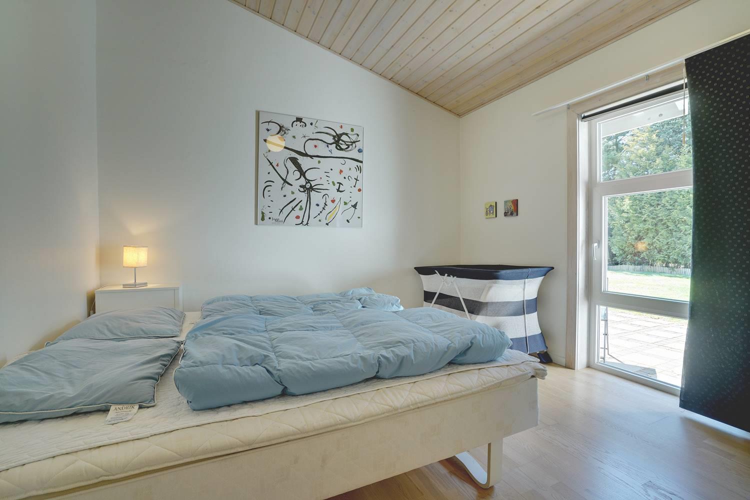 I får rig mulighed for at nyde hinandens selskab i husets lyse opholdsrum med integreret køkken, brændeovn og ovenlysvinduer, og når I trænger til en privat stund, kan I trække jer tilbage til de fire soveværelser, som alle er rummelige og udstyret med komfortable dobbeltsenge. Der er desuden sauna og to badeværelser i huset det ene med spa. Sommerhuset har varmepumpe, hvilket giver et meget lavt energiforbrug under opholdet. Der er gulvvarme i hele huset undtagen i soveværelserne.