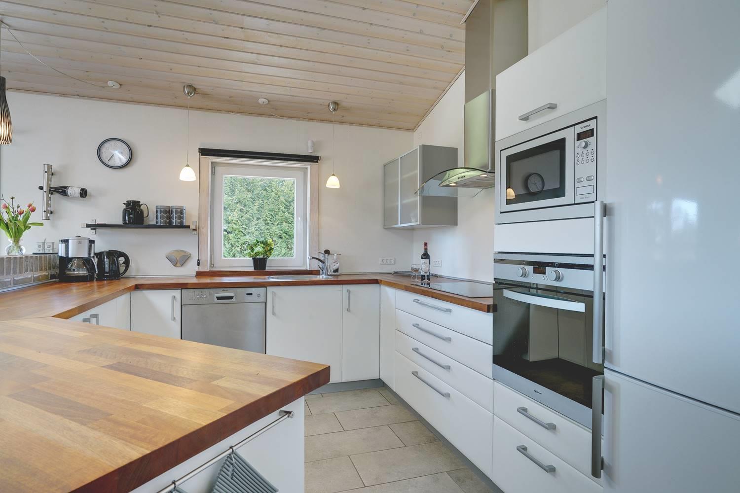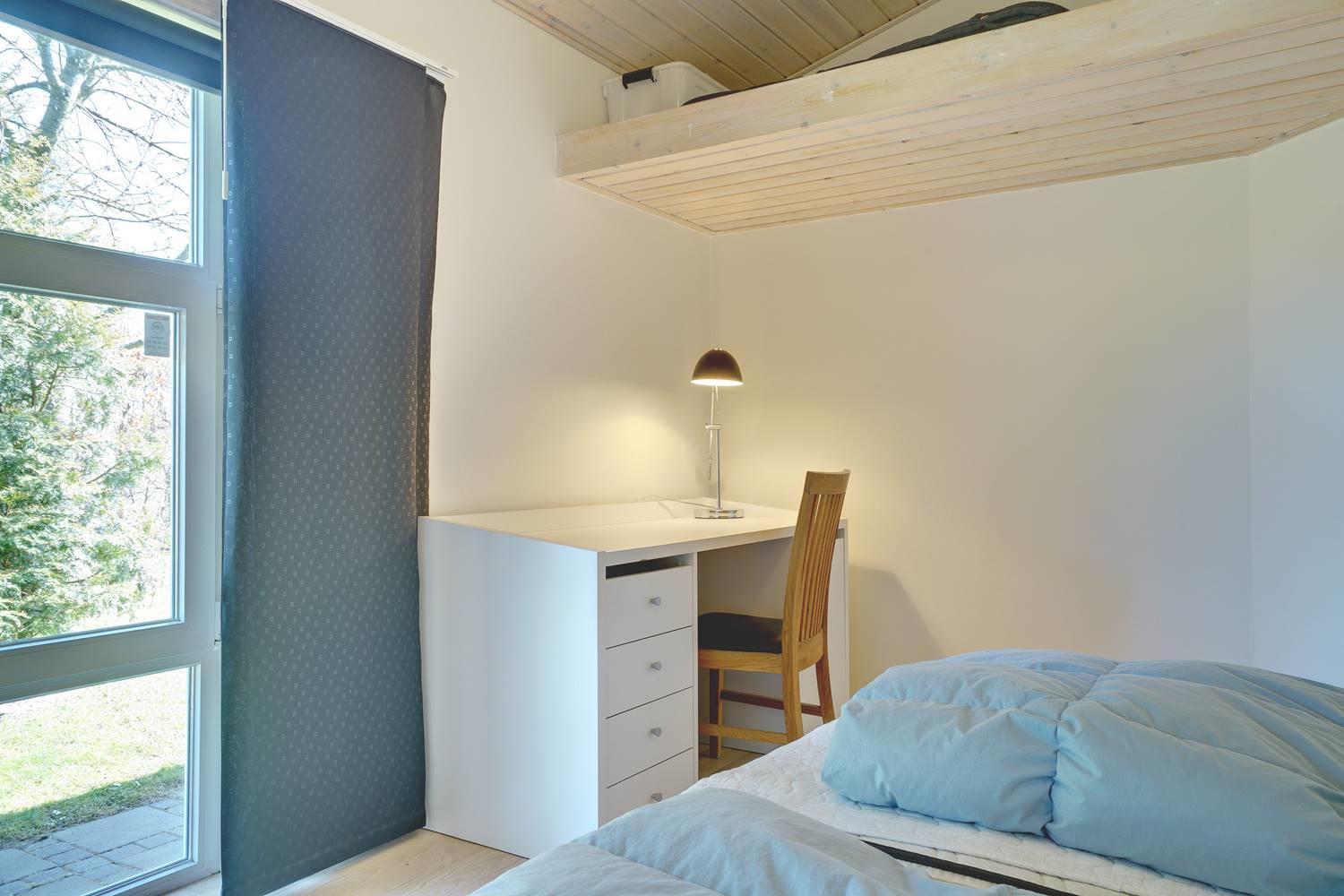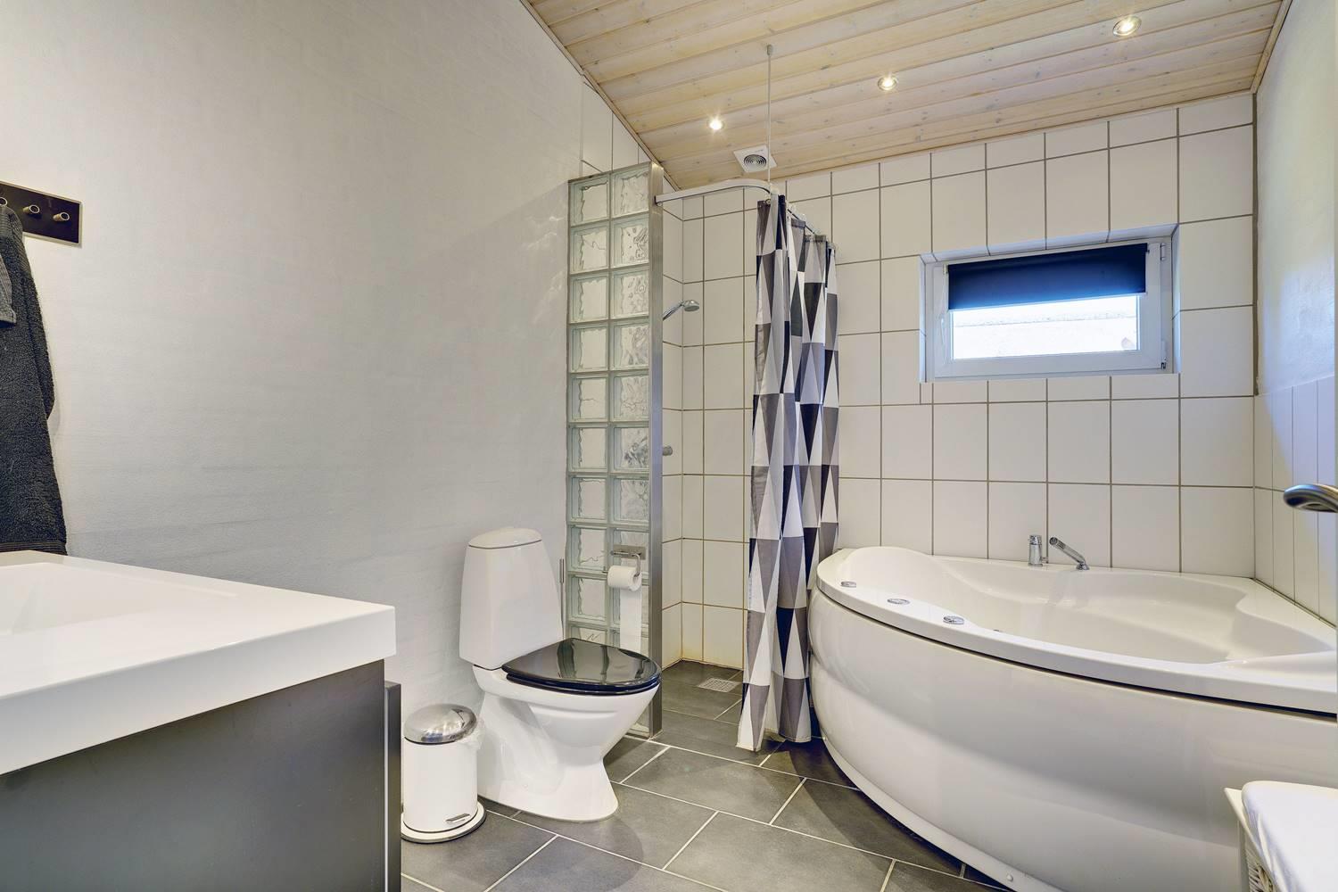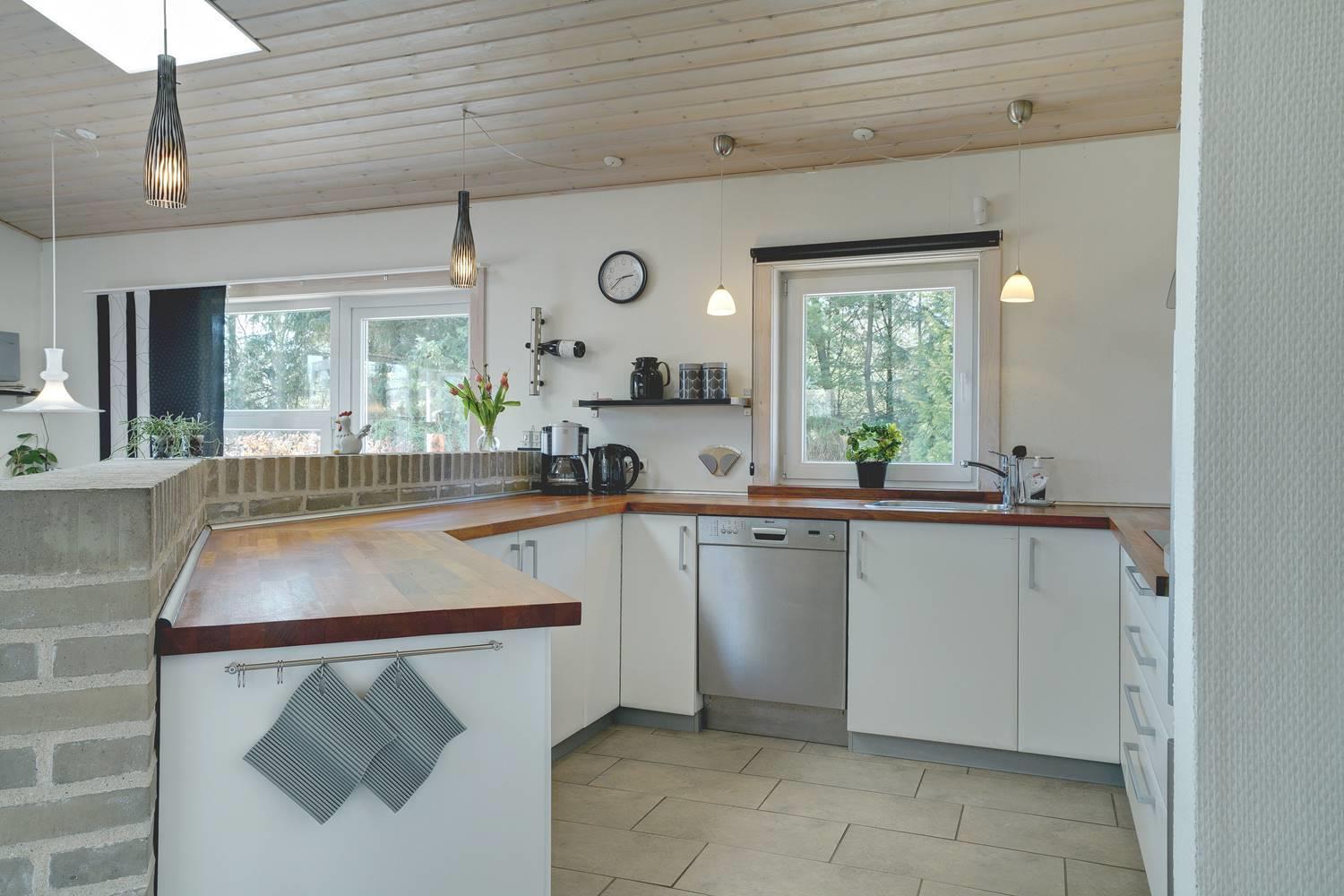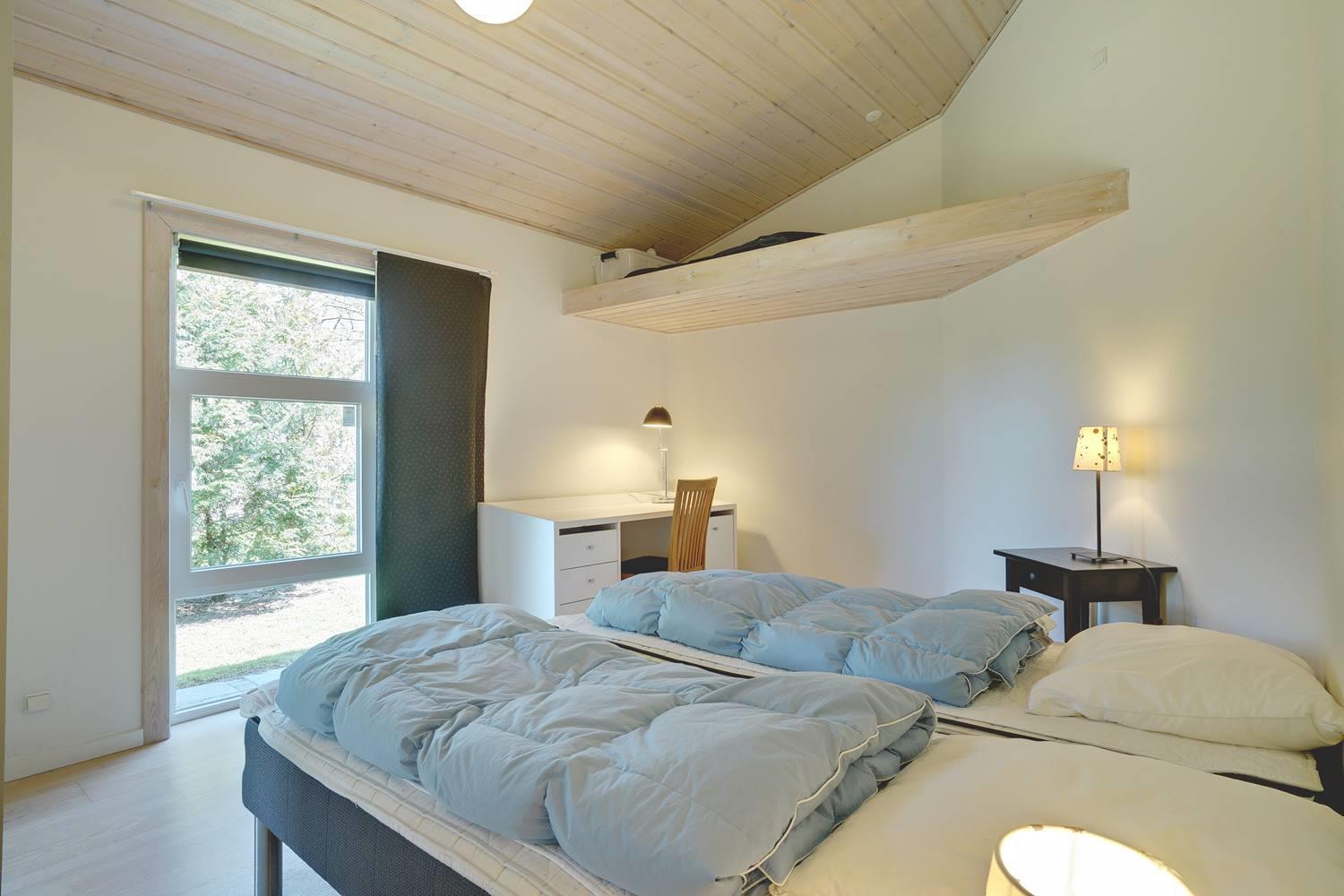 I får rig mulighed for at nyde hinandens selskab i husets lyse opholdsrum med integreret køkken, brændeovn og ovenlysvinduer, og når I trænger til en privat stund, kan I trække jer tilbage til de fire soveværelser, som alle er rummelige og udstyret med komfortable dobbeltsenge. Der er desuden sauna og to badeværelser i huset det ene med spa. Sommerhuset har varmepumpe, hvilket giver et meget lavt energiforbrug under opholdet. Der er gulvvarme i hele huset undtagen i soveværelserne.