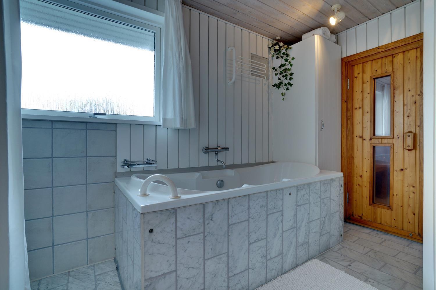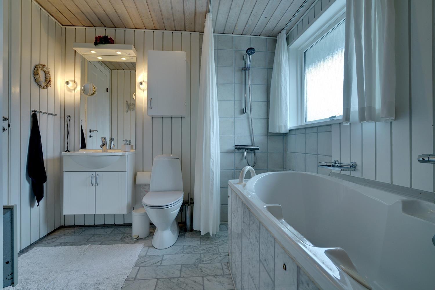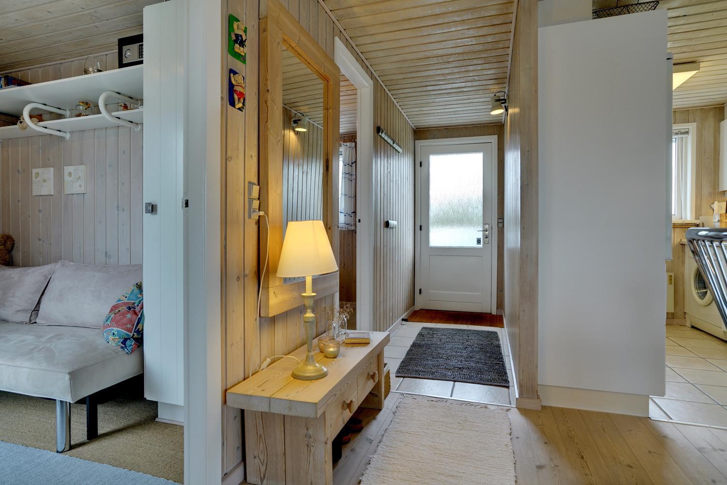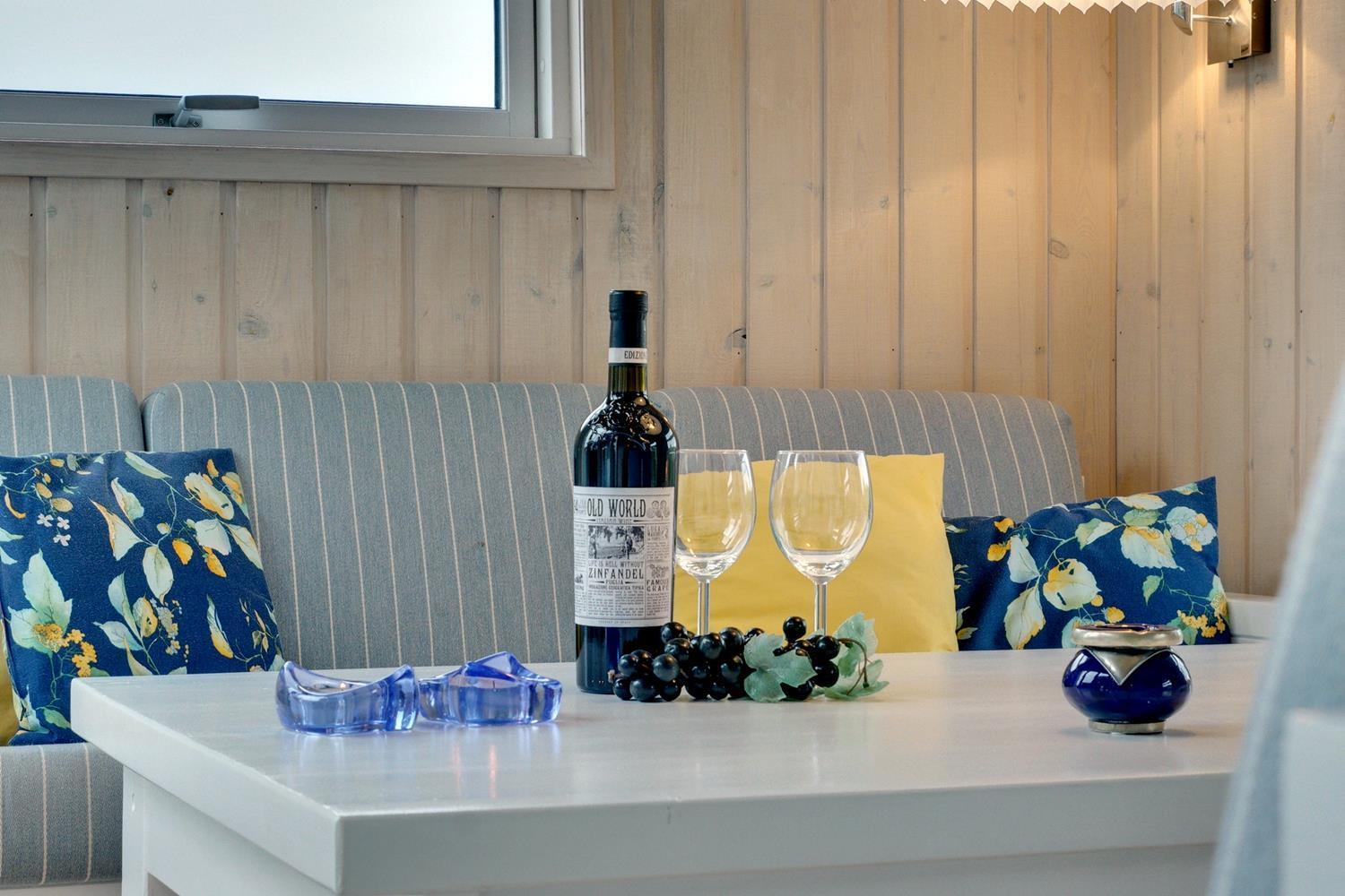 Huset er lyst og indbydende med et veludstyret køkken, der gør madlavningen til en fornøjelse. Den hyggelige og pænt møblerede stue skaber rammen om afslappende stunder, mens udestuen med direkte adgang til terrassen giver mulighed for at nyde naturen året rundt. Badeværelset er udstyret med en 1-personers spa og sauna – perfekt til at forkæle dig selv efter en dag med aktiviteter.