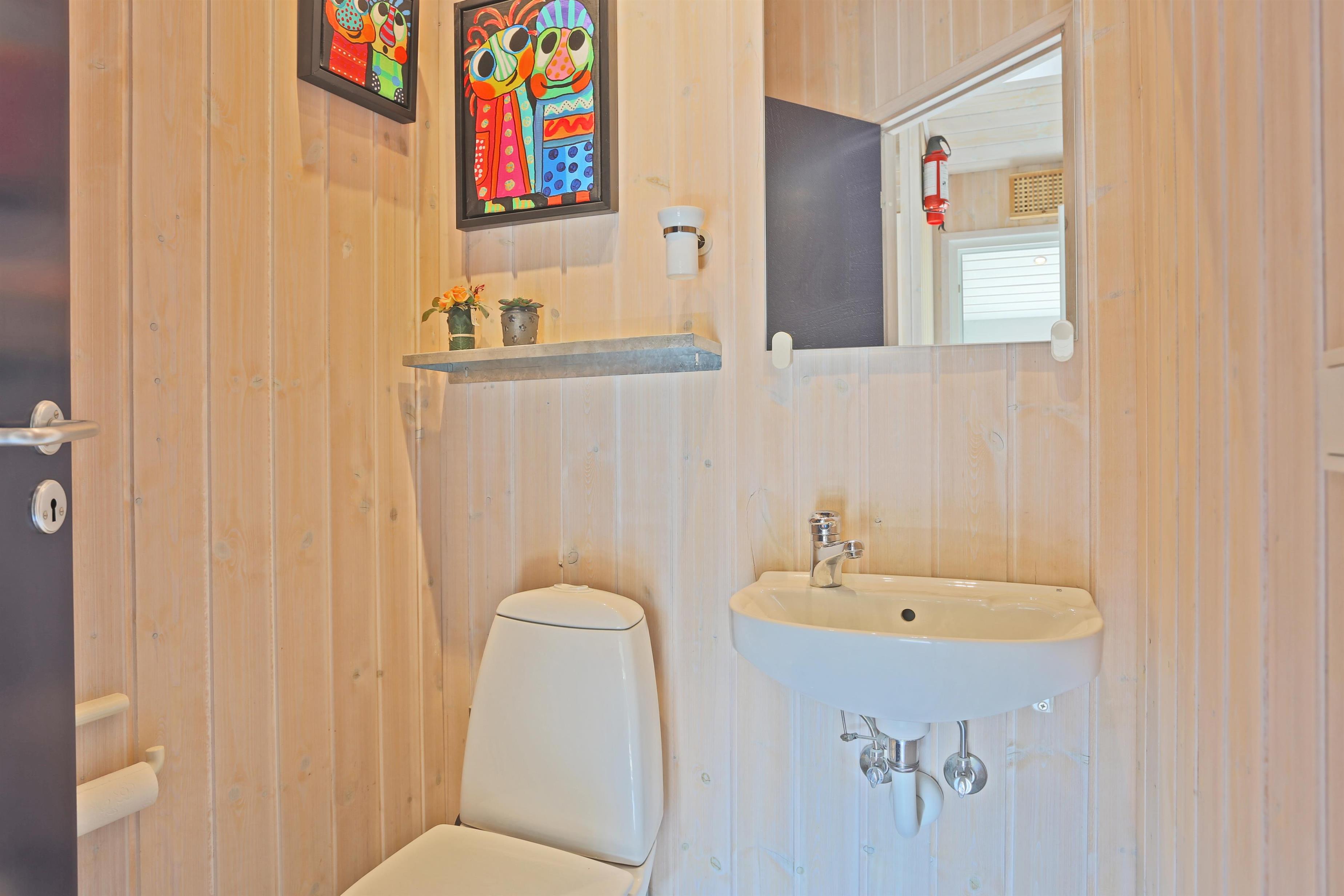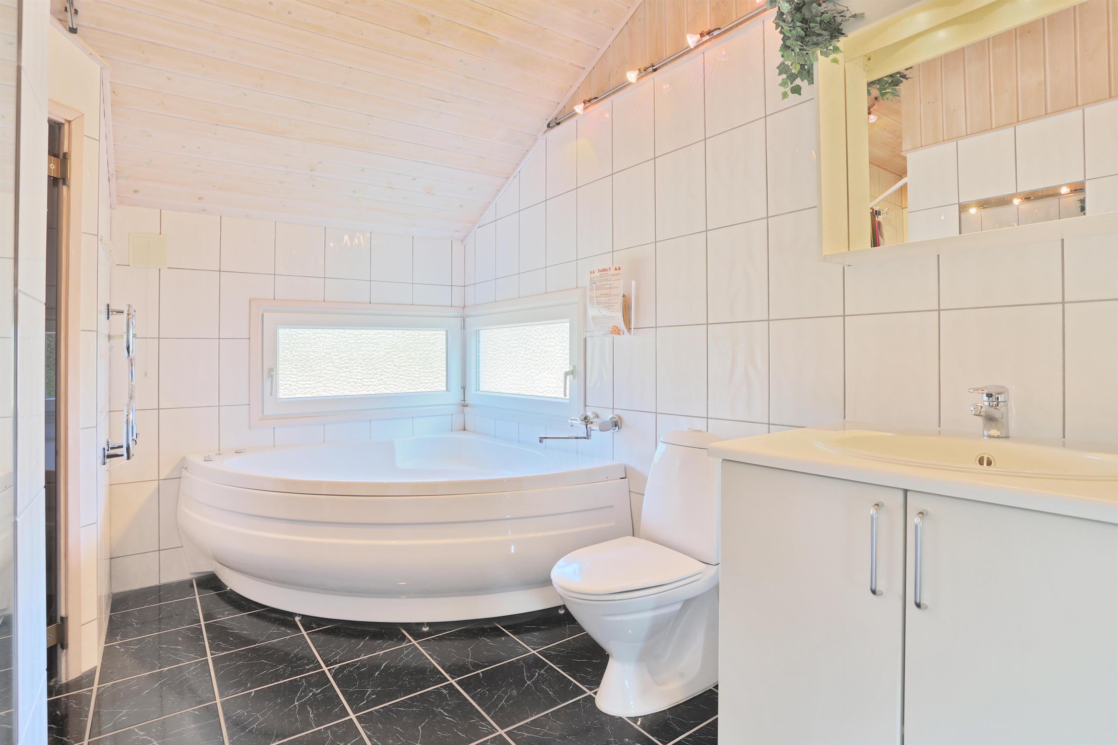 2 toiletter hvoraf det ene er et stort badeværelse, med sauna, spa.Der er selvfølgelig gulvarme i badeværelserne.