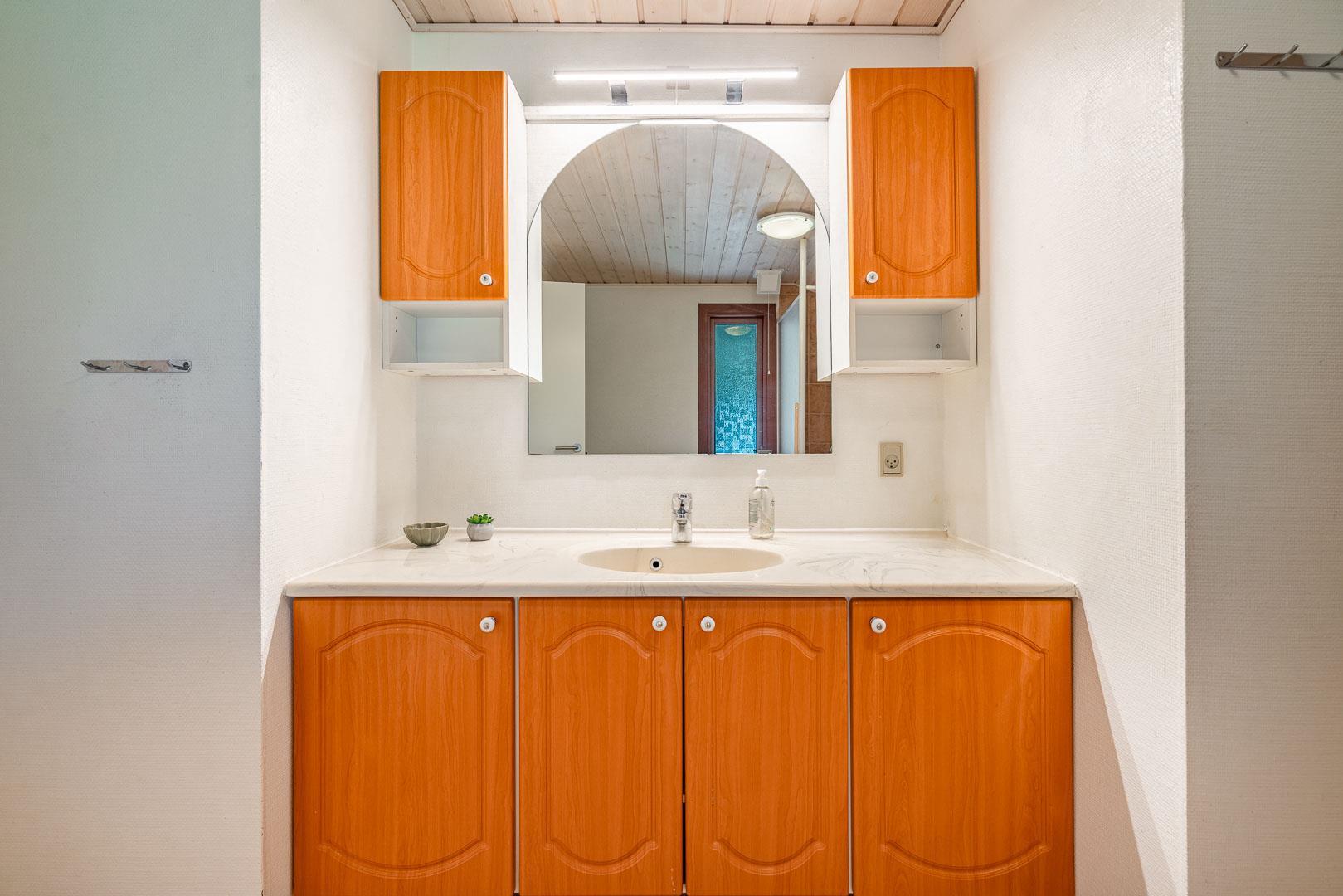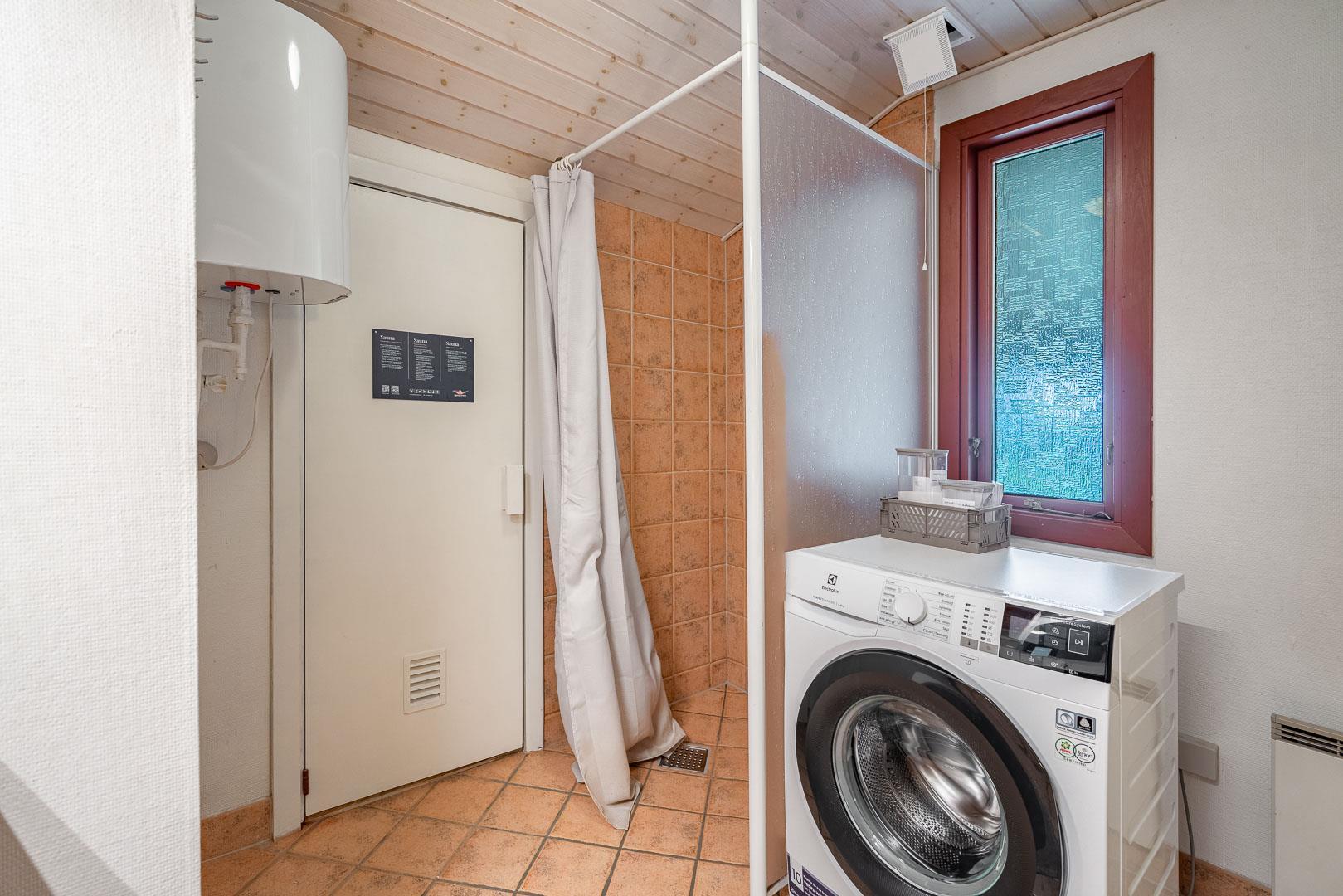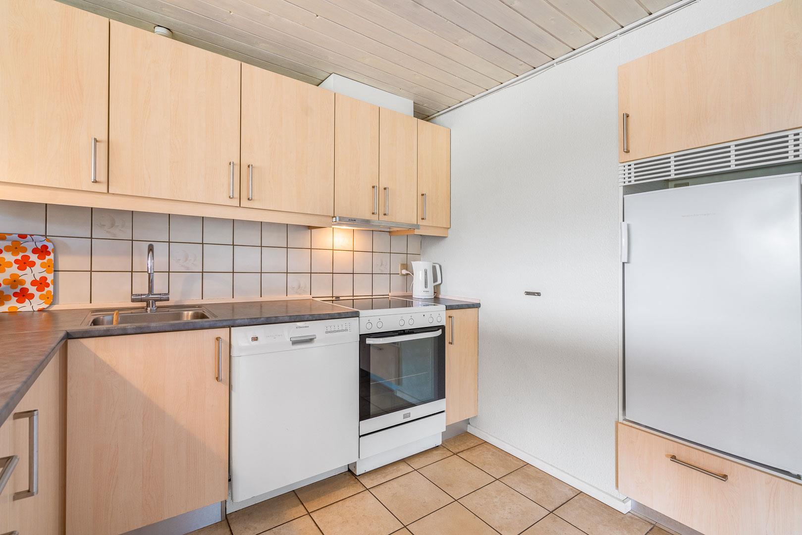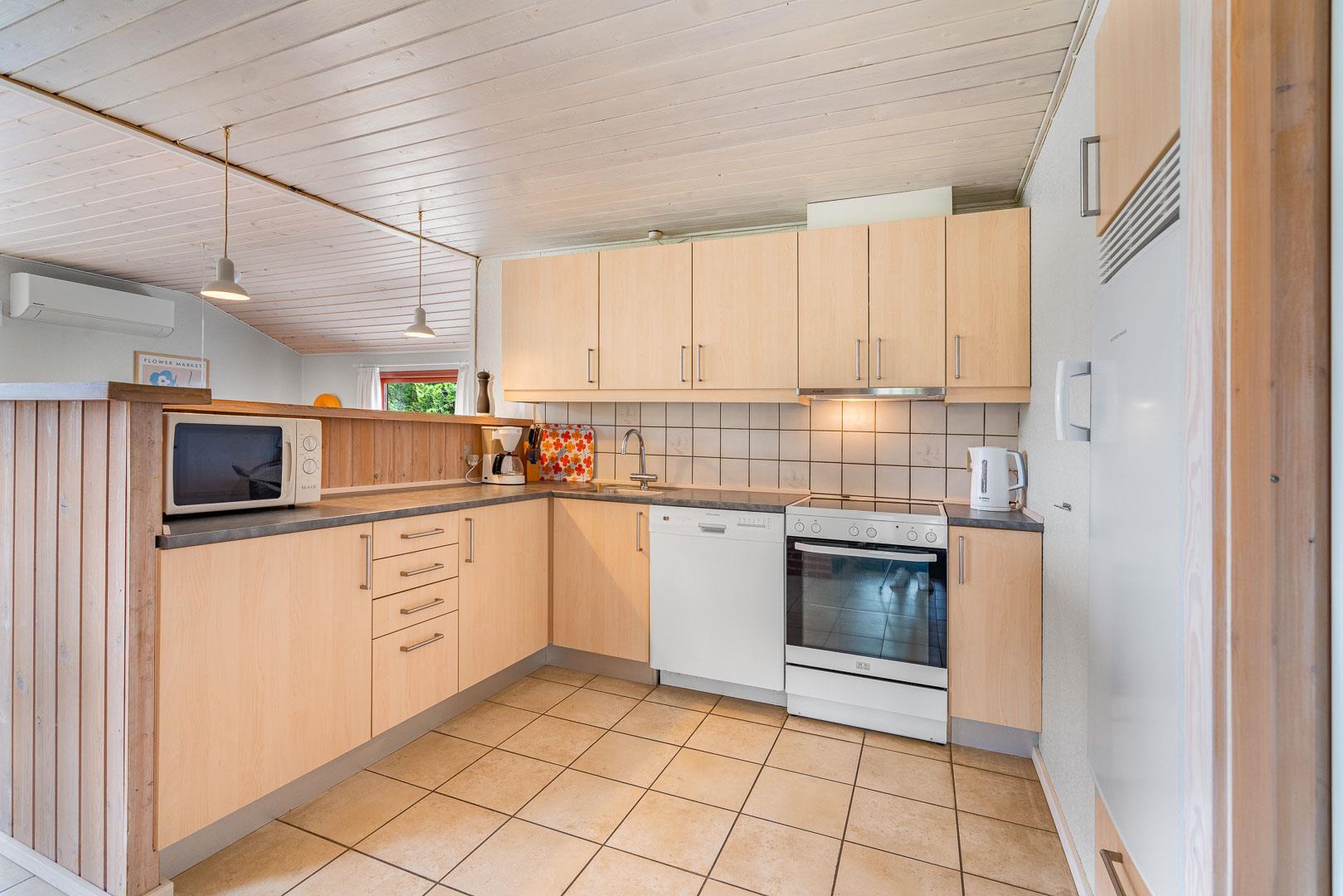 Huset byder på tre lyse og rummelige soveværelser med dobbeltsenge, et veludstyret køkken med alt nødvendigt udstyr samt et badeværelse med sauna – ideelt til afslapning efter en dag i naturen. Der er også et gæstetoilet.