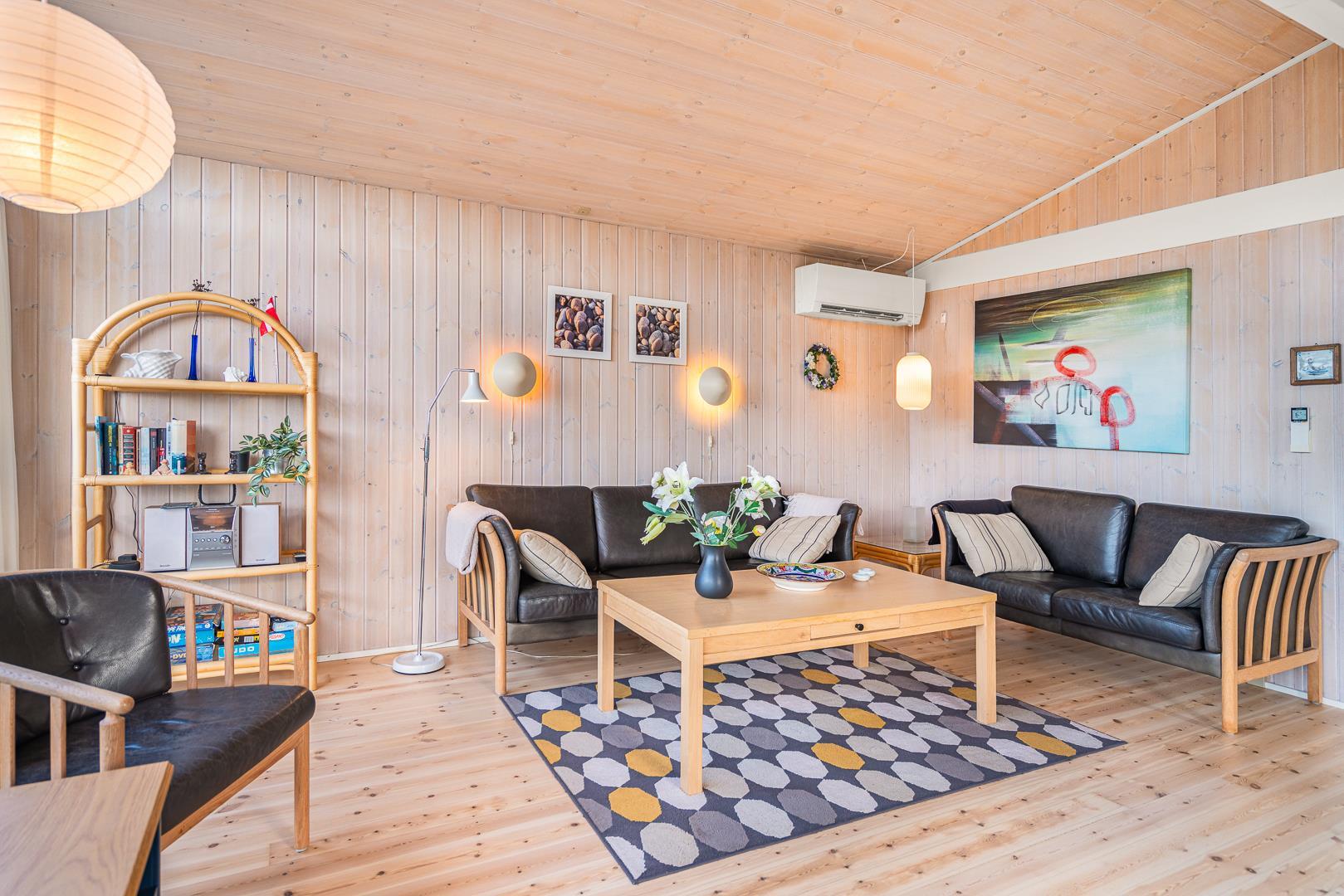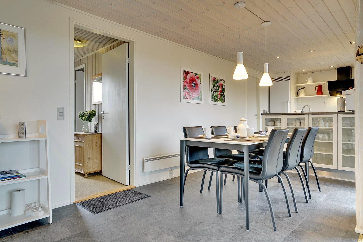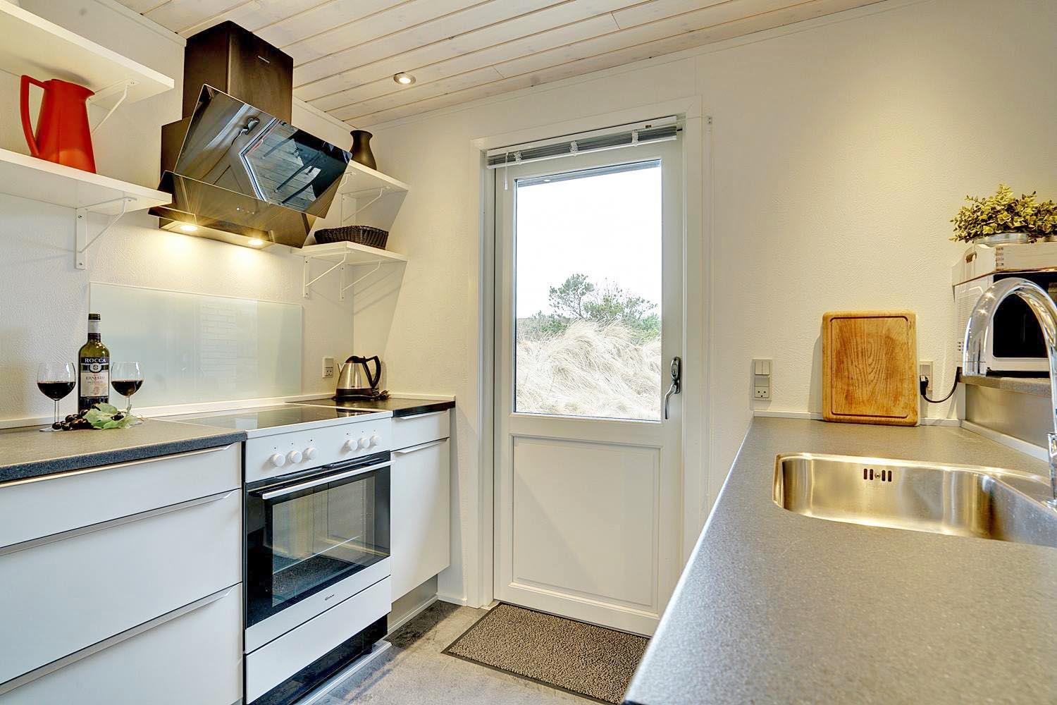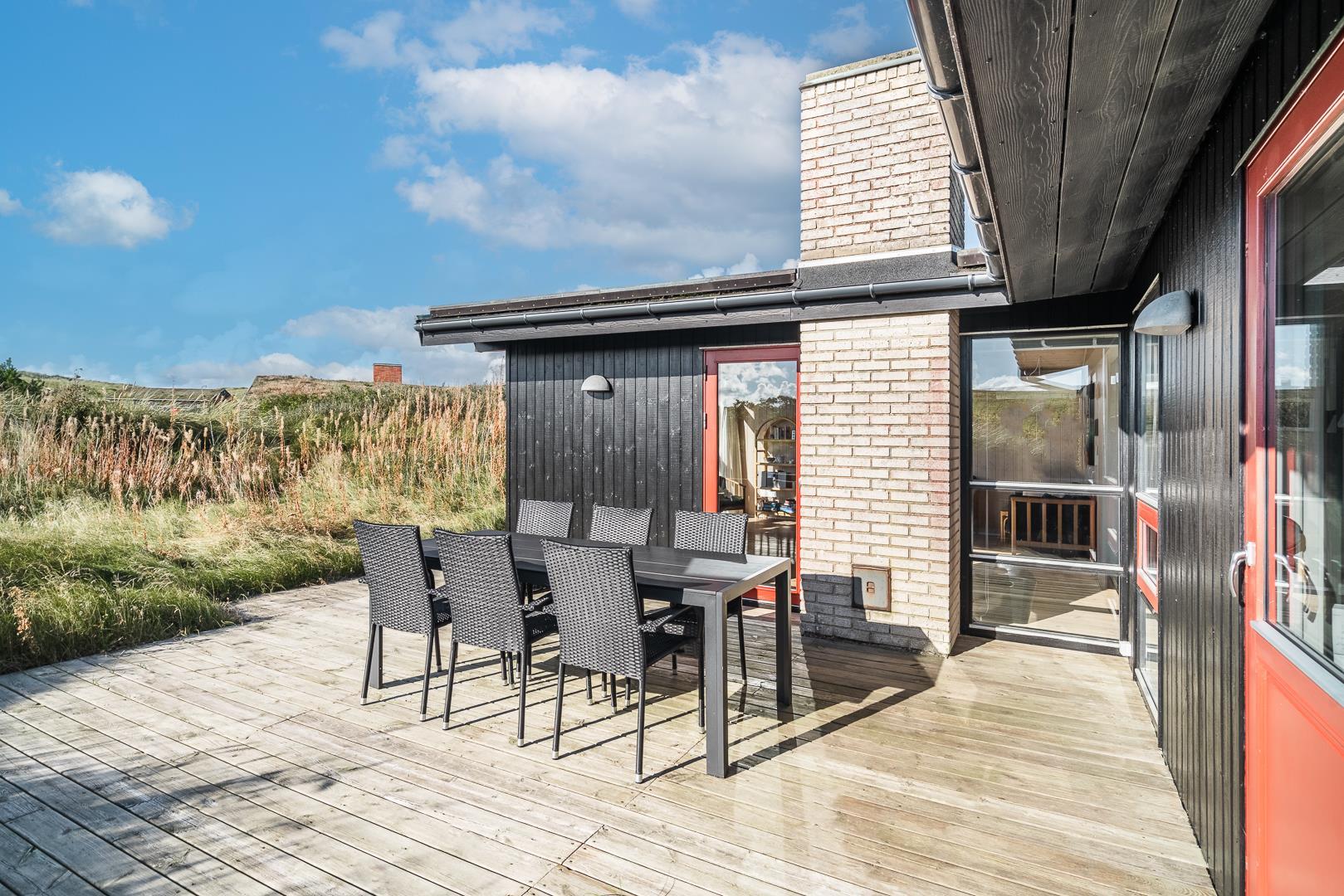 På en skøn og ugeneret klitgrund ligger dette dejlige feriehus. Rummelig stue med trægulv og stort vinduesparti som giver et godt lysindfald i huset. Fra stuen eller den ugenerede terrasse kan den skønne udsigt over klitterne nydes. Der er godt køkken som ligger i åben forbindelse med stuen.