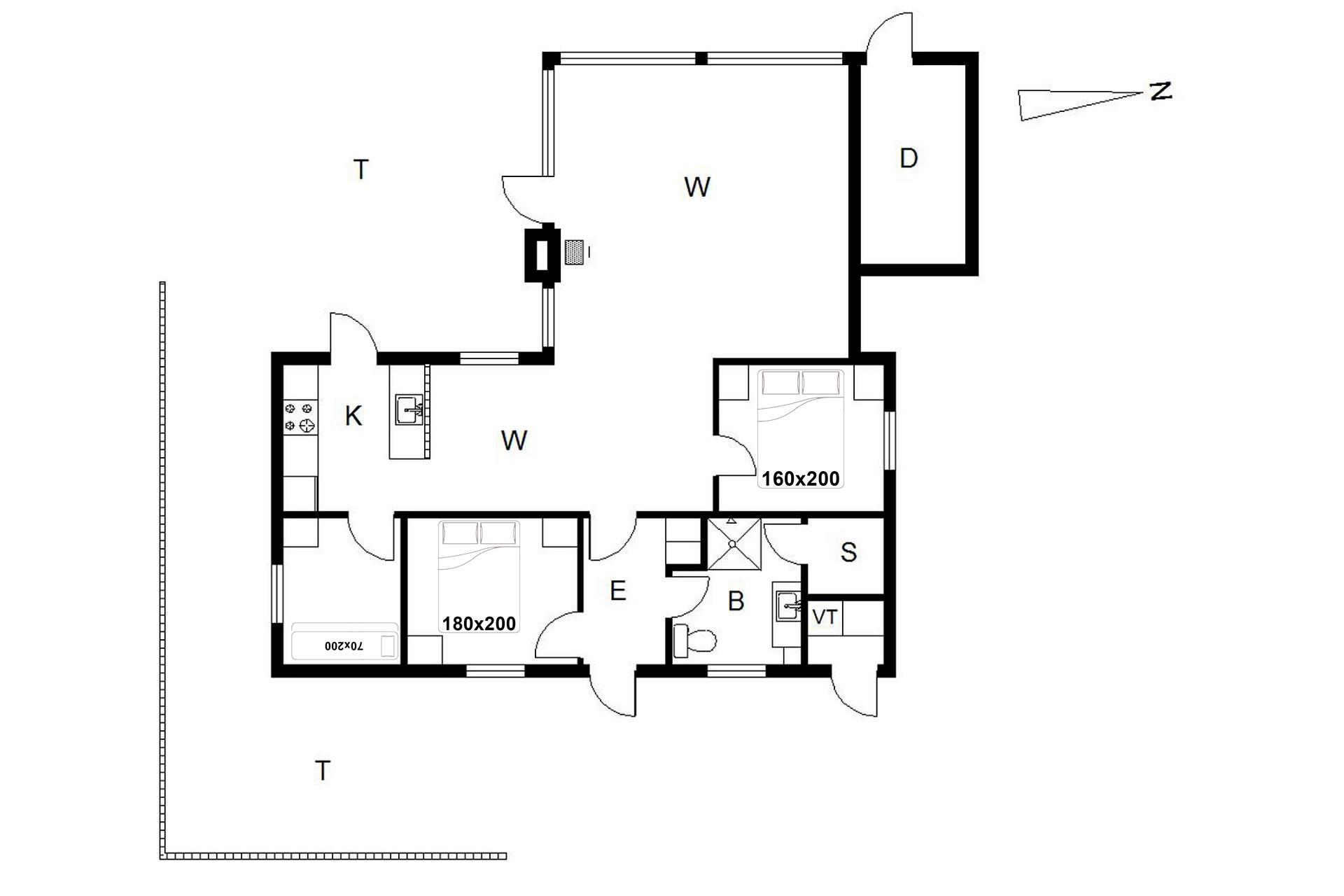 Sengestørrelser: 1 dobbeltseng 180 x 200 cm + 1 dobbeltseng 160 x 200 cm + 1 køjeseng 70 x 200 cm.