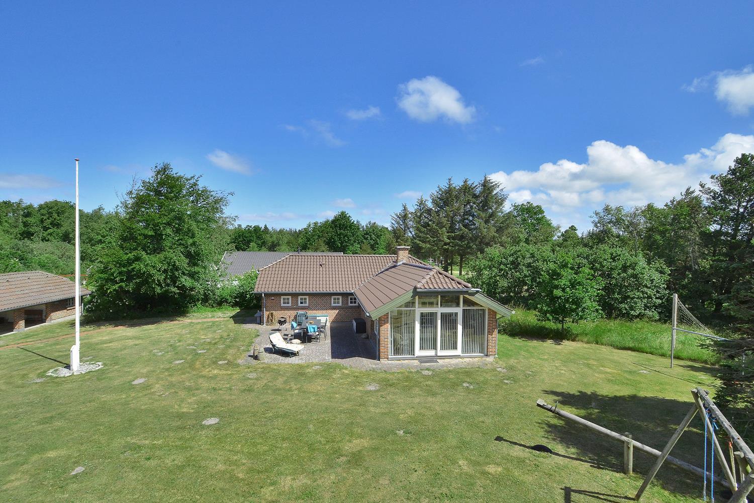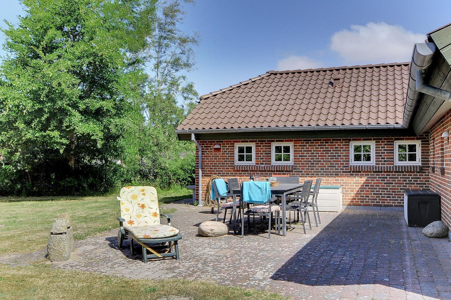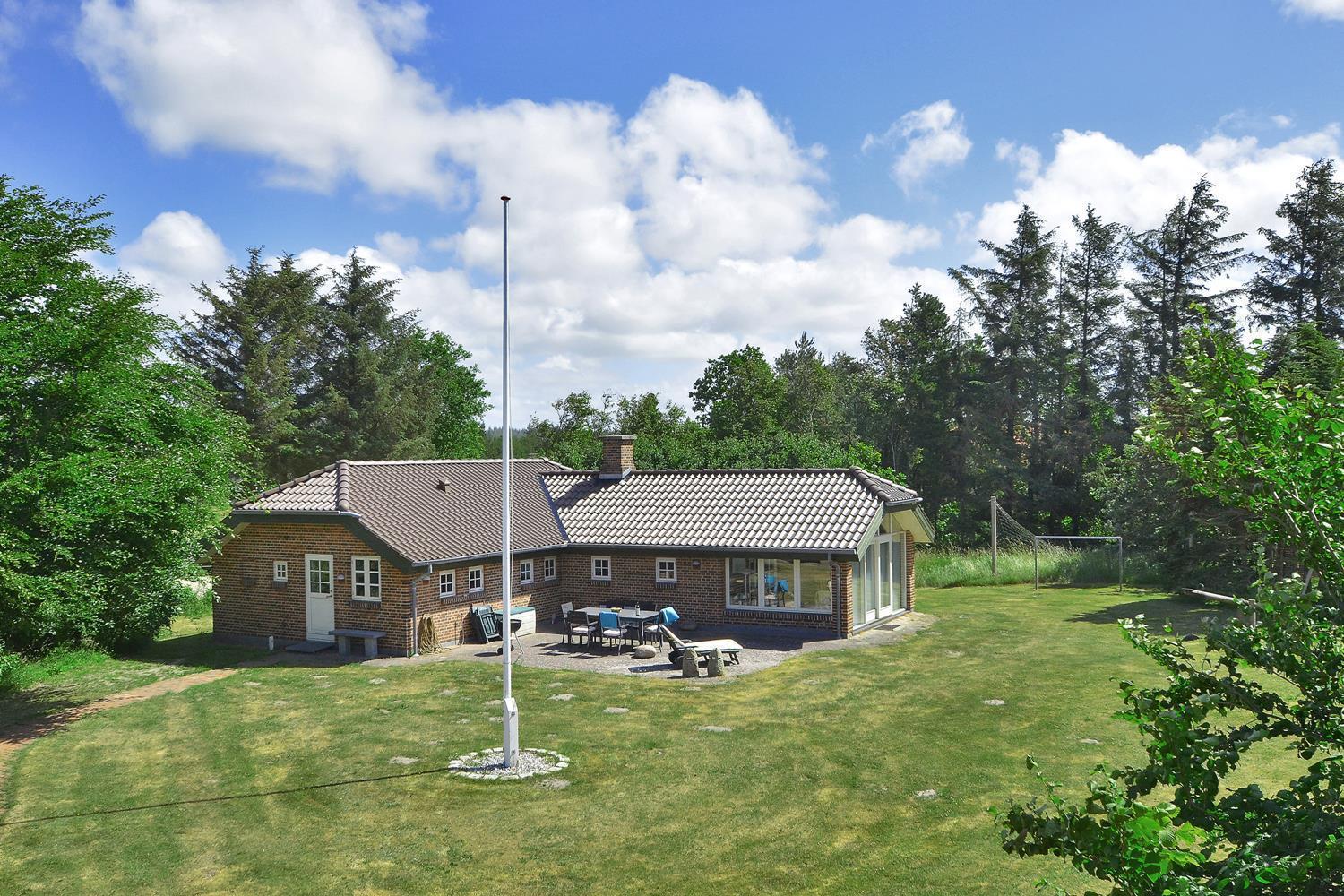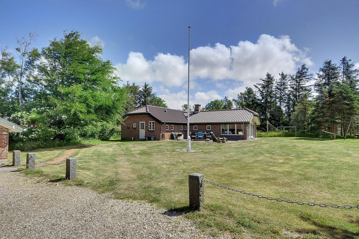 Grunden er omkranset af høje træer, hvilket giver en rolig og ugenert atmosfære. Her kan I nyde jeres ferie i fredelige omgivelser – hvad enten det er morgenmad på terrassen, solbadning eller leg med hunden.