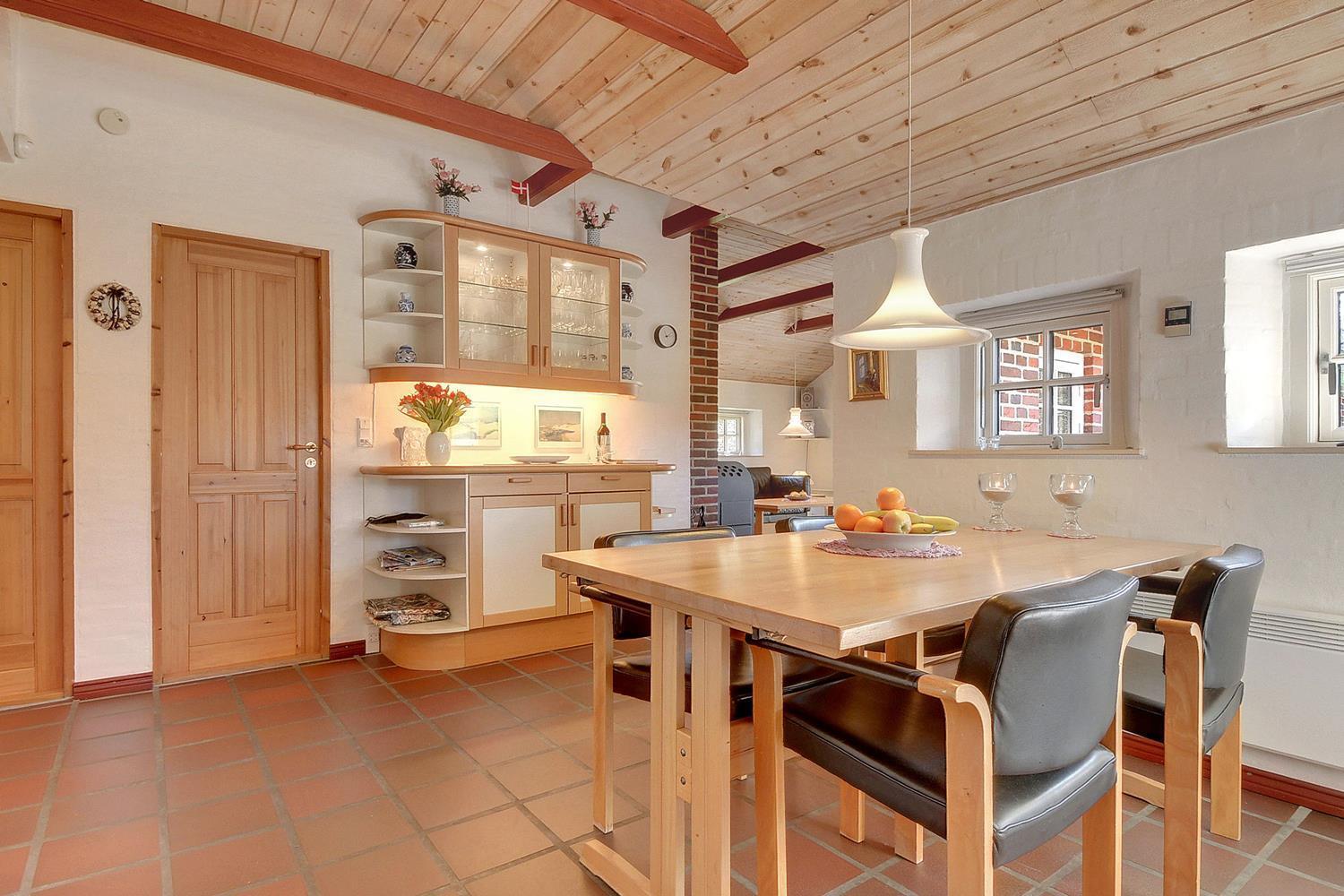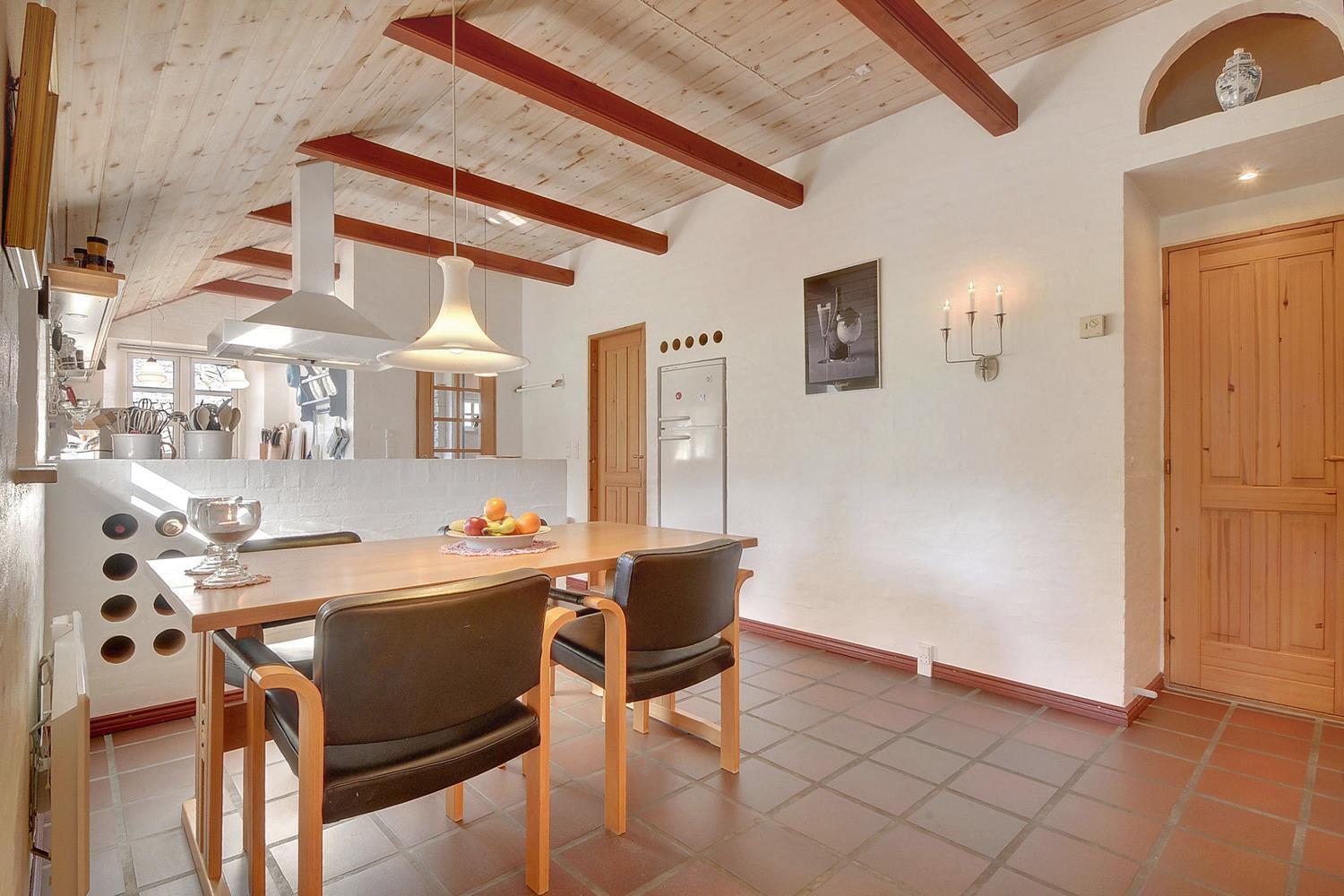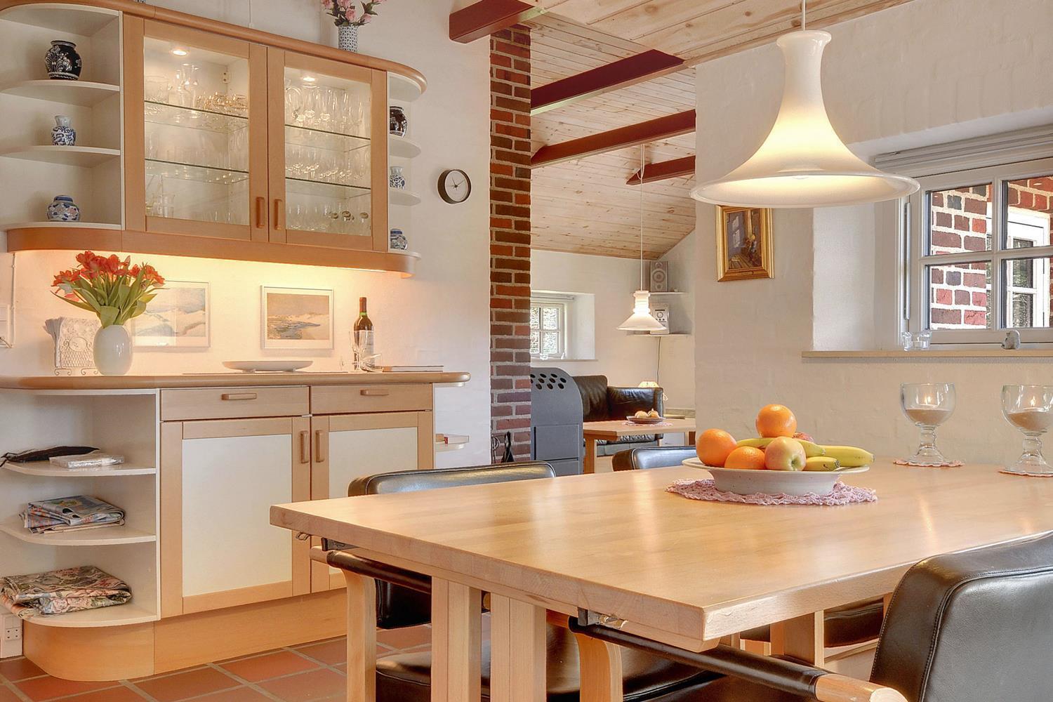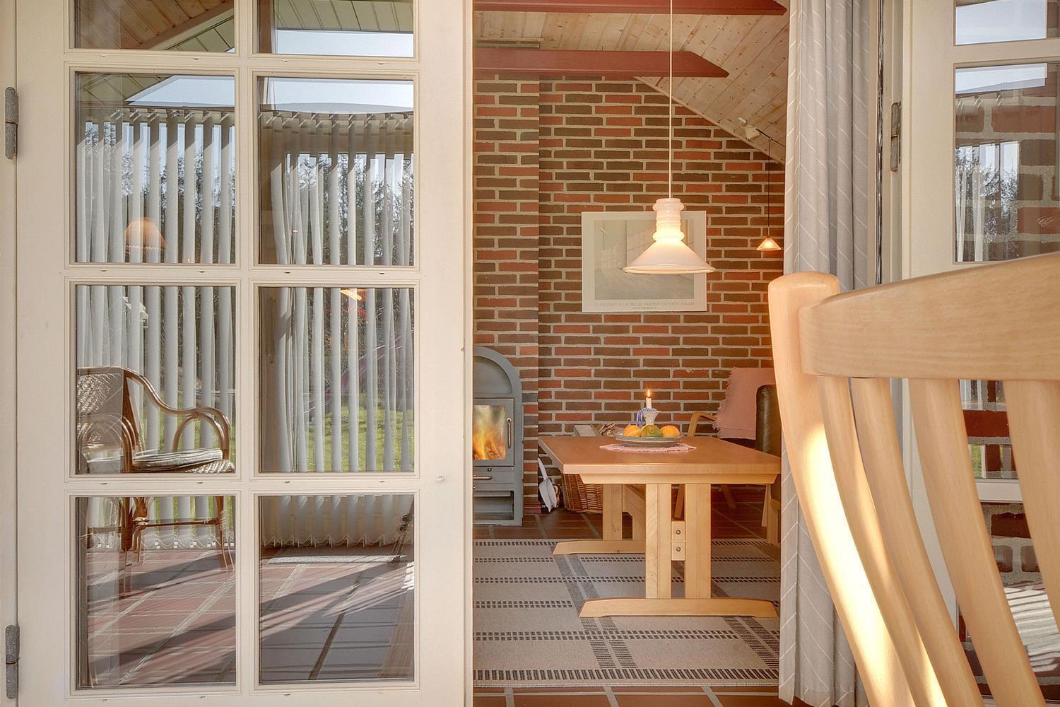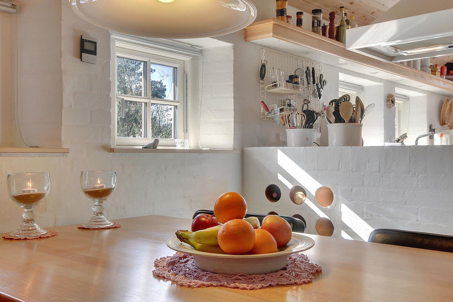 Stuen er lys og venlig med åben forbindelse til køkkenet. Her kan I samles efter en aktiv dag, tænde op i brændeovnen og nyde den rolige atmosfære. En moderne varmepumpe sørger for et behageligt indeklima året rundt.
