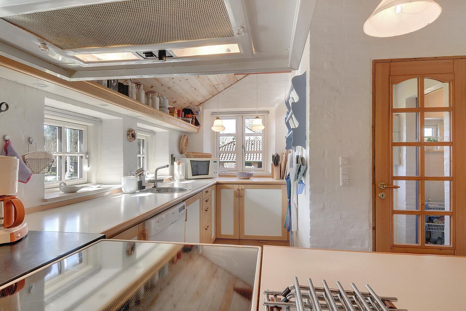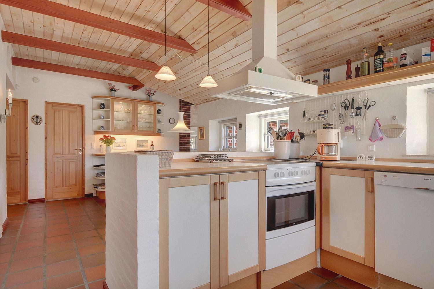 Køkkenet er veludstyret med induktionskogeplade, opvaskemaskine og gulvvarme – alt hvad I behøver til nem madlavning og hyggeligt samvær.