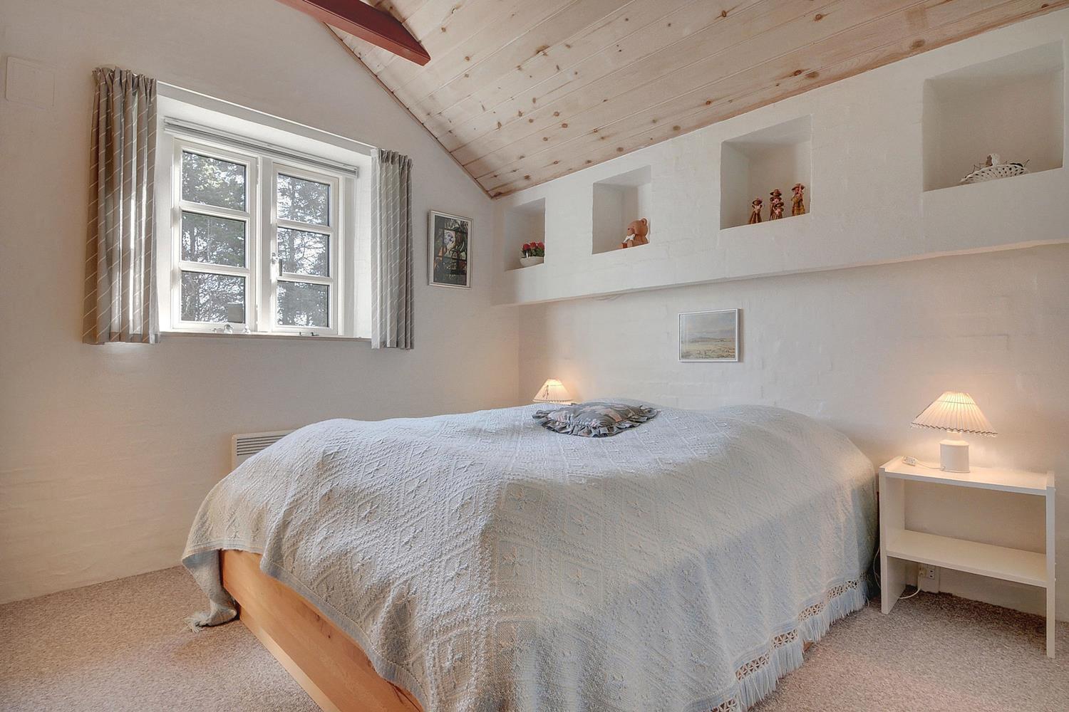 Sommerhuset har tre soveværelser: to med dobbeltsenge og ét med en enkeltseng. Indretningen er enkel og hyggelig, så I kan se frem til rolige nætter og god søvn.