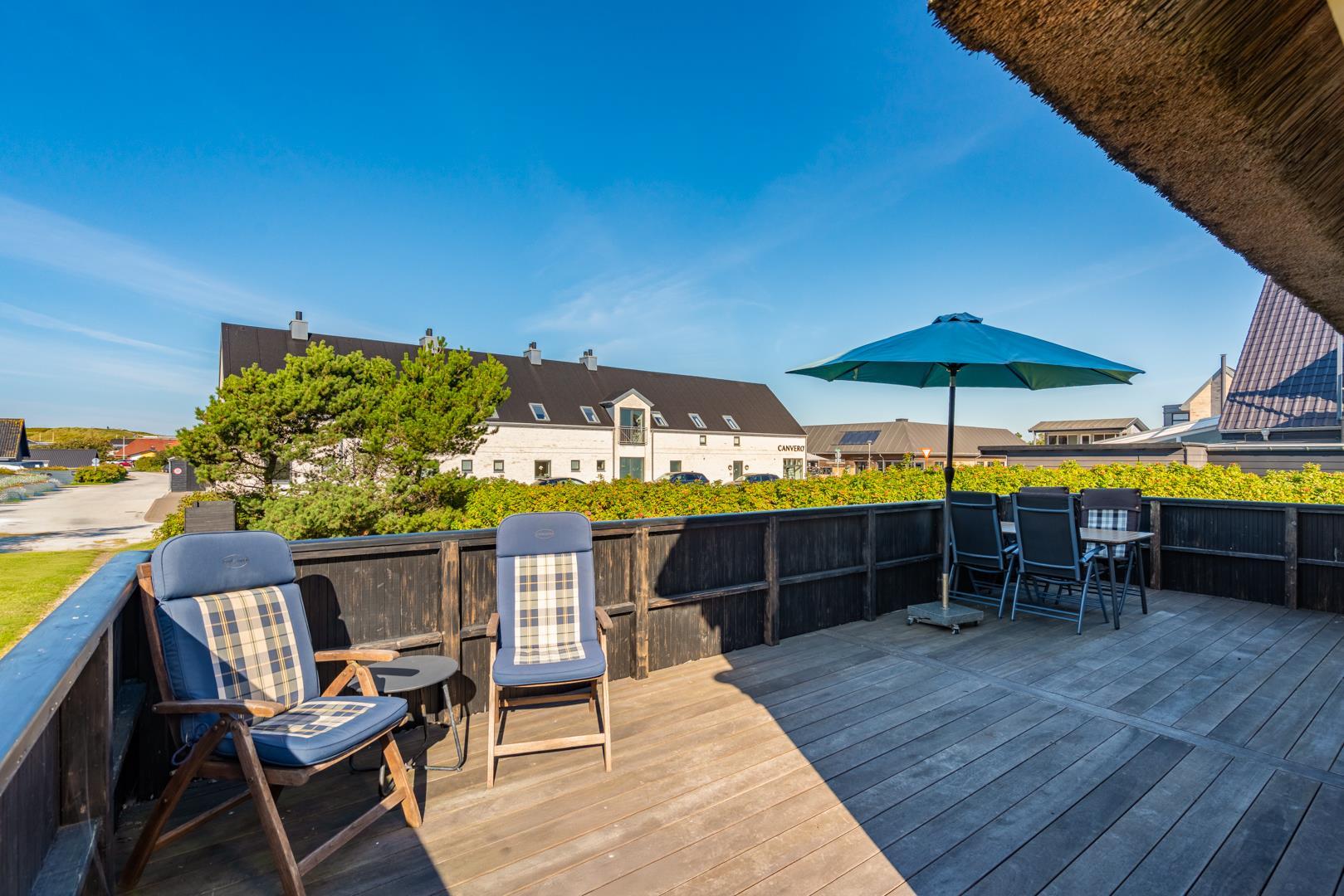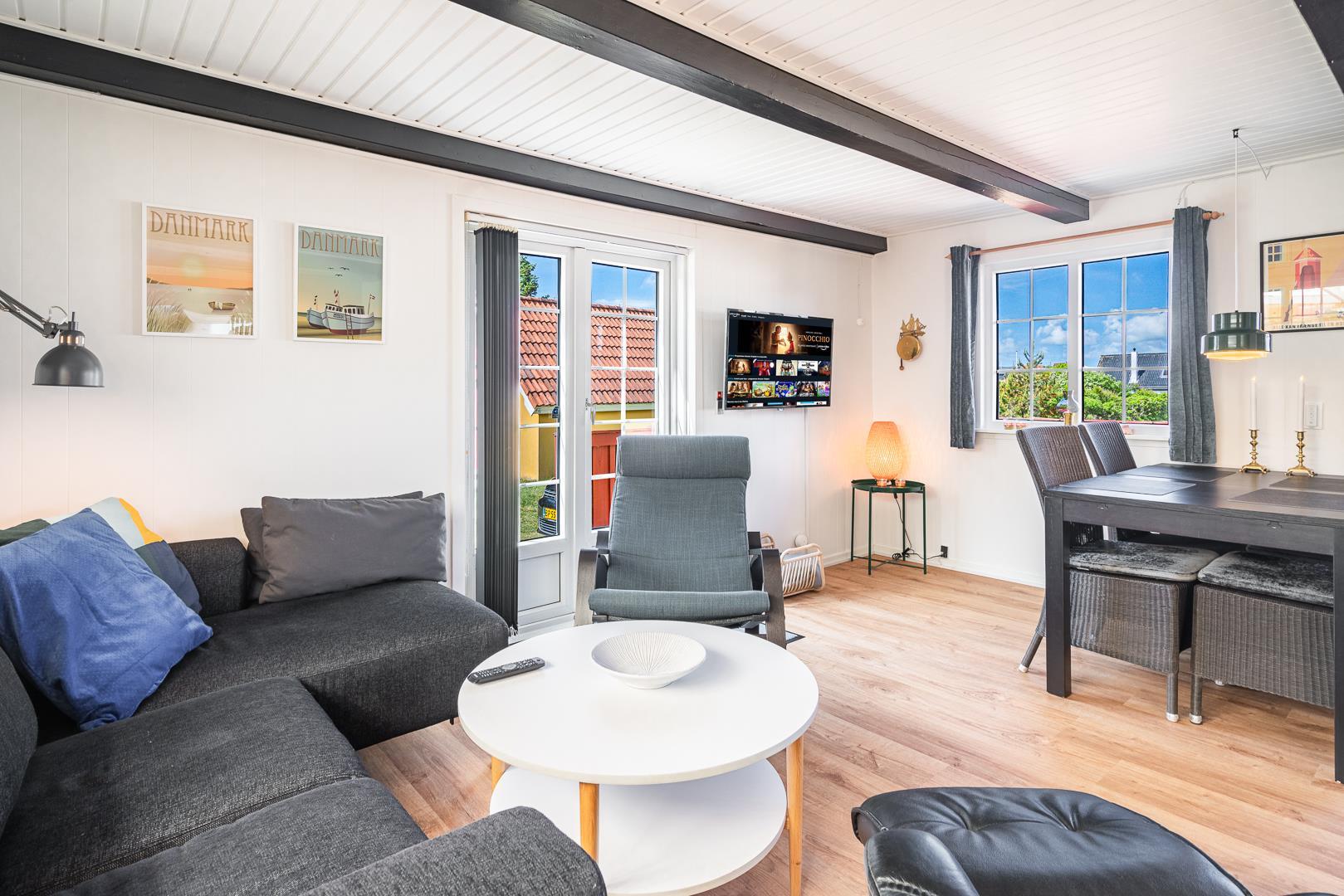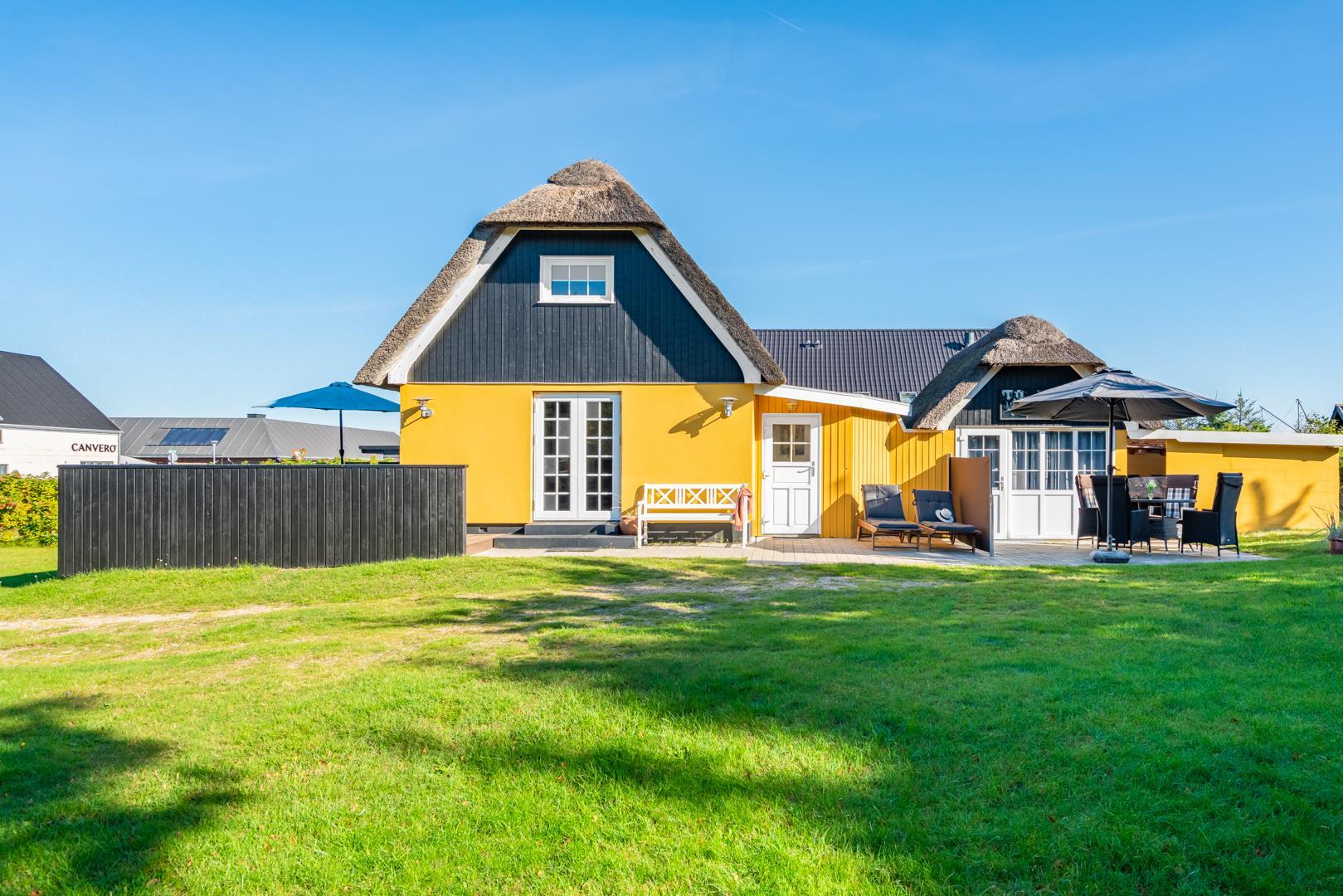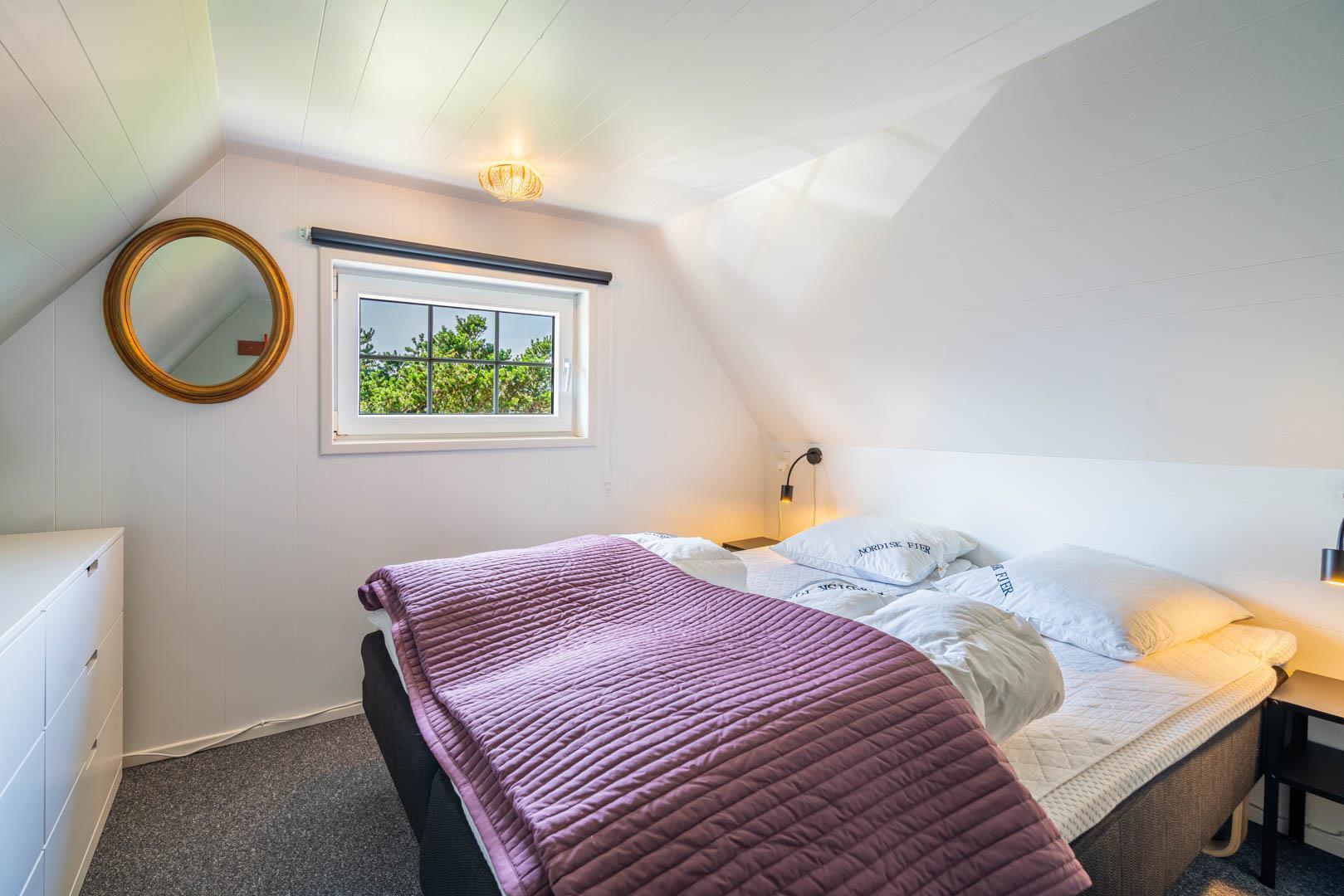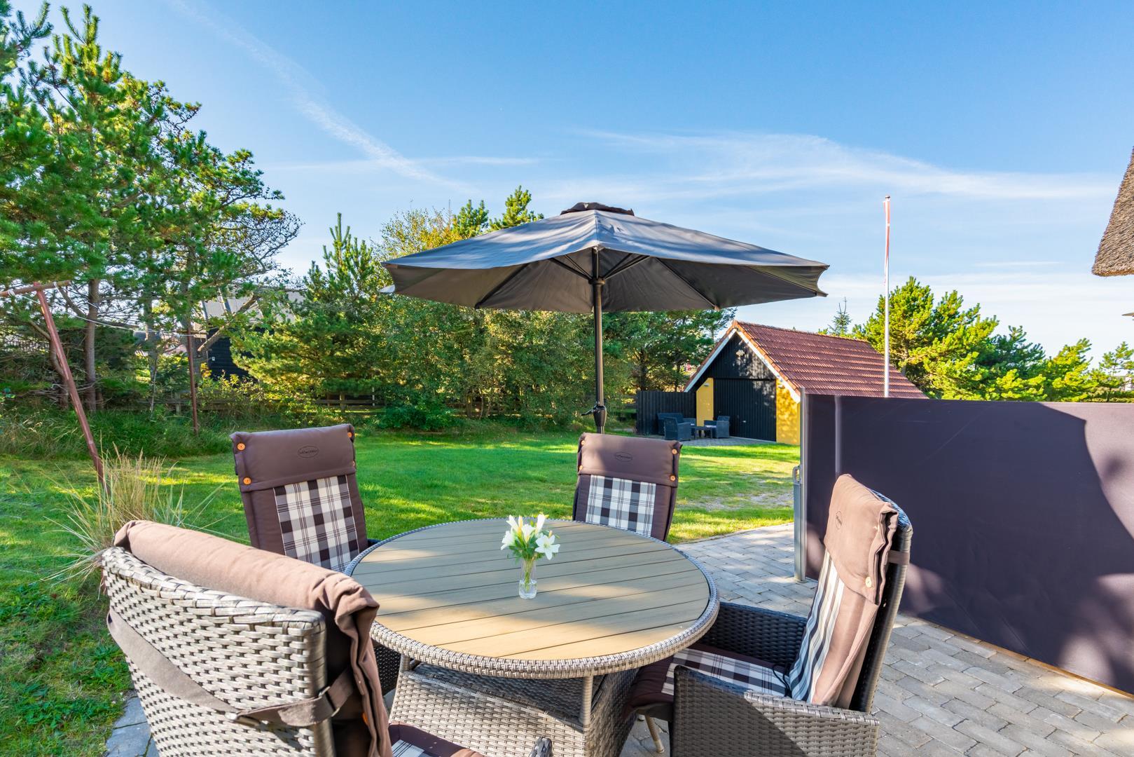 Ældre, men hyggeligt og velholdt feriehus beliggende på en stor naturgrund et minuts gang fra Henne Strands butikker og caféer. Huset er pænt indrettet med gode møbler, entre/udestue med god plads til sko og overtøj og her er der også en lille spiseplads. Der nyt dejligt køkken med induktionsplader og indbygningsovn. På 1 sal finder man husets 2 soverum med dobbeltsenge - trappen er stejl op til 1 salen. Der er flere gode terrasser ved huset og på grunden er der god plads til leg og spil. Et dejligt sommerhus til et par eller den lille familie, det er også tilladt at tage hunden med.