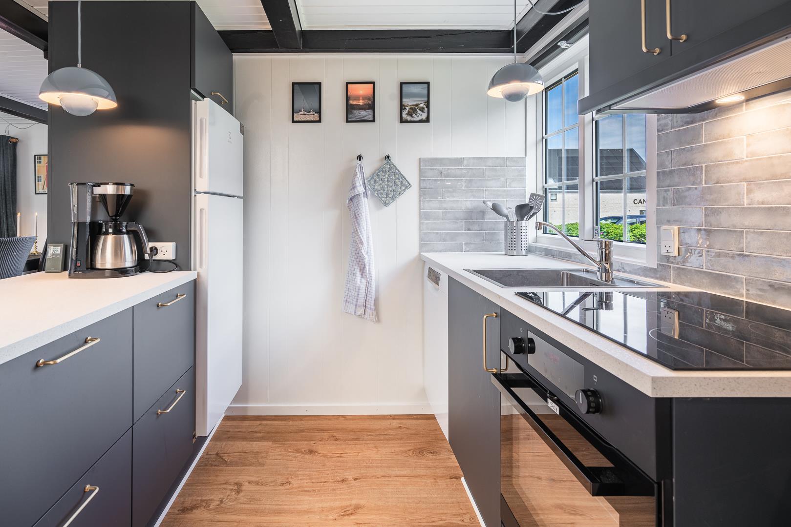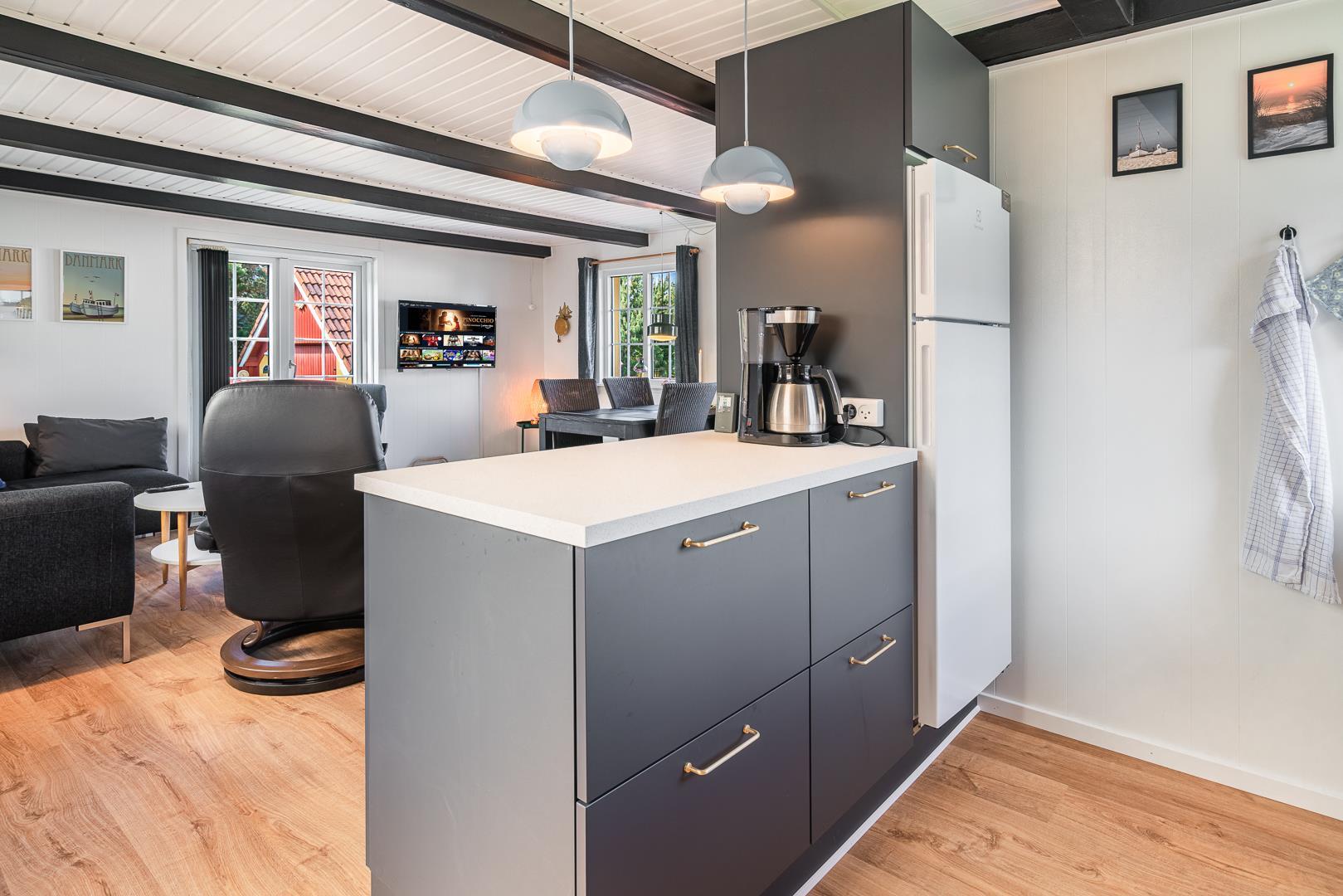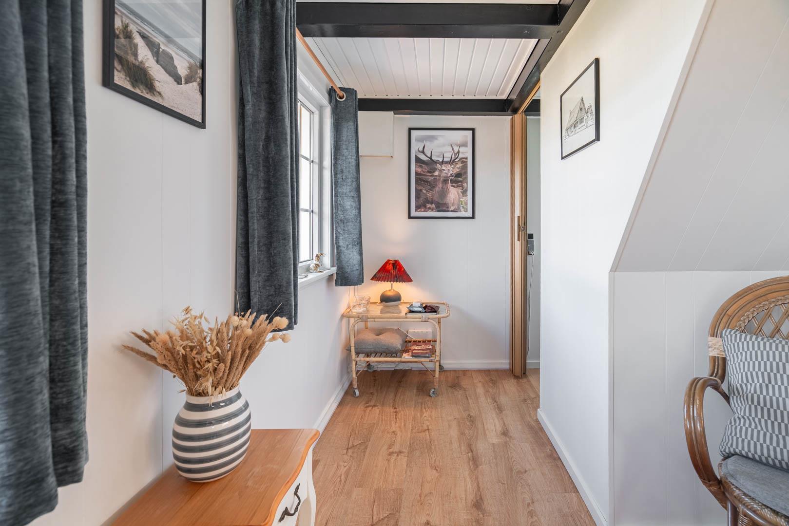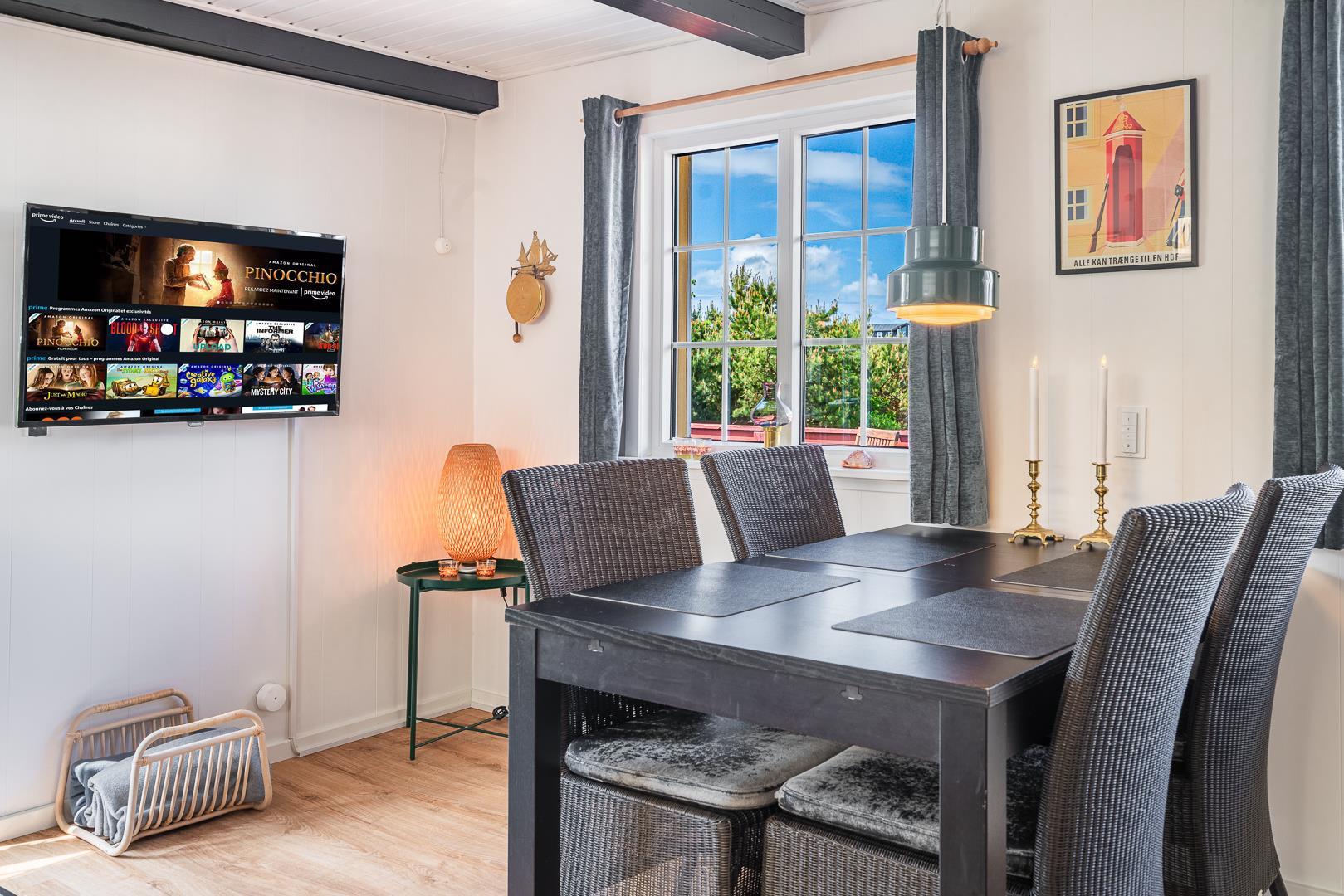 Ældre, men hyggeligt og velholdt feriehus beliggende på en stor naturgrund et minuts gang fra Henne Strands butikker og caféer. Huset er pænt indrettet med gode møbler, entre/udestue med god plads til sko og overtøj og her er der også en lille spiseplads. Der nyt dejligt køkken med induktionsplader og indbygningsovn. På 1 sal finder man husets 2 soverum med dobbeltsenge - trappen er stejl op til 1 salen. Der er flere gode terrasser ved huset og på grunden er der god plads til leg og spil. Et dejligt sommerhus til et par eller den lille familie, det er også tilladt at tage hunden med.