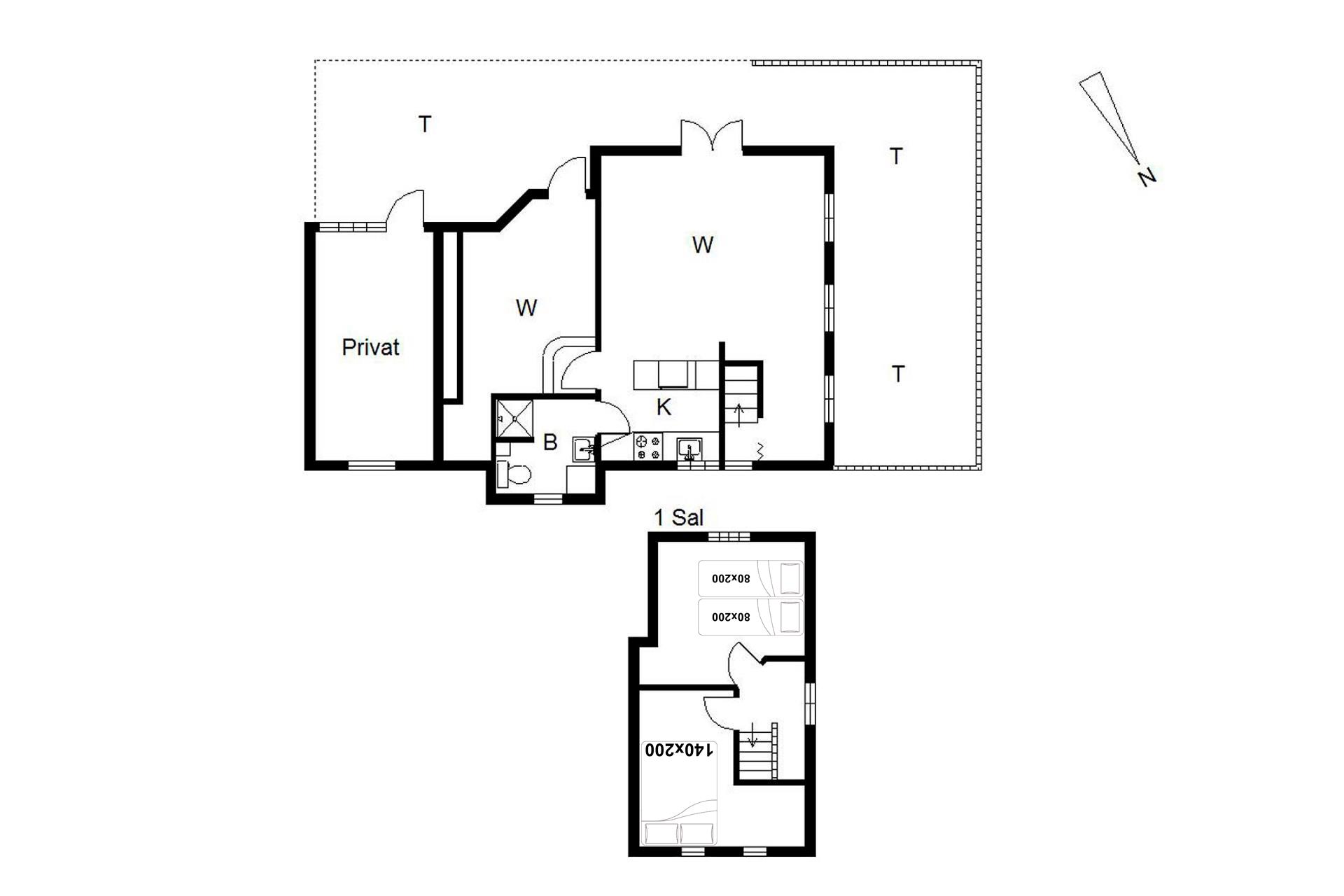 Sengestørrelse: 1 dobbeltseng med 2 madrasser 80 x 200 cm + 1 dobbeltseng 140 x 200 cm.
