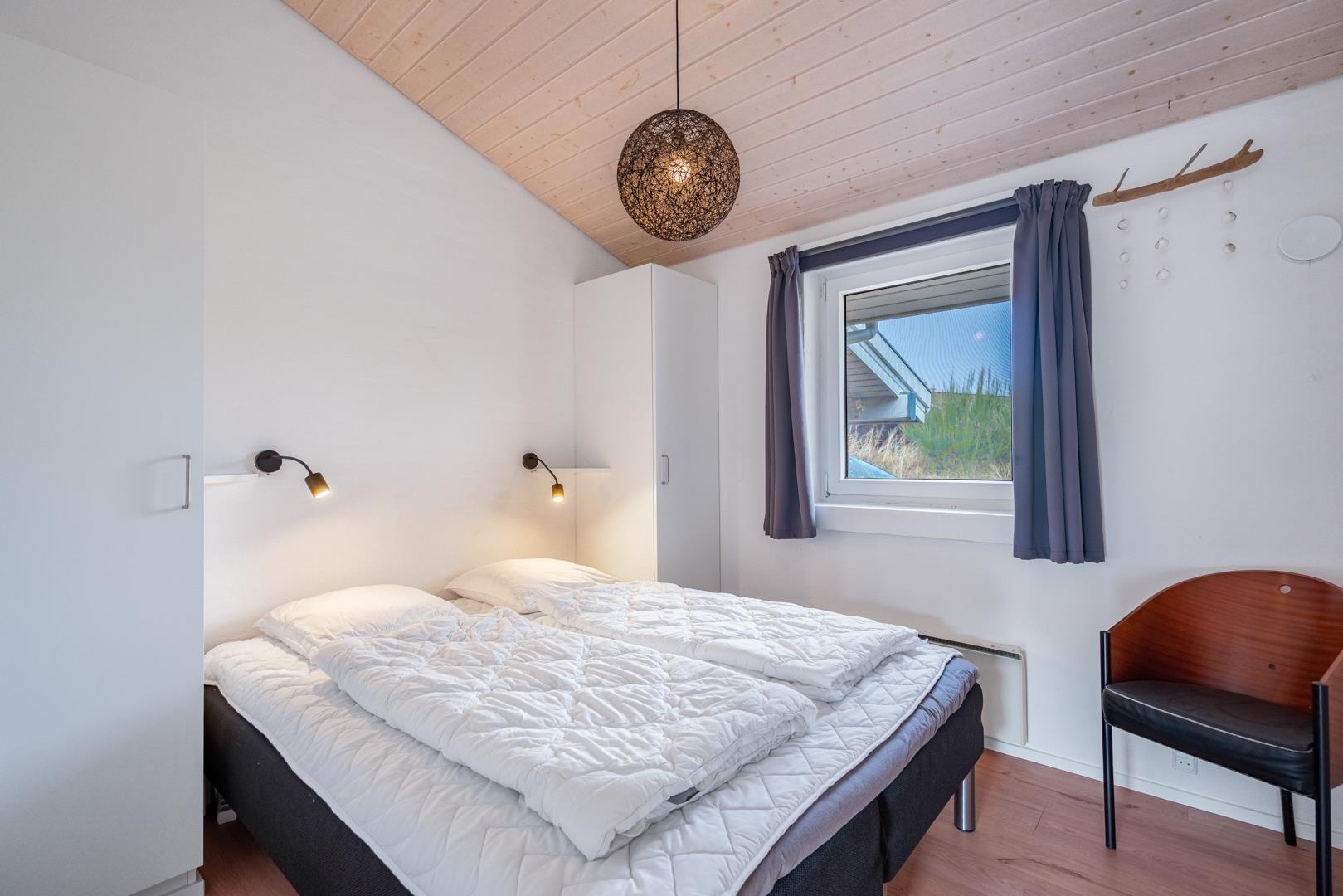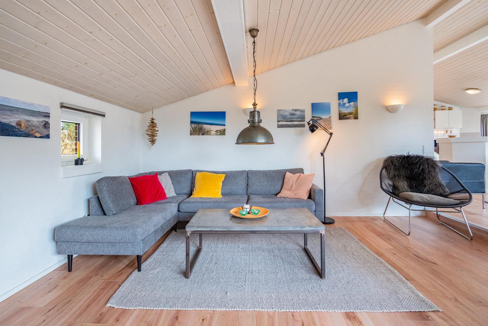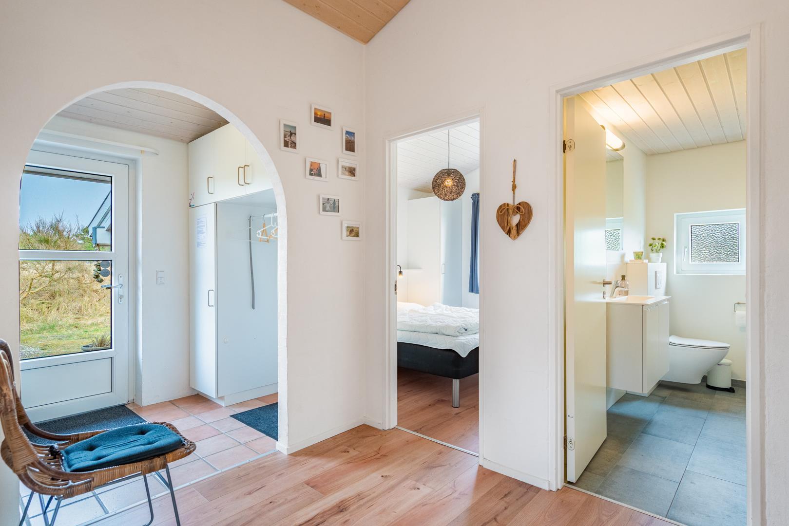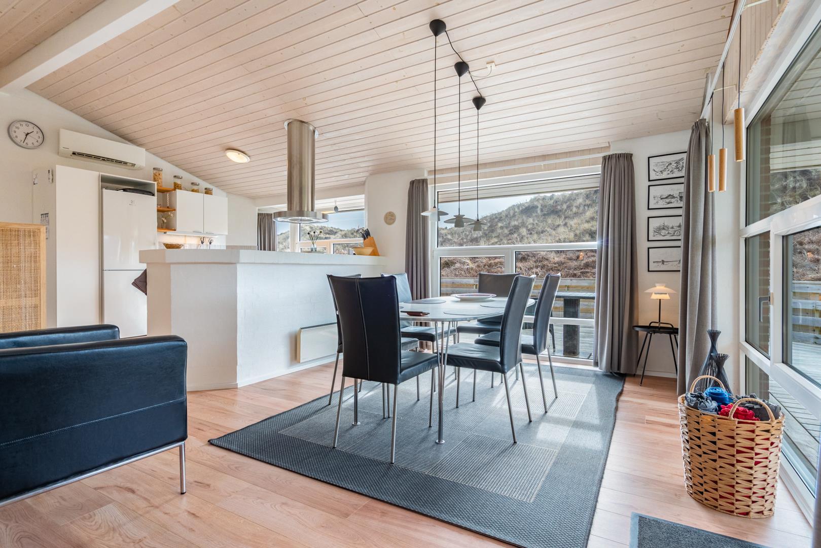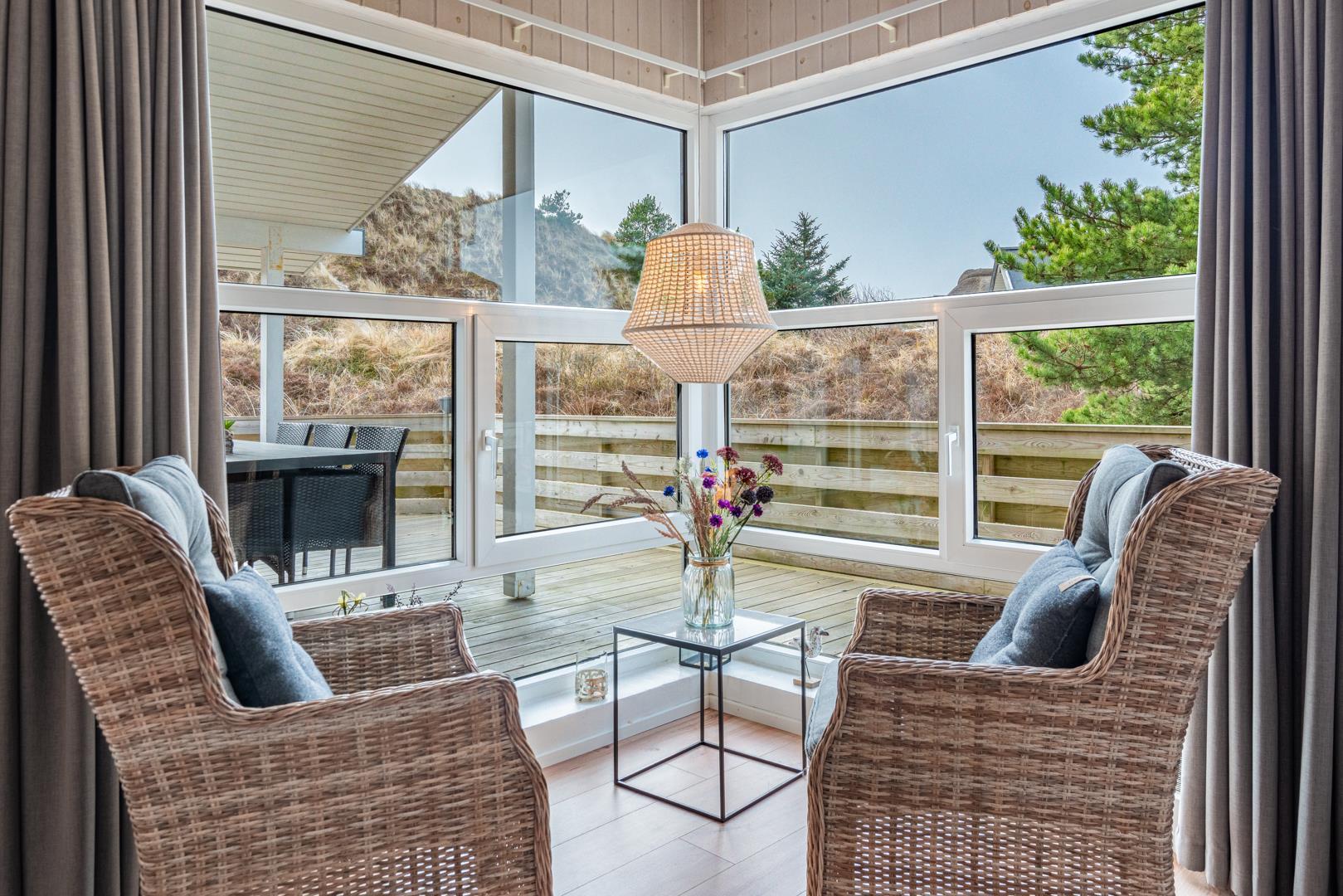 Her kan du ankomme, trække vejret dybt og bevidst lægge hverdagen bag dig. De store vinduer giver masser af lys og en smuk udsigt over klitlandskabet – typisk for Henne Strand og helt enestående. Uanset om det er sommer eller vinter, danner dette sommerhus den perfekte ramme om afslappende feriedage ved Vesterhavet.