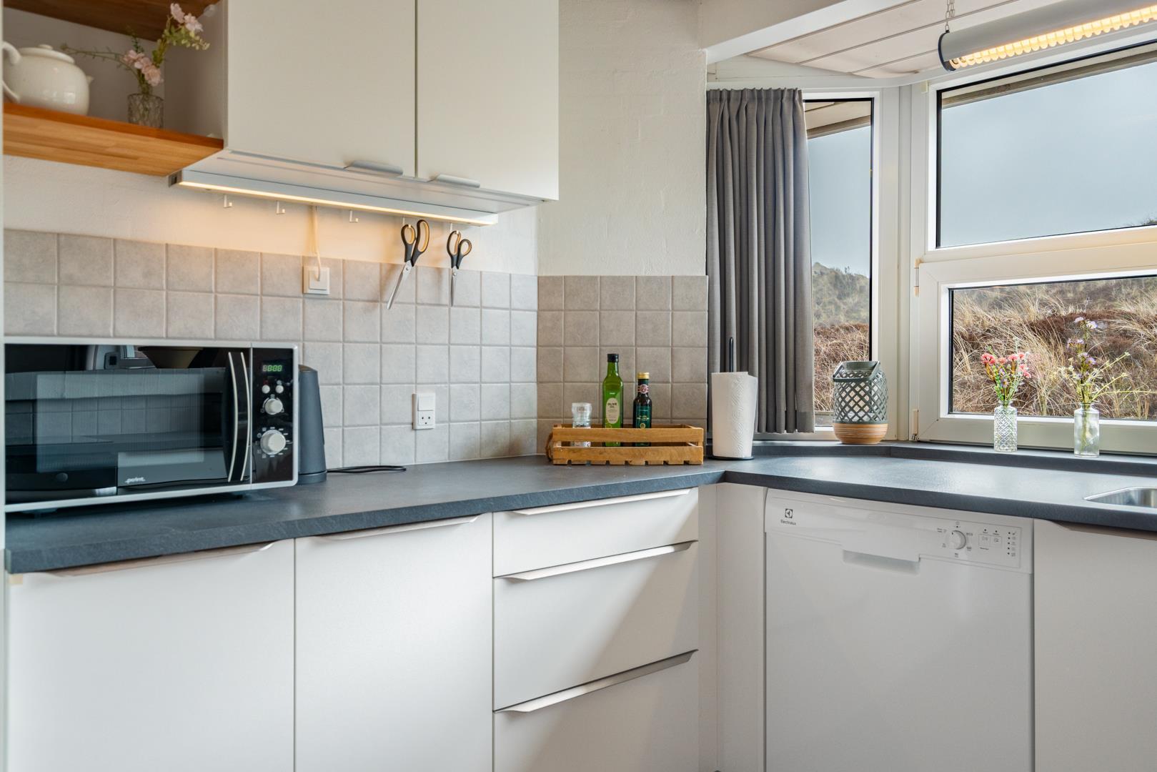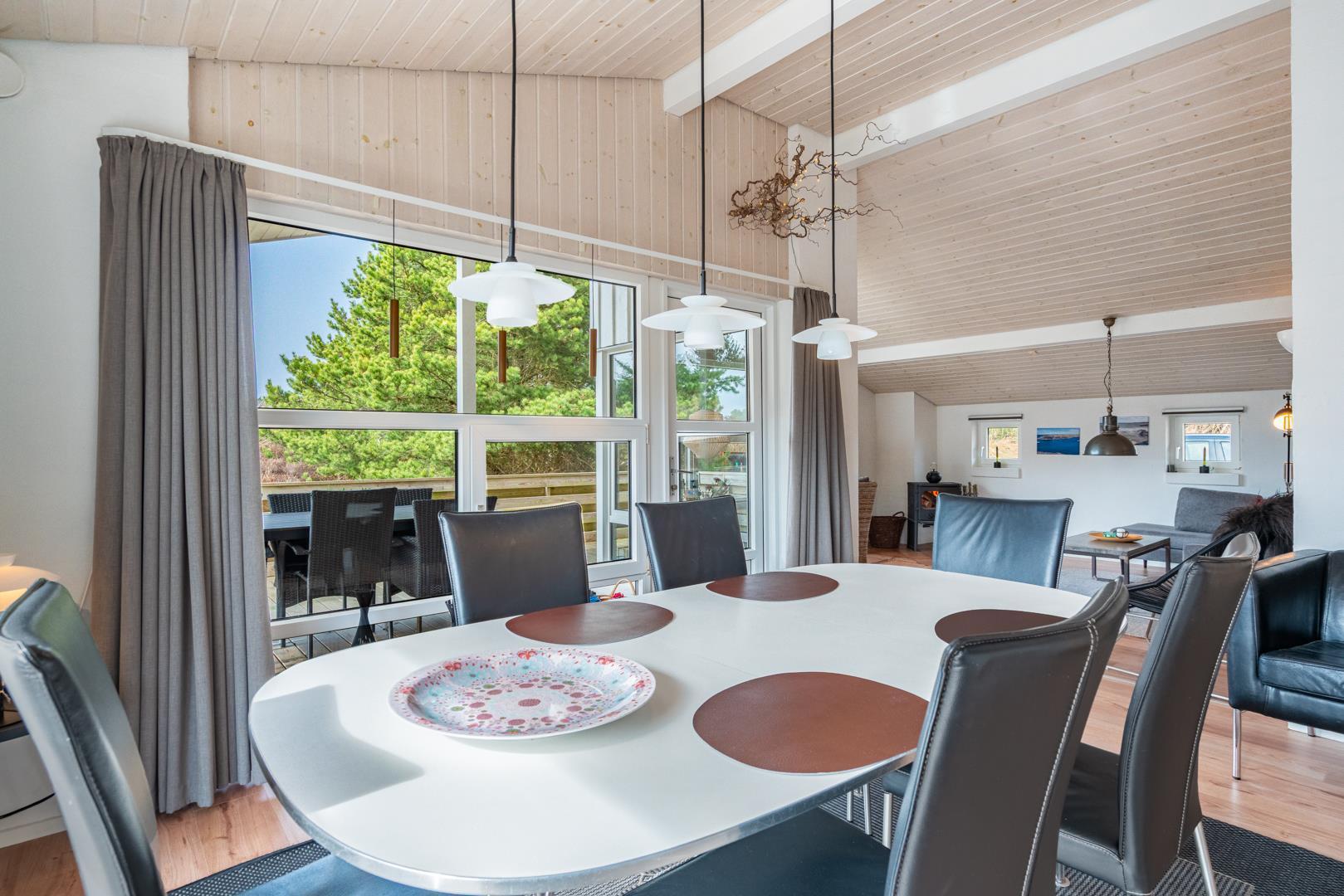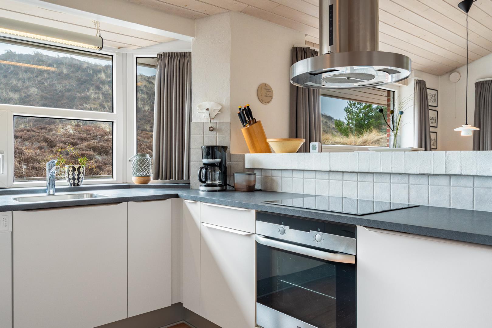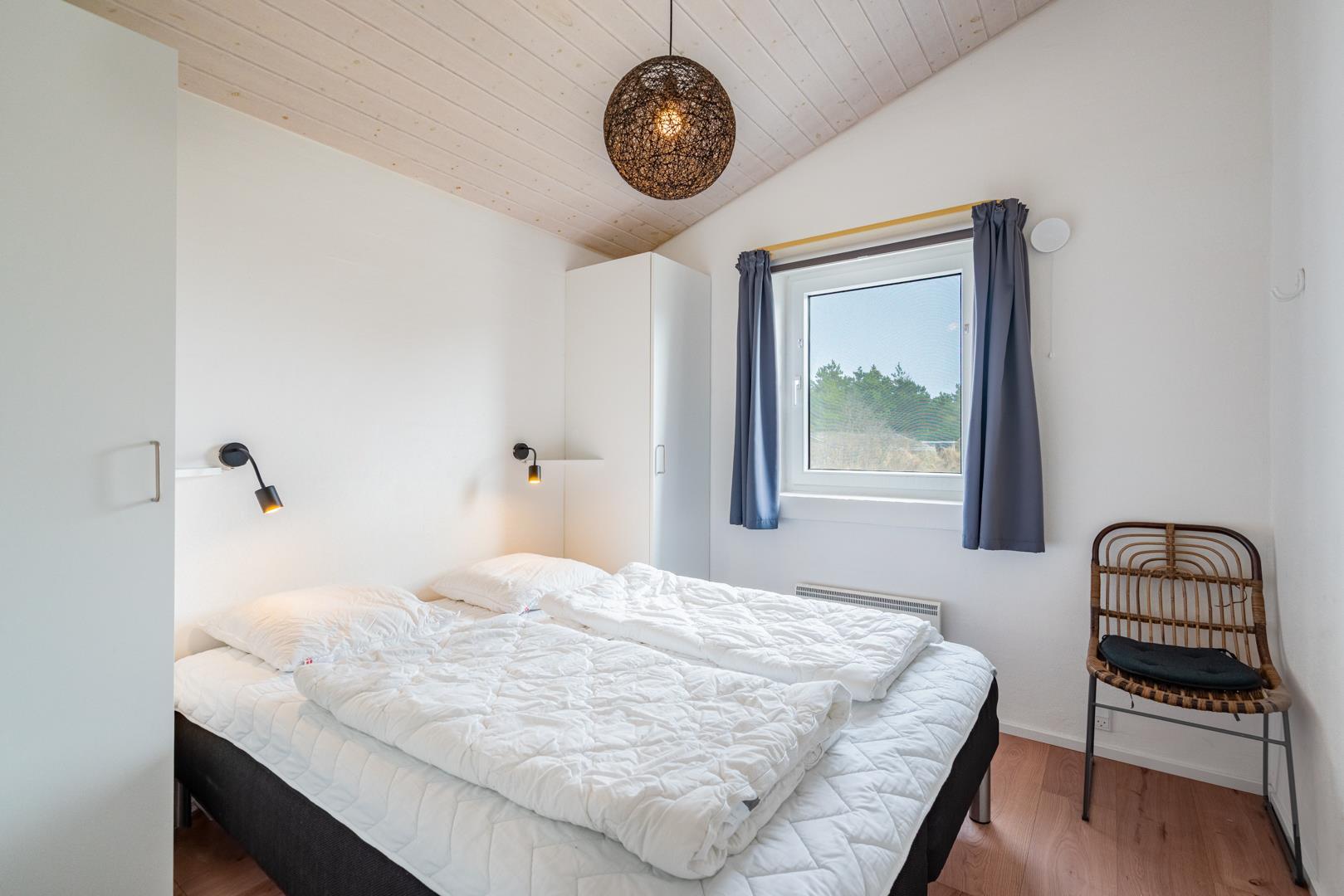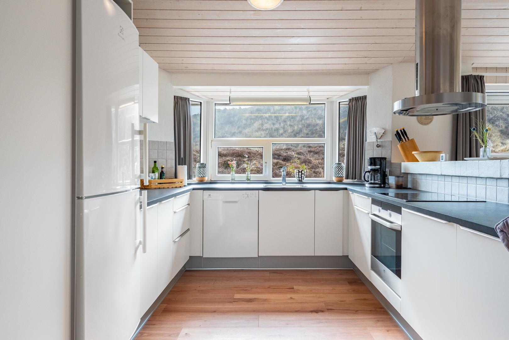 Her kan du ankomme, trække vejret dybt og bevidst lægge hverdagen bag dig. De store vinduer giver masser af lys og en smuk udsigt over klitlandskabet – typisk for Henne Strand og helt enestående. Uanset om det er sommer eller vinter, danner dette sommerhus den perfekte ramme om afslappende feriedage ved Vesterhavet.