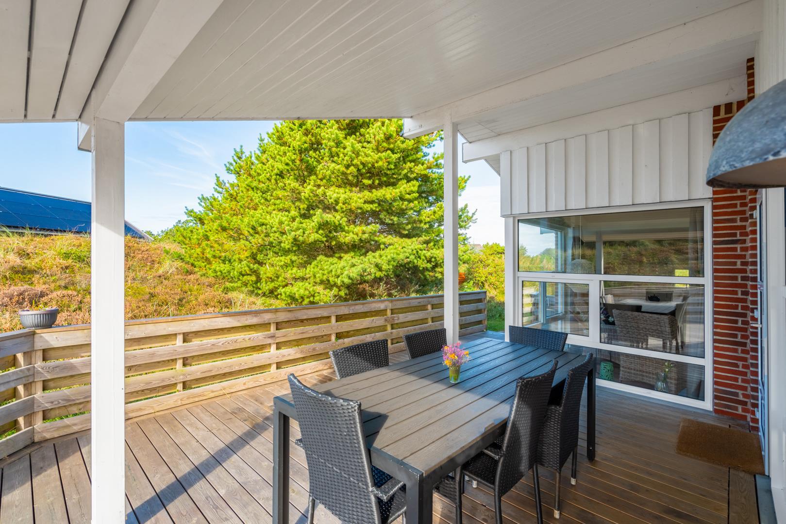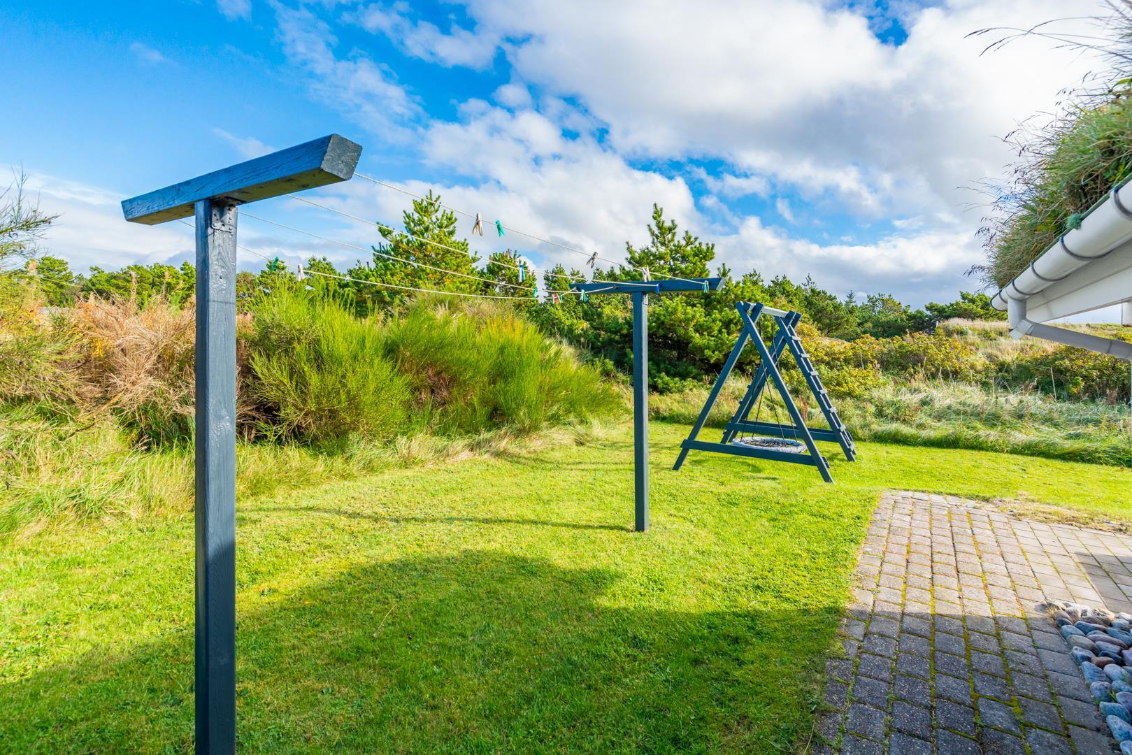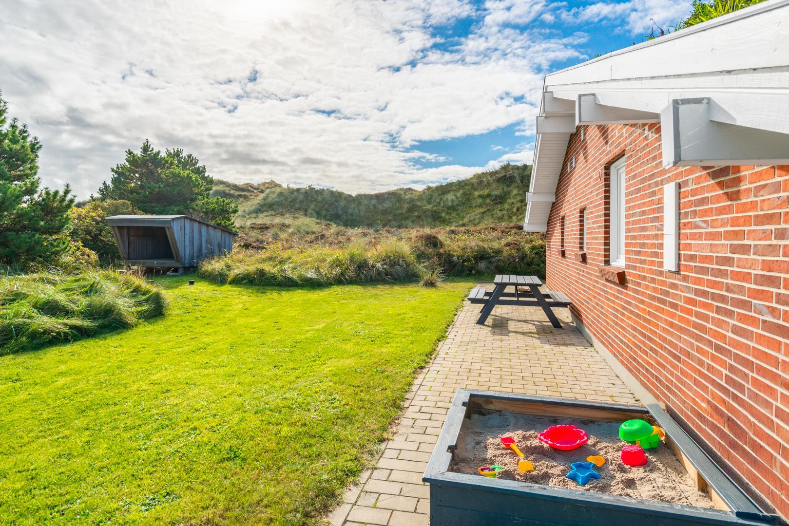 Udendørs fortsætter afslapningen. Den lukkede terrasse er ideel til familier med børn, mens den overdækkede terrasse også indbyder til ophold udendørs i skiftende vejr. For børnene er der gynge og sandkasse, så også de mindste får masser af feriesjov.
