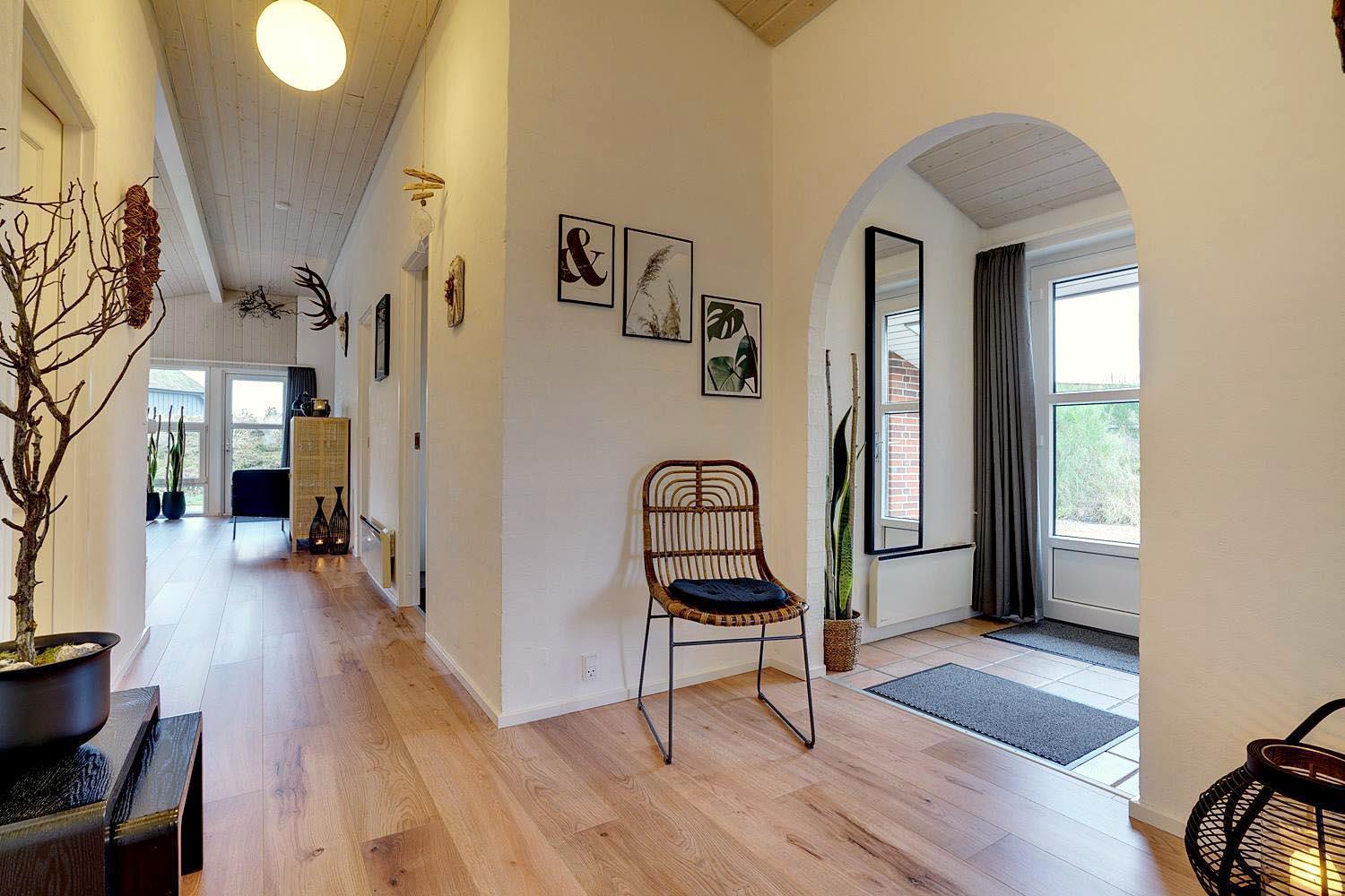 Porsevej 38 Henne Strand har veludstyret og lækkert køkken(2019) i åben forbindelse med spisekrogen, herfra er der direkte ud gang til den overdækkede terrasse. Stor entre med plads til overtøj og sko. 4 gode soverum. Der er også tænkt på de små gæster, så der er gynge og sandkasse på grunden, samt shelter. Et rigtig dejligt og meget velpasset sommerhus, hvor rammerne er tilstede for en dejlig ferie ved Henne Strand hele året. Lige uden for døren er der cykelsti til Filsø og Blåbjerg Plantage.
