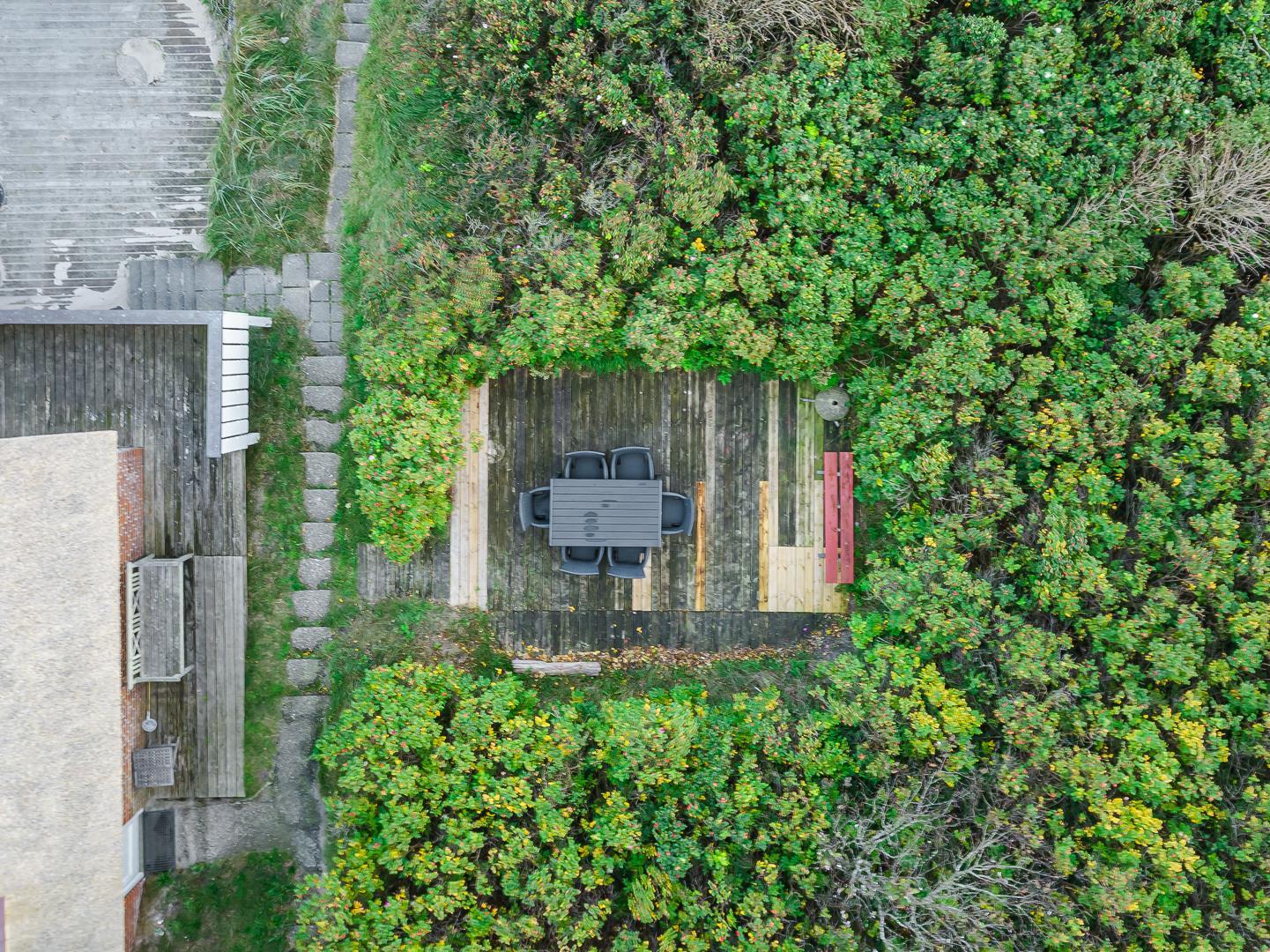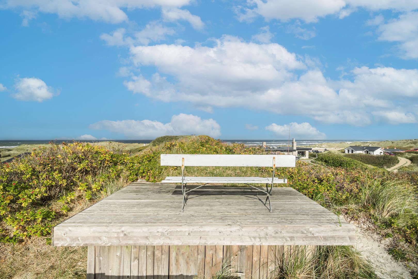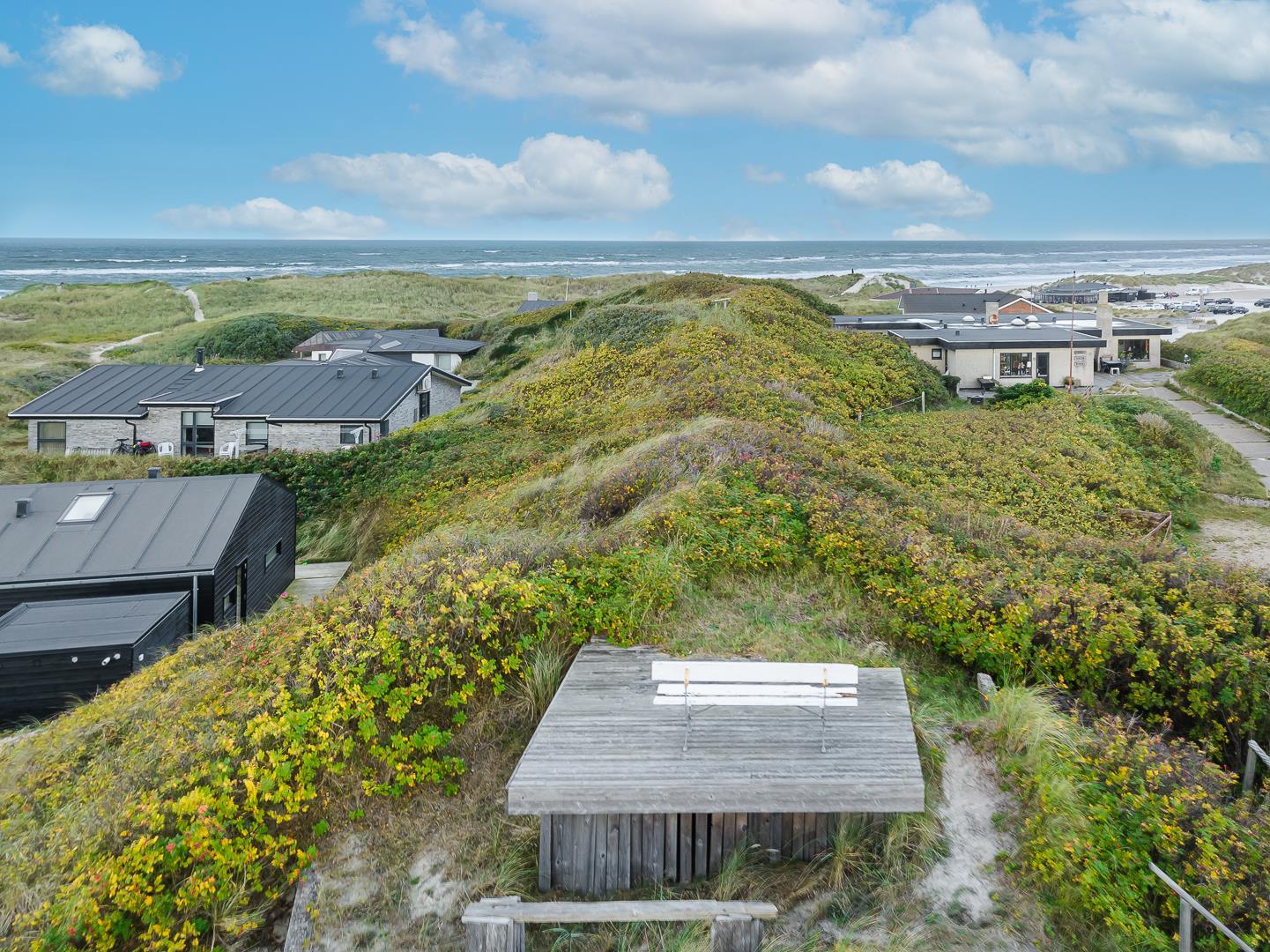 Fra stuen er der udgang til dejlige terrasser i flere niveauer. Der er b.la. terrasse med panoramaudsigt over Vesterhavets bølger.