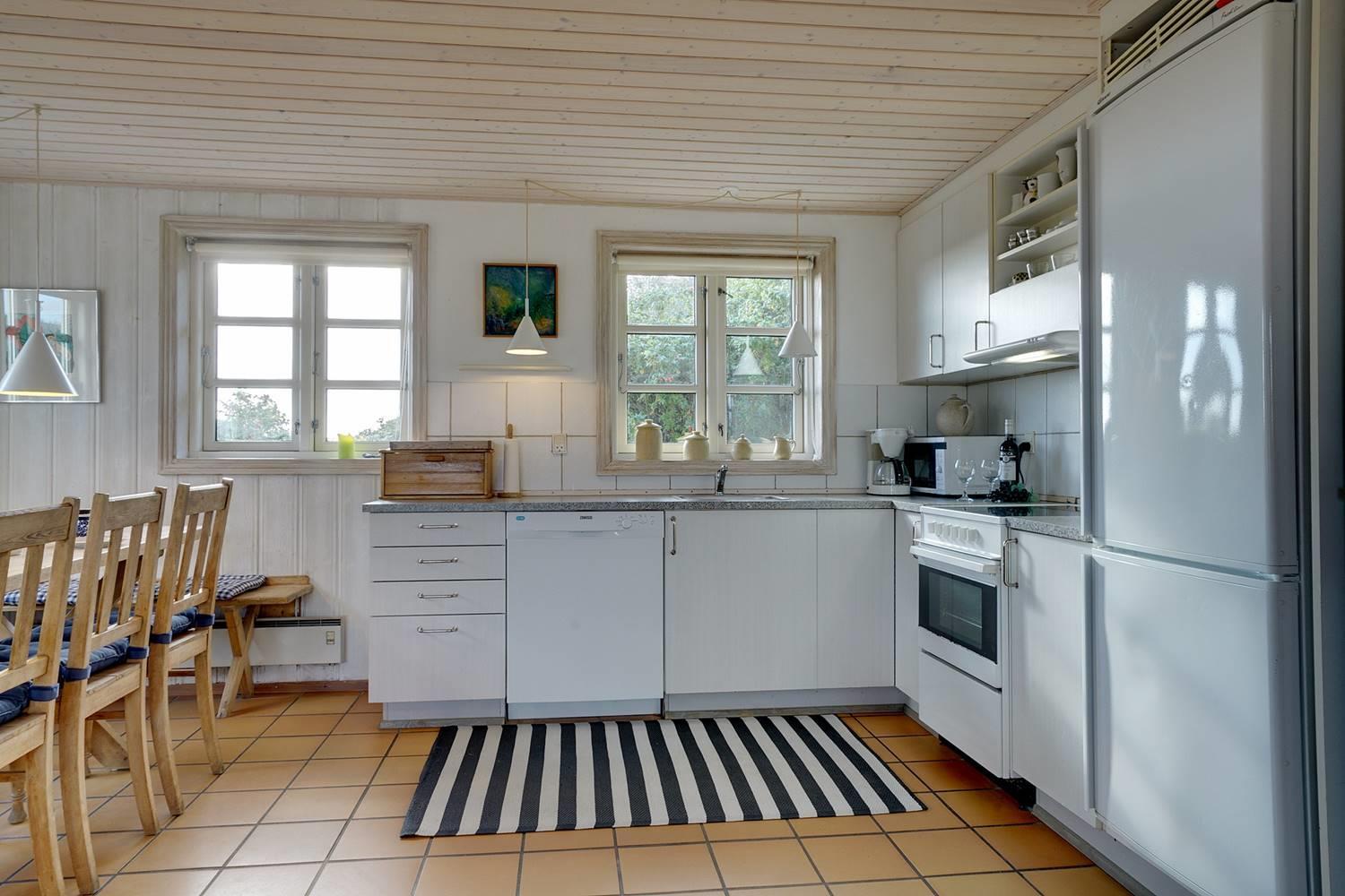 Her er gode muligheder for at nyde en glas vin på en dejlig sommer aften Fra køkken/alrum er der udgang til balkon. Fra både køkken/alrummet og stuen kan den skønne havudsigt nydes.