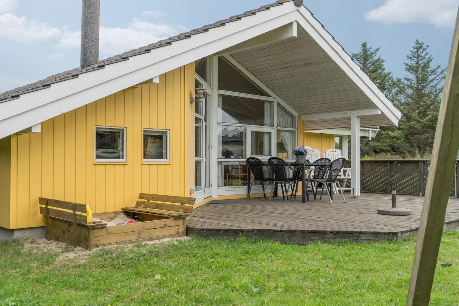 Velholdt feriehus nær Henne Strand med sauna, overdækket terrasse og børnevenlige faciliteter.