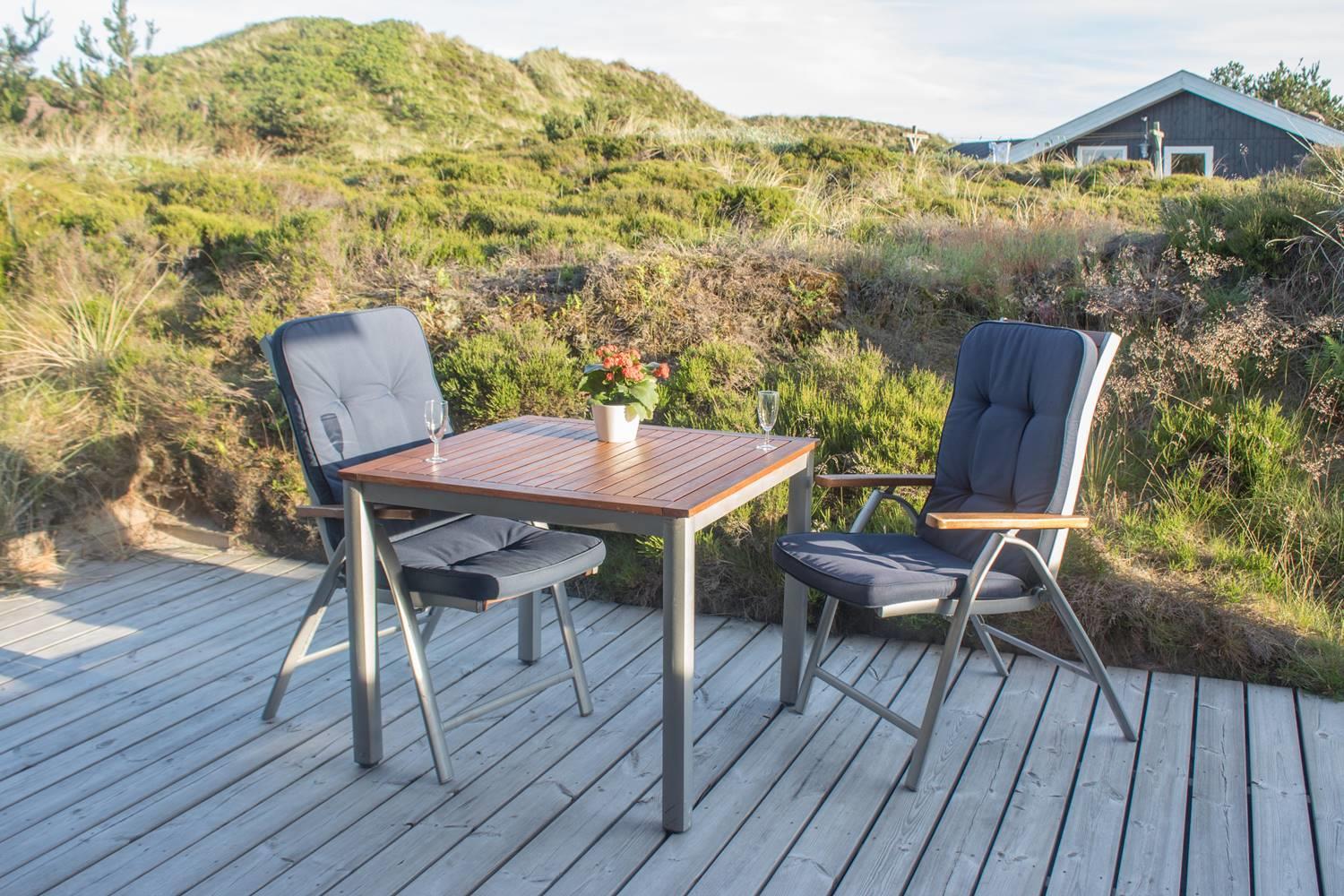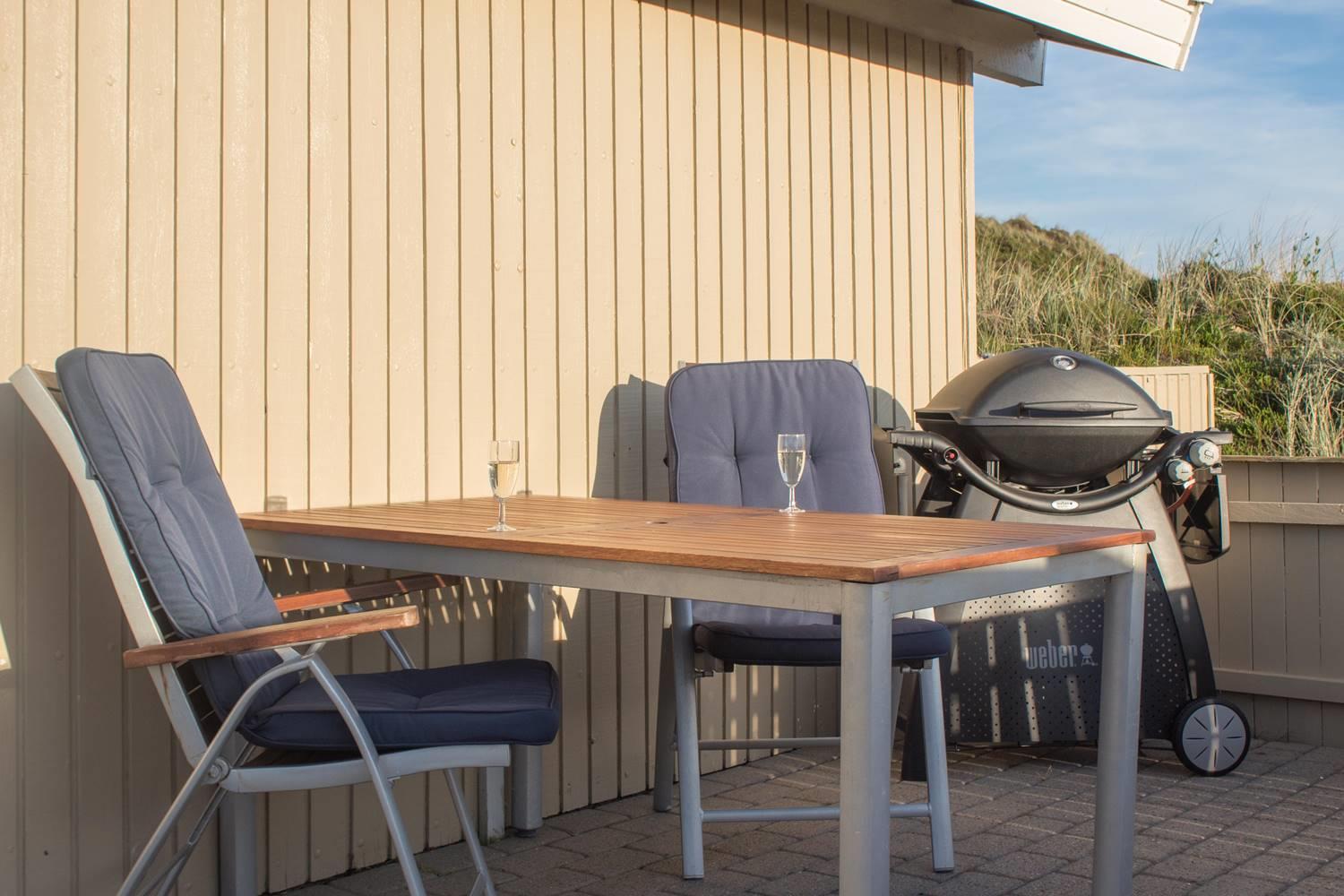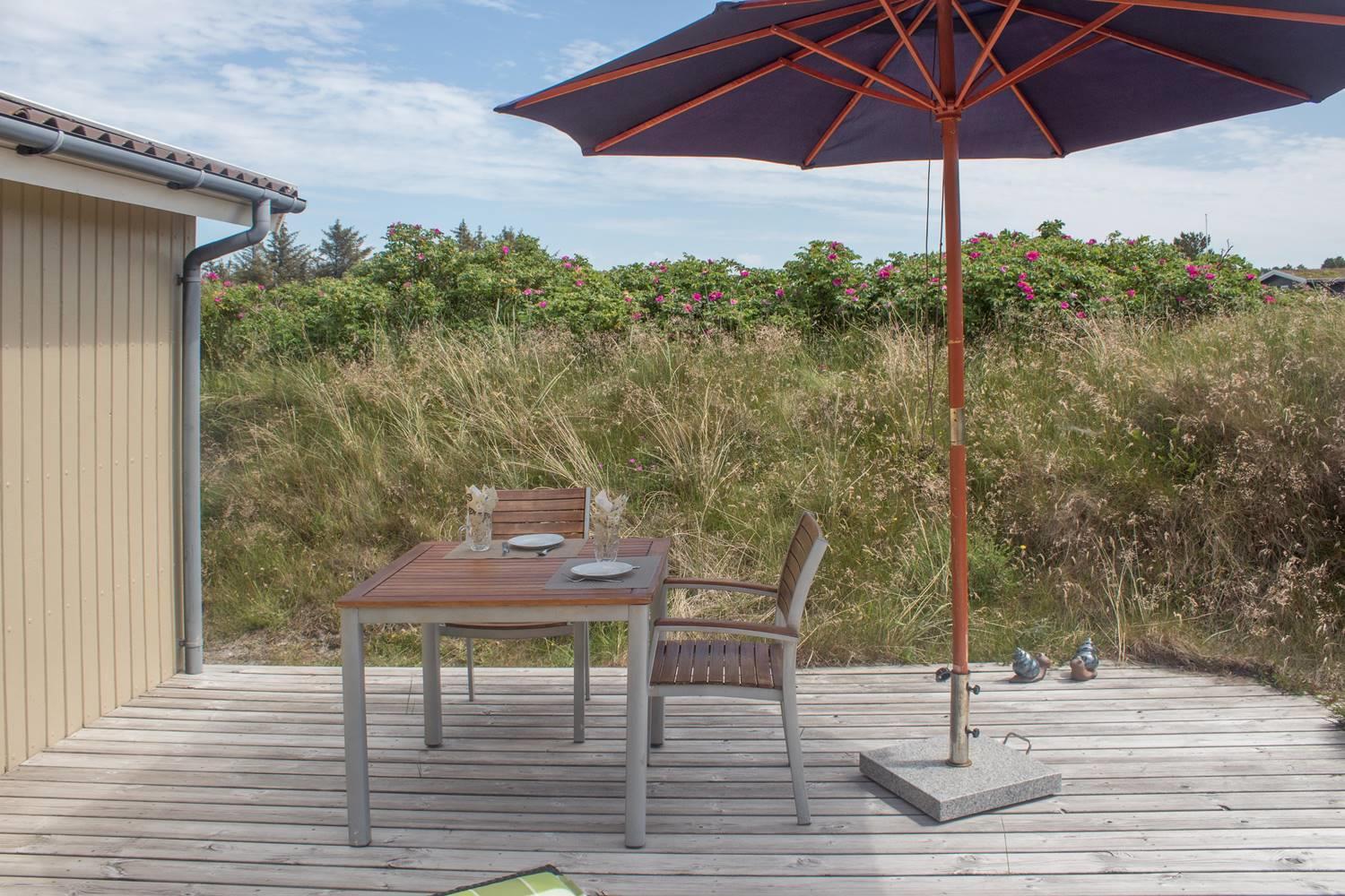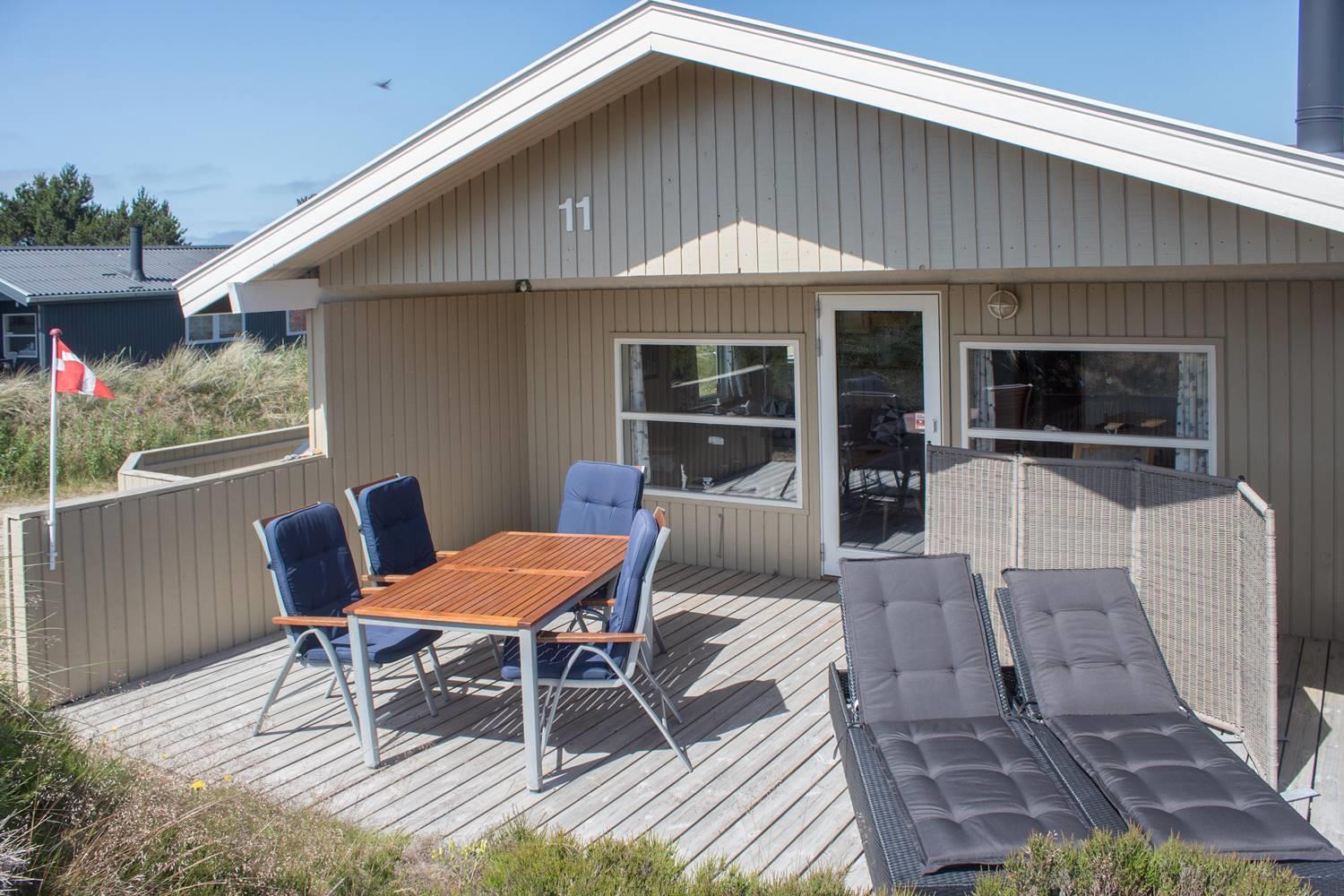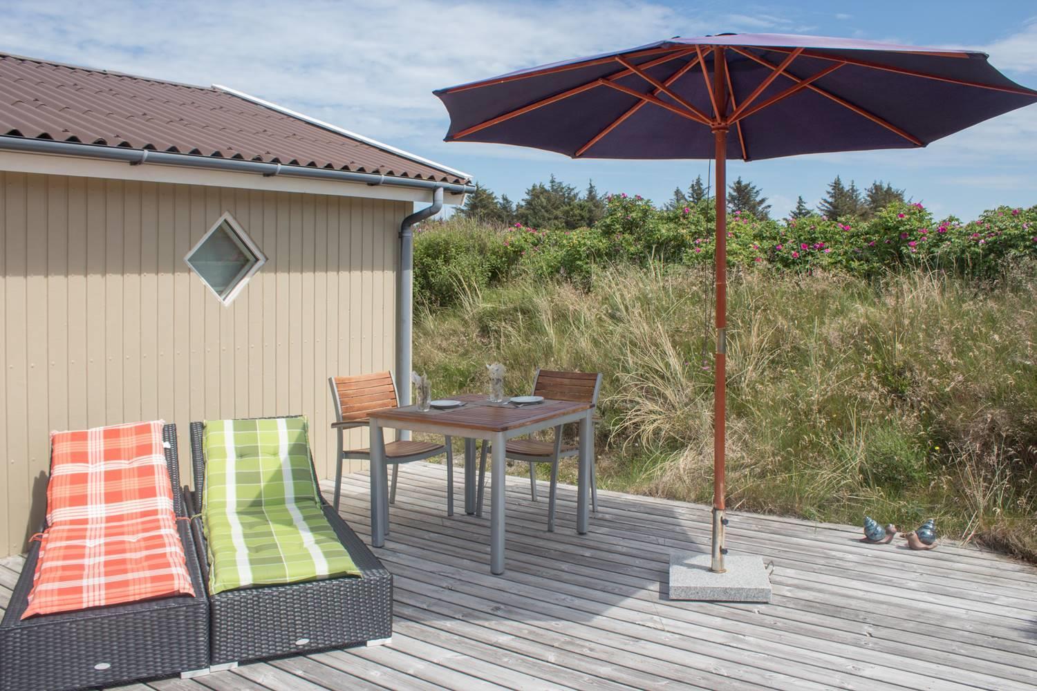 Hyggeligt feriehus i Henne Strand med sauna, spabad og store terrasser tæt på klitområder.